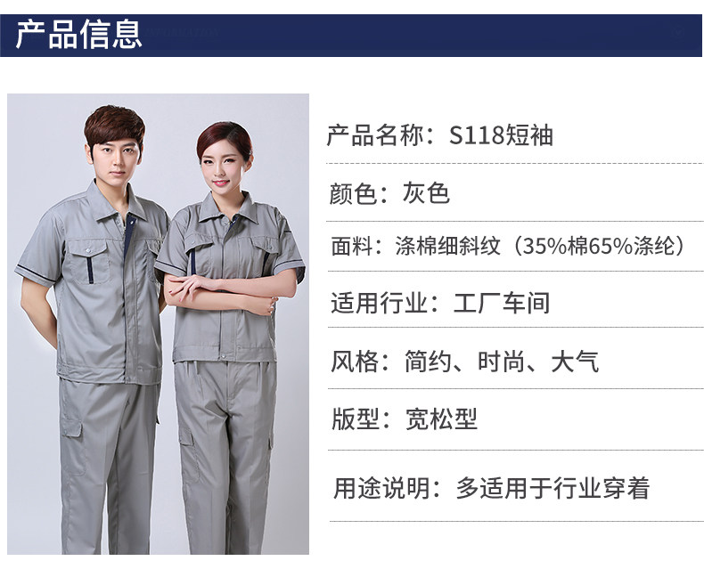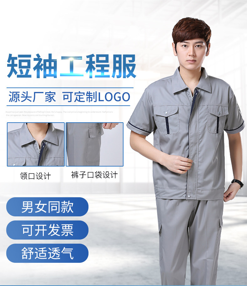 工作服夏季套装短袖男工程服劳保服工服定制男女车间工地汽修上衣
