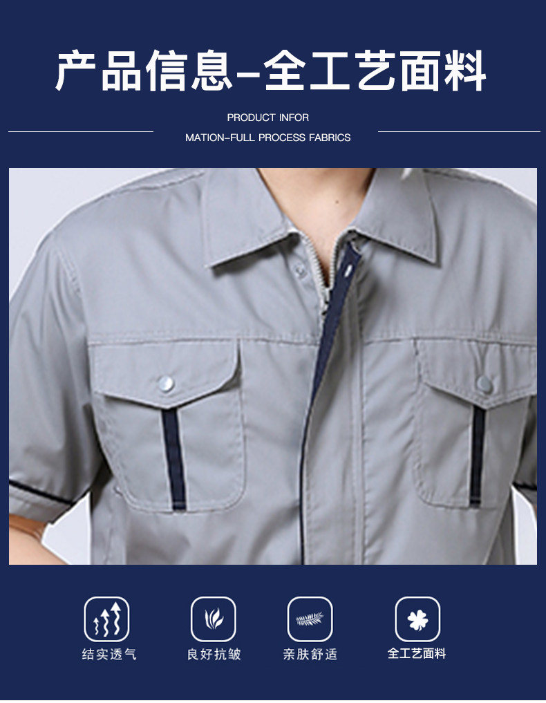 工作服套装男夏季工装上衣透气薄款短袖工程服工厂车间劳保服定制