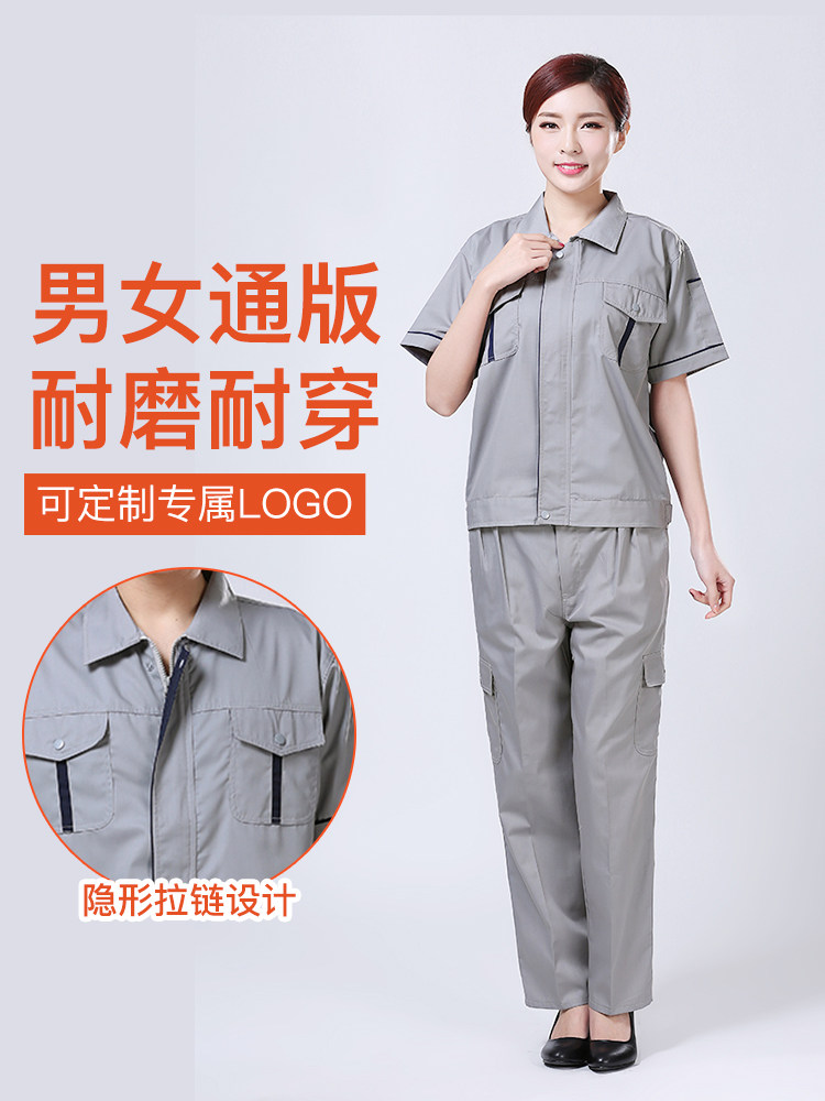 夏季工装套装男女短袖透气工作服车间修理厂汽修机械服耐磨劳保服