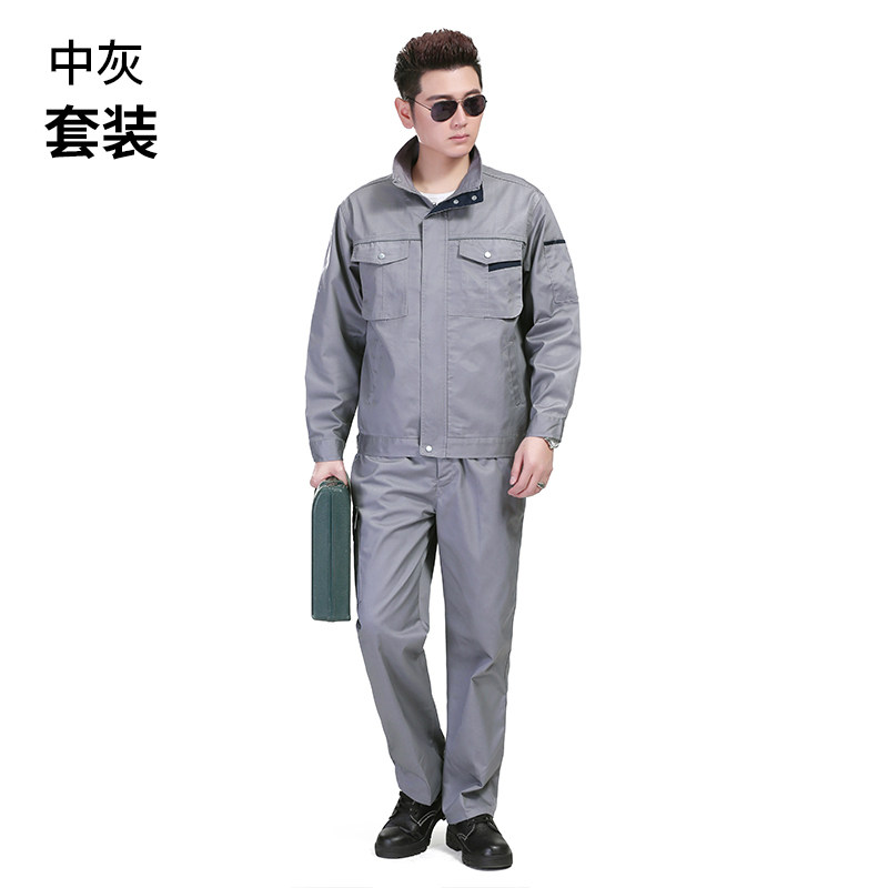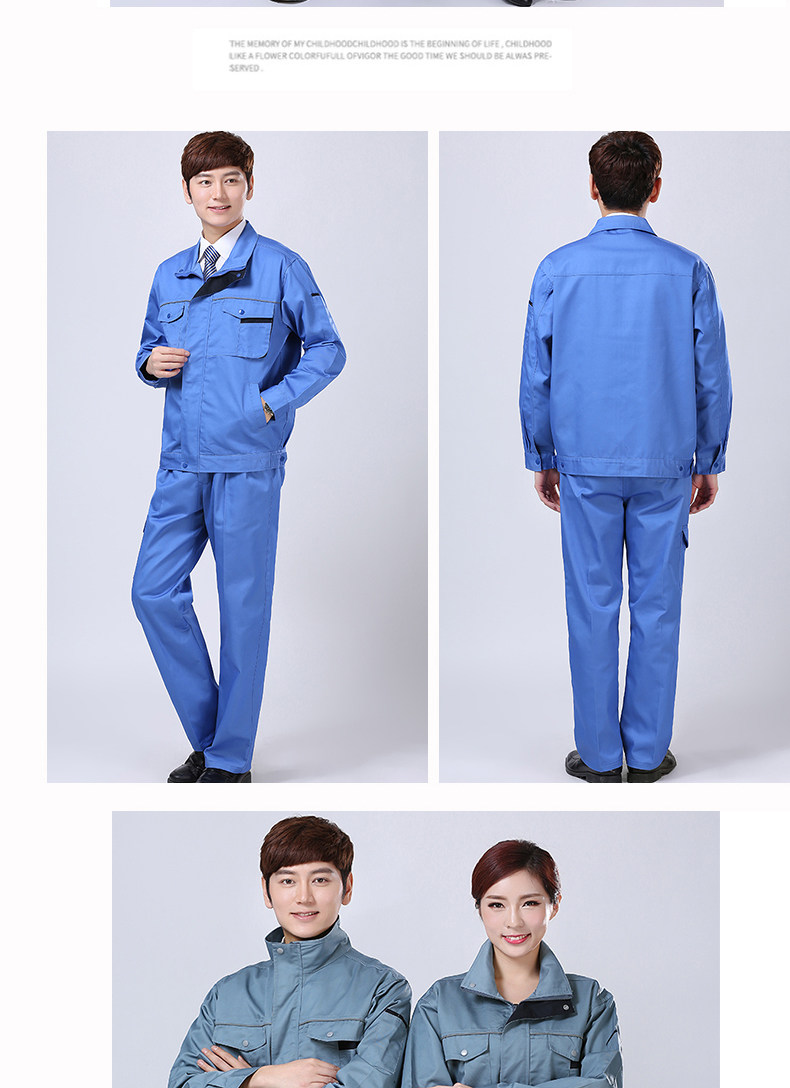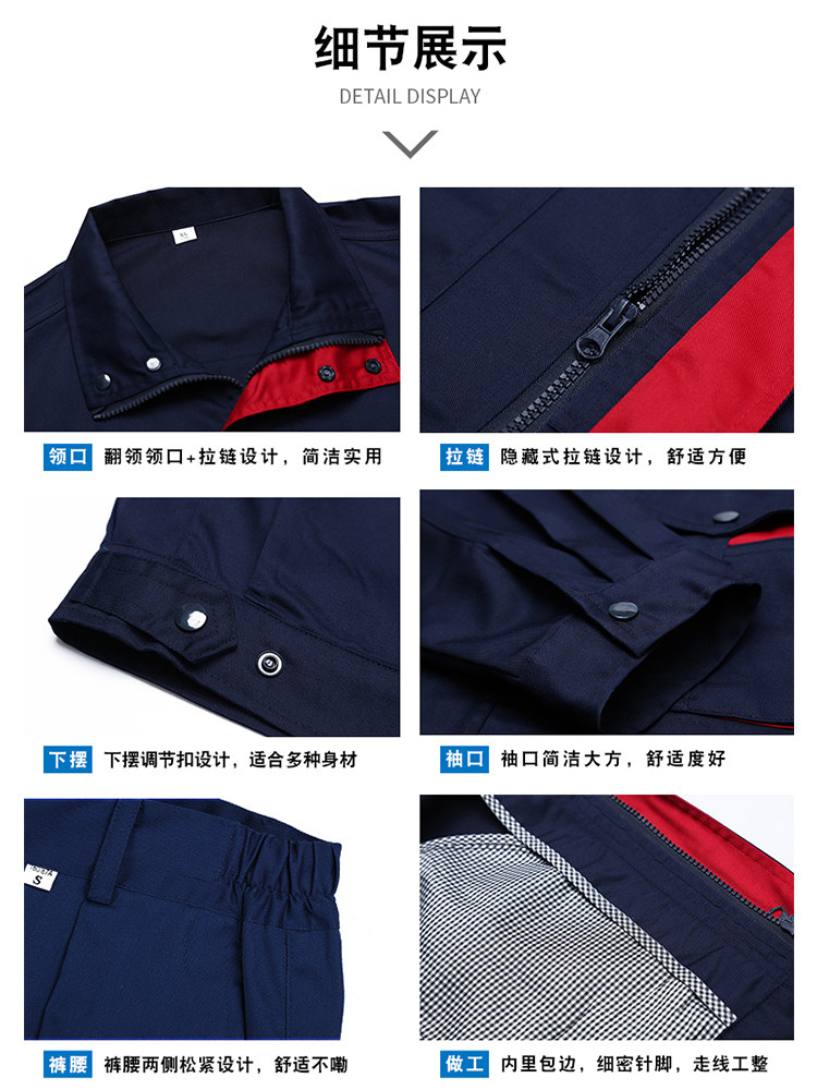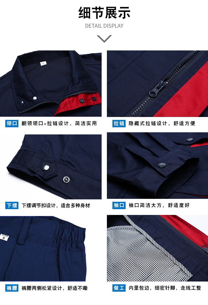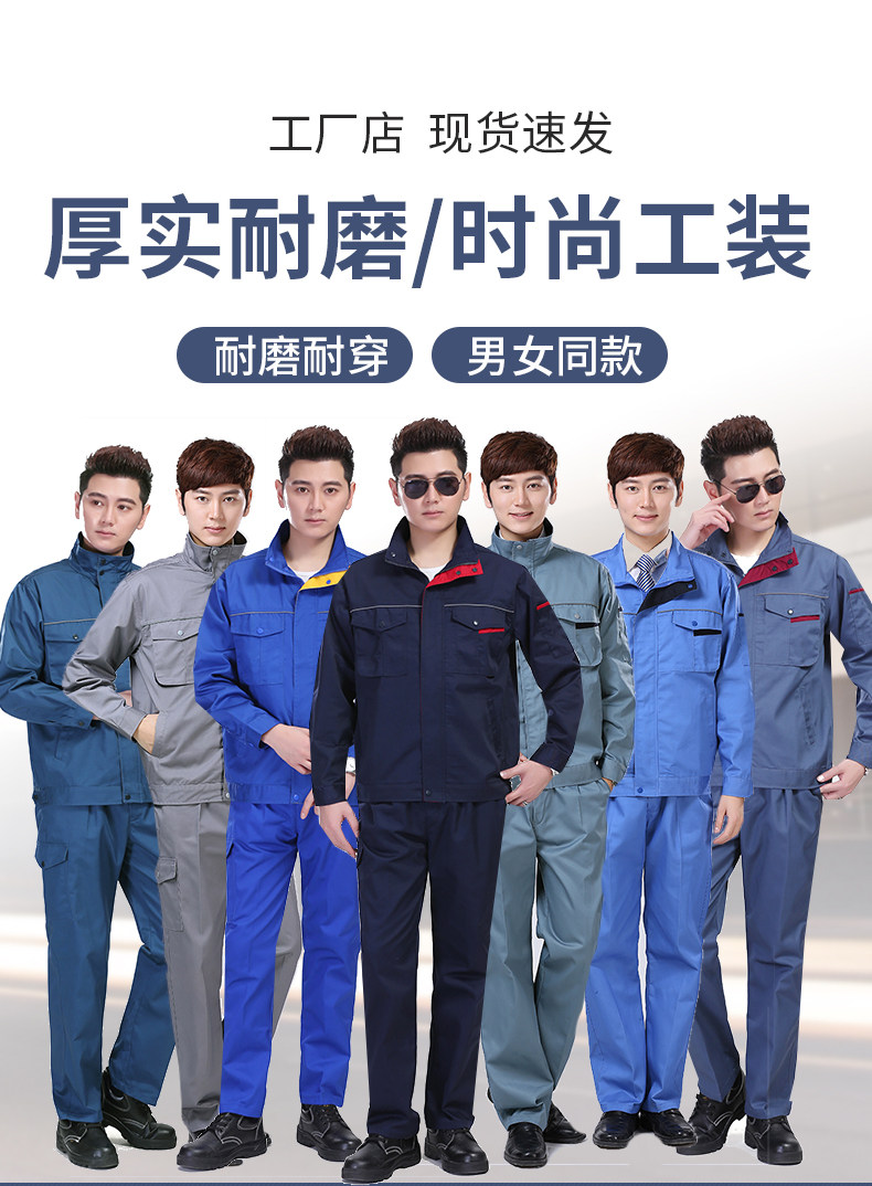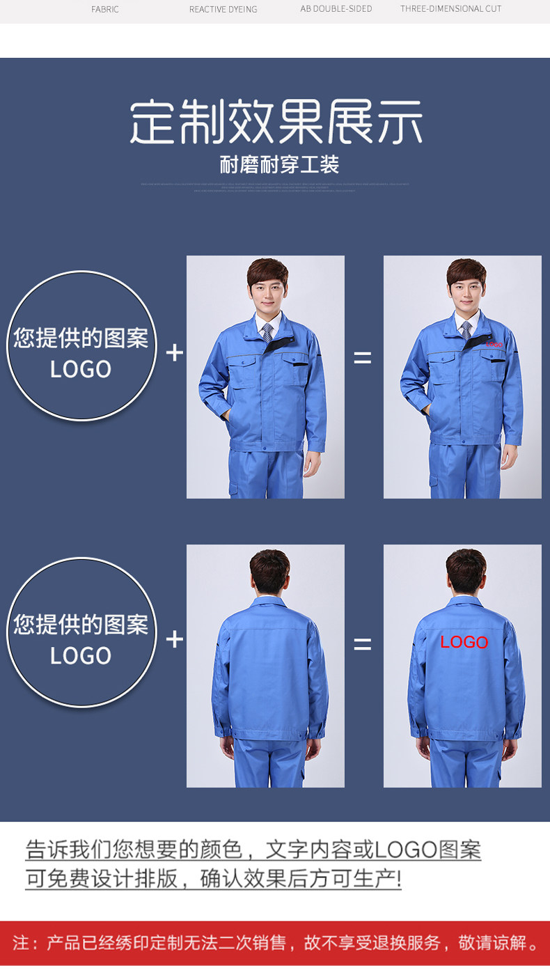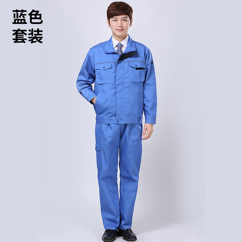 春秋季工作服男装工装套装定制长袖耐磨劳保服工厂蓝色工程服上衣