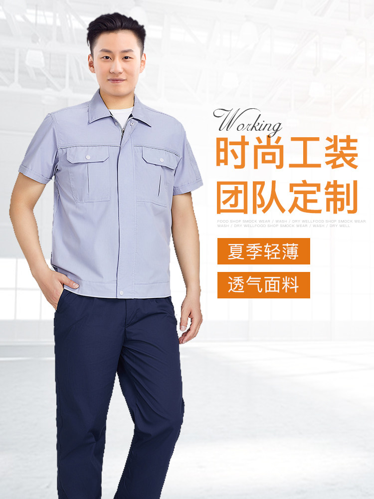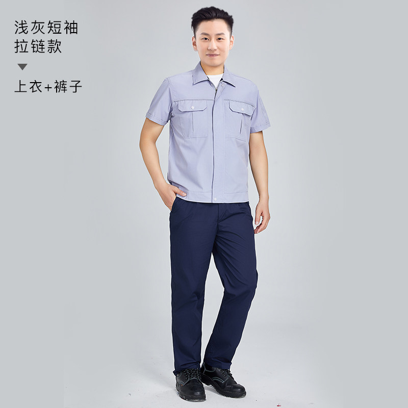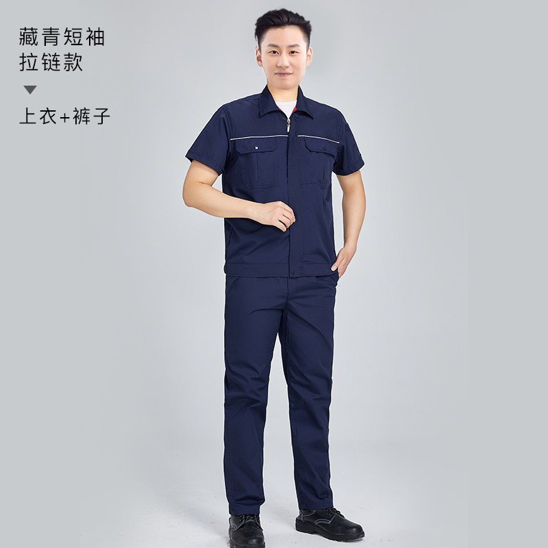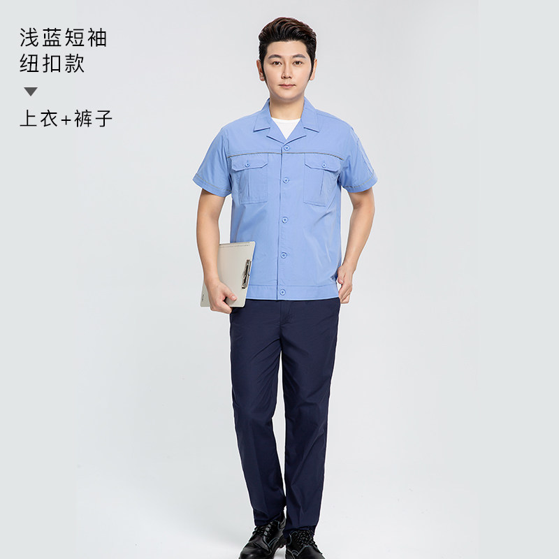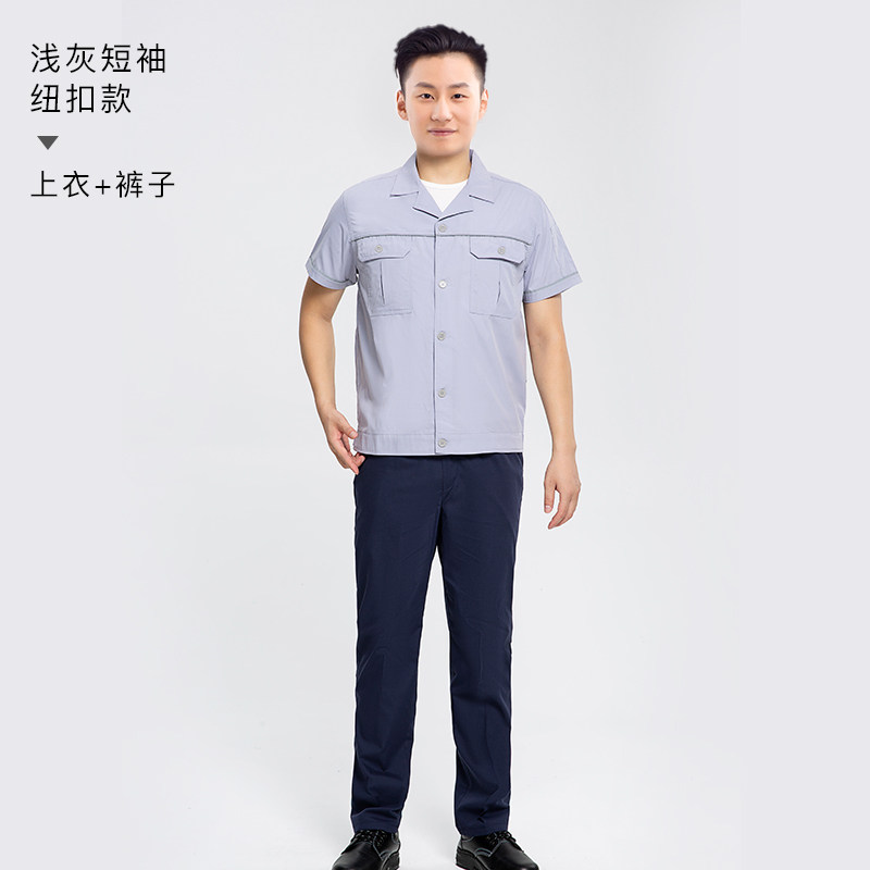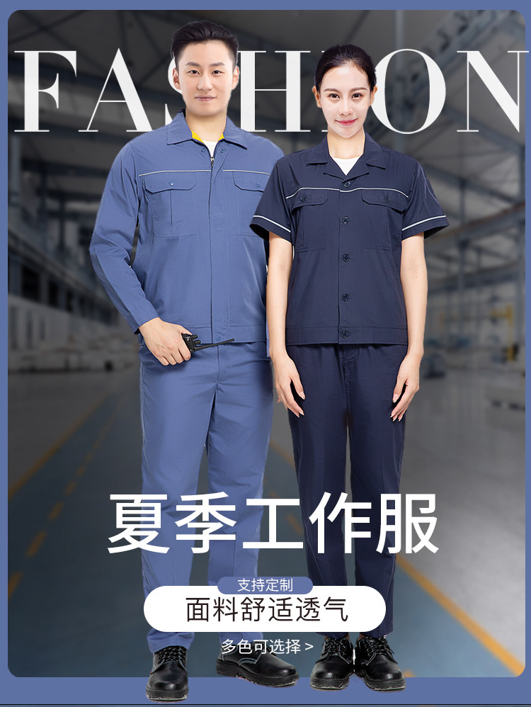 工作服夏季短袖套装男纯棉薄款长袖工厂车间工服定制上衣劳保服