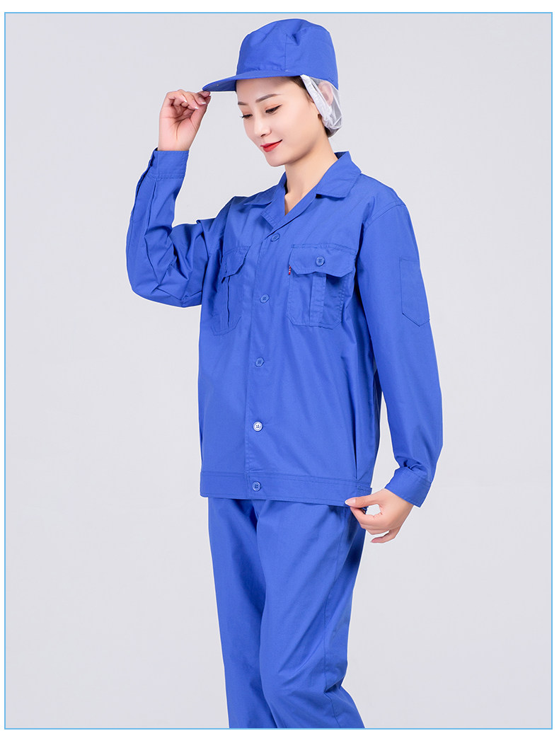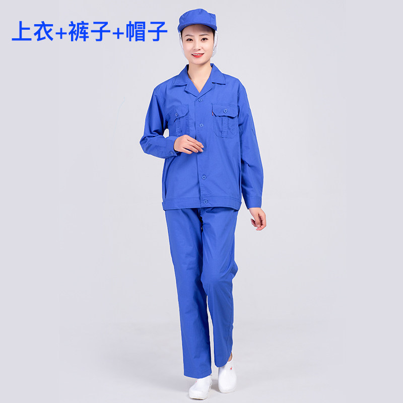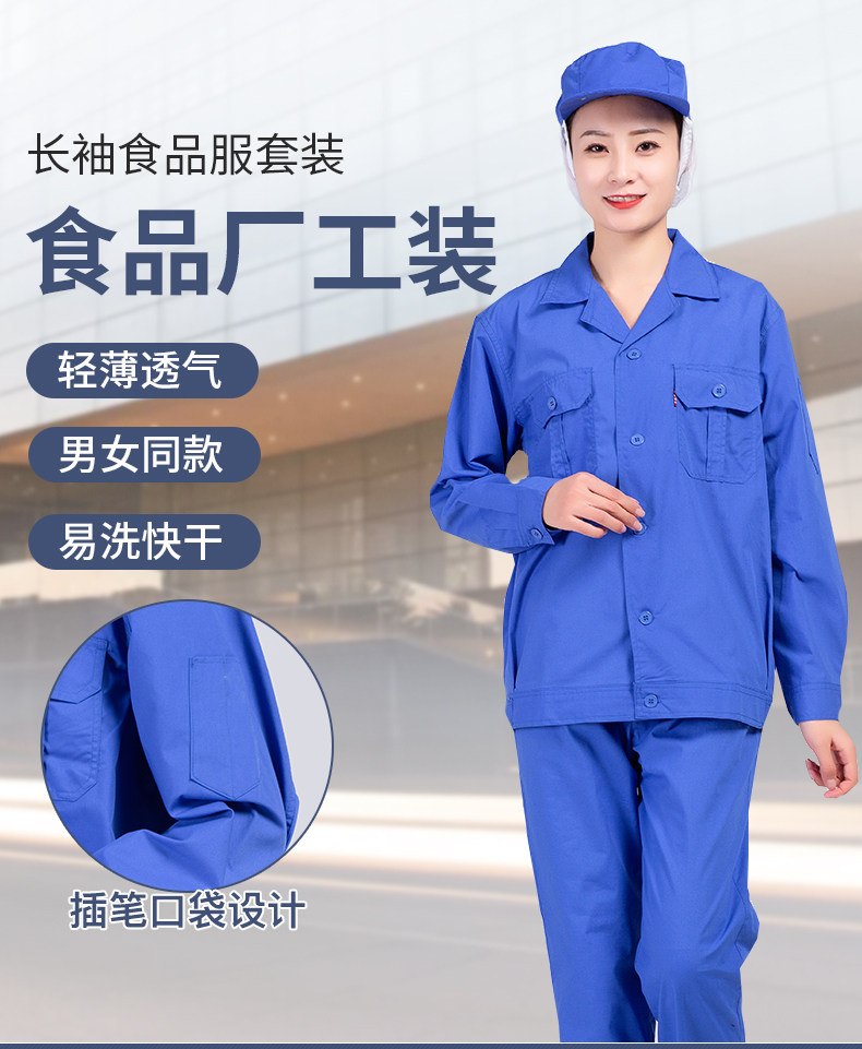 食品厂工作服车间专用工装套装春秋定制长袖耐磨蓝色餐饮工作服