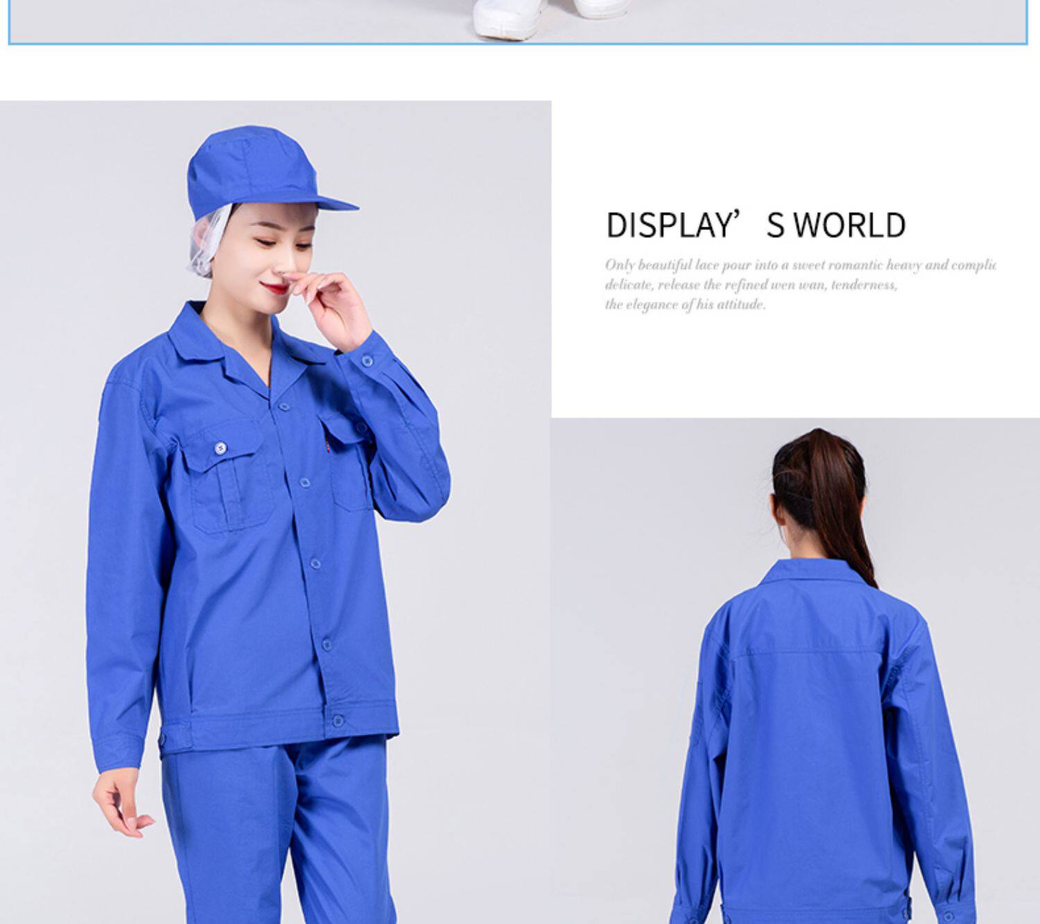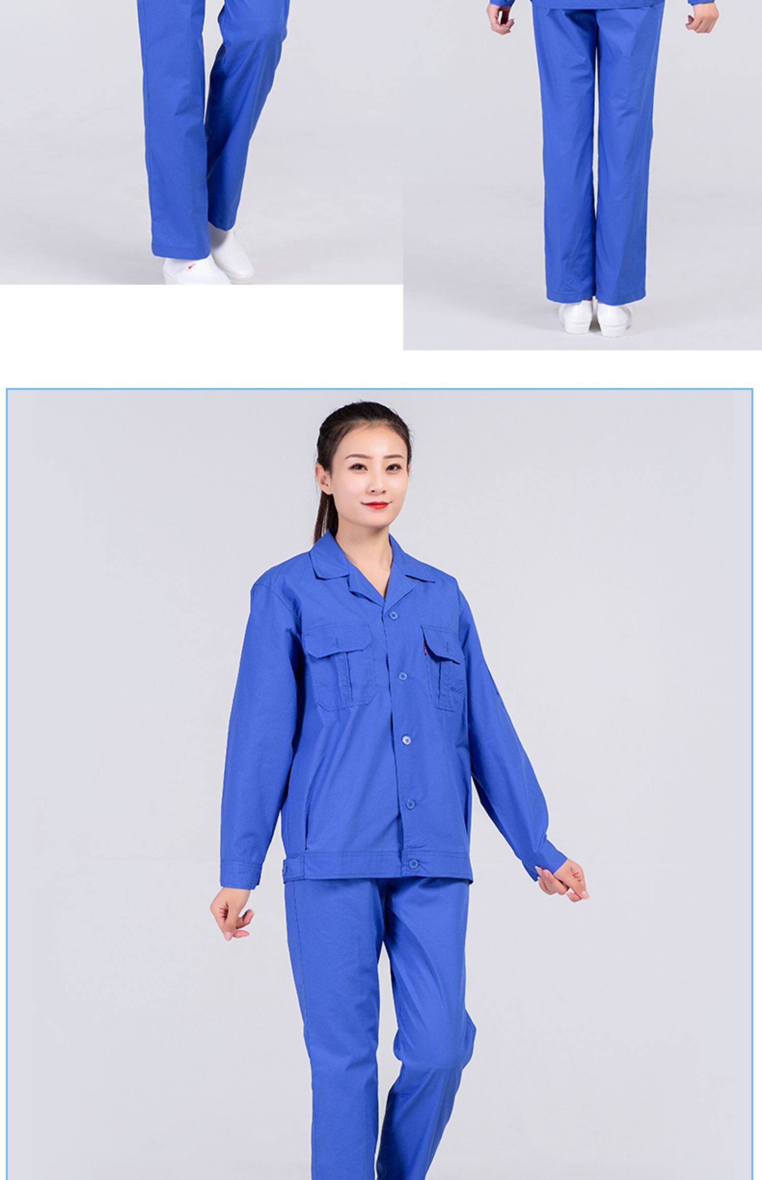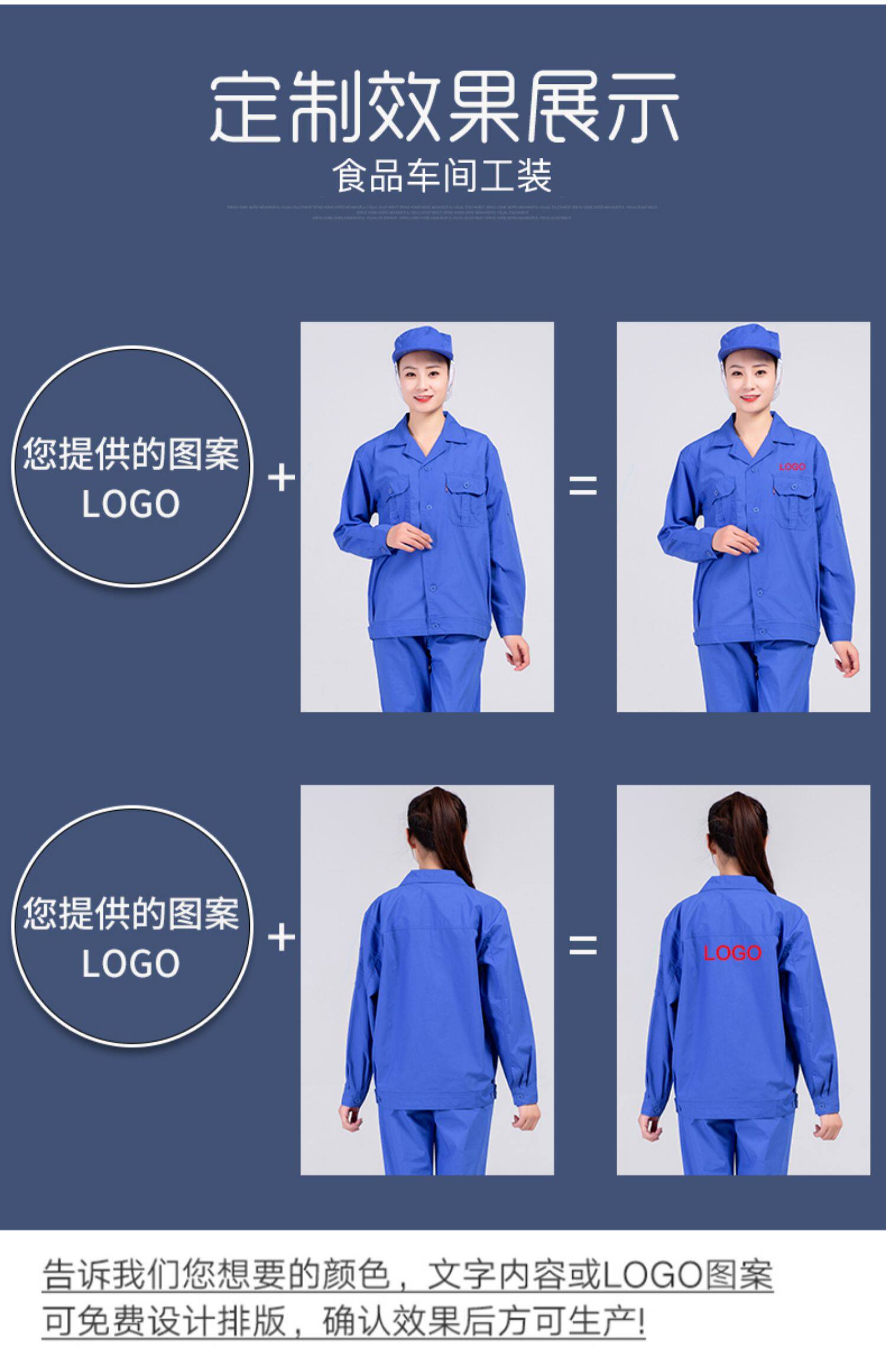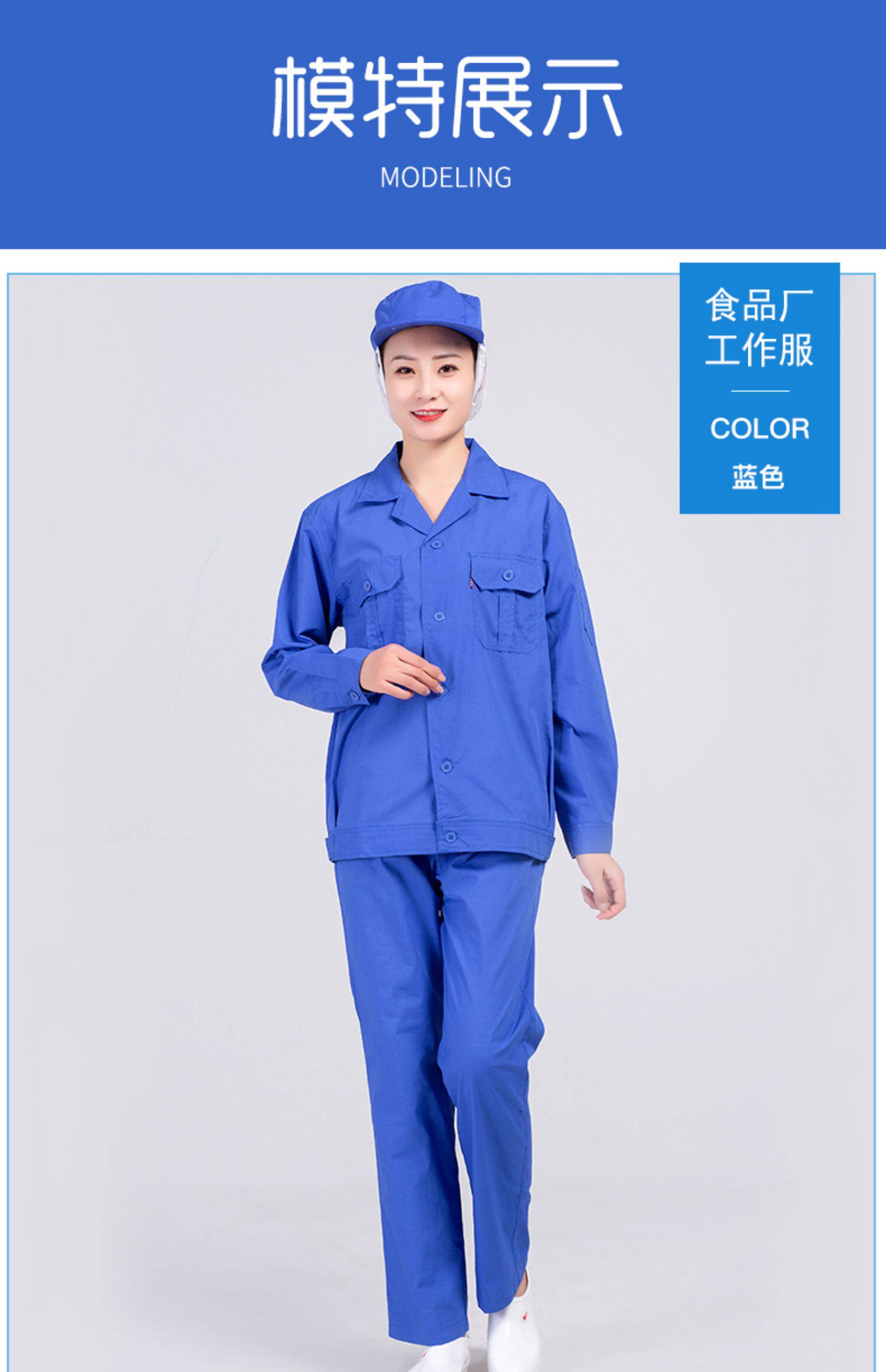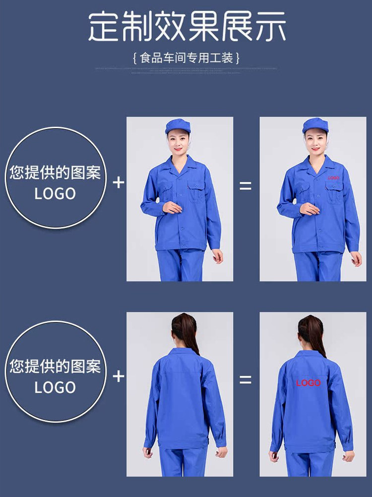 春秋季食品工作服定制套装劳保服装白色长袖工装耐磨蓝色工厂工衣