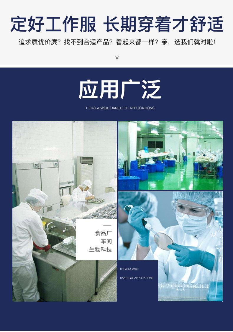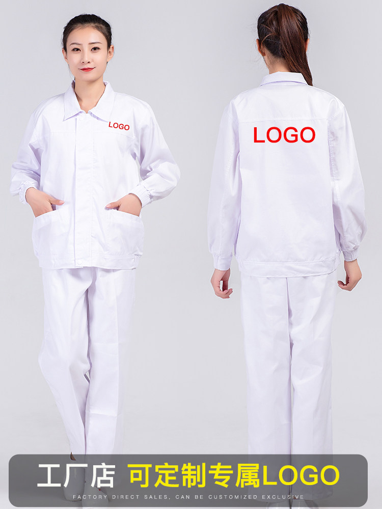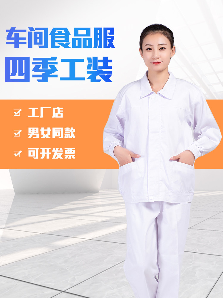 春秋季食品工作服定制套装劳保服装白色长袖工装耐磨蓝色工厂工衣