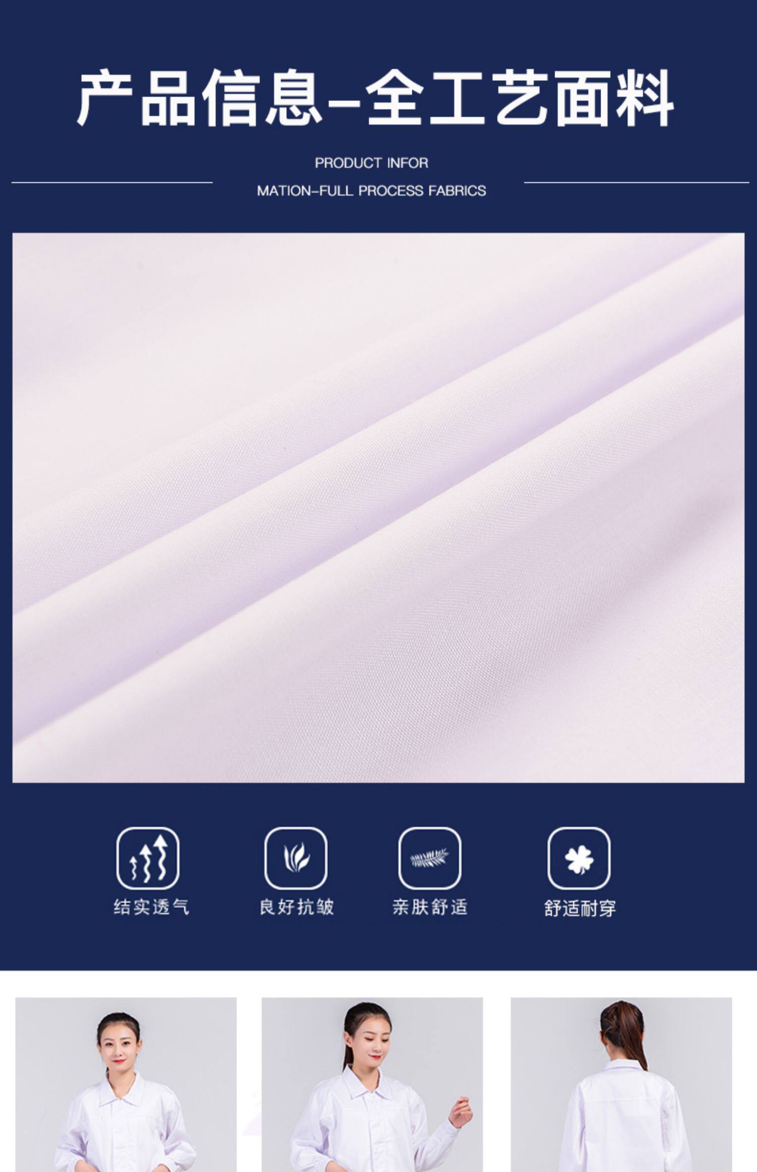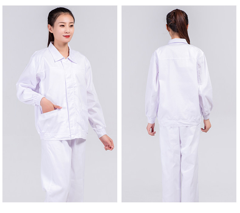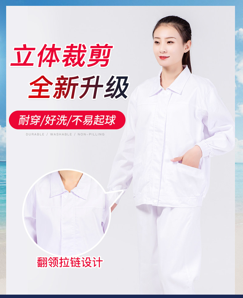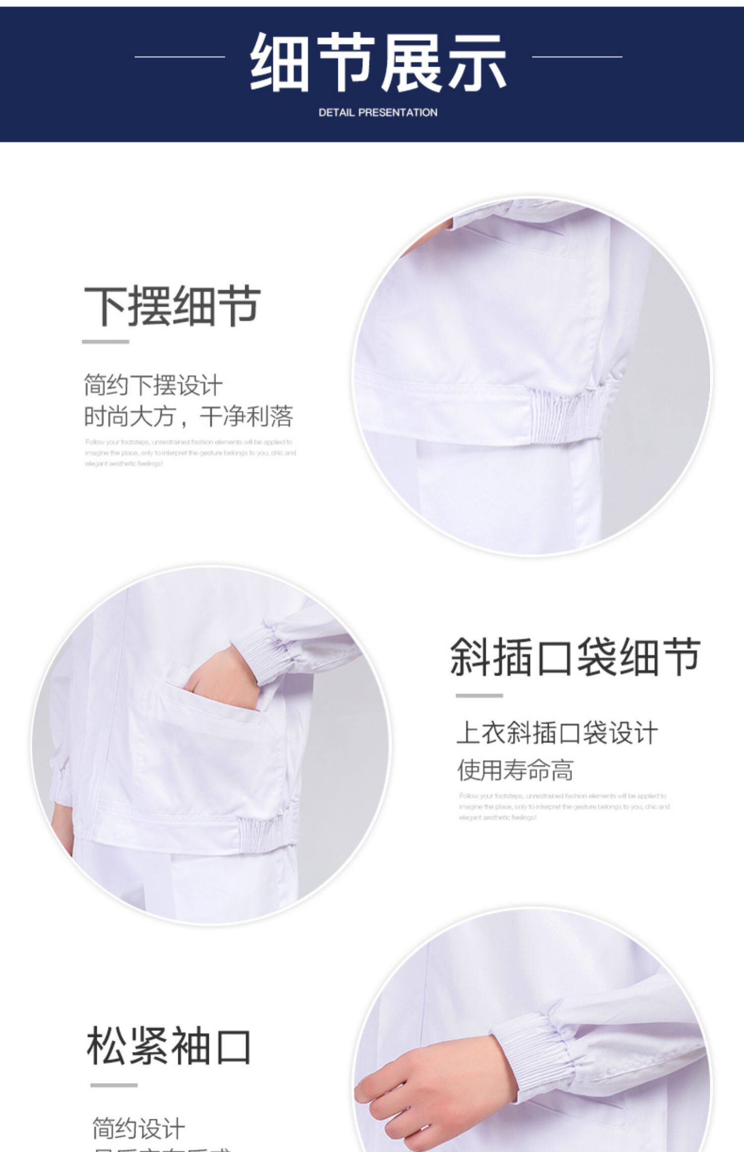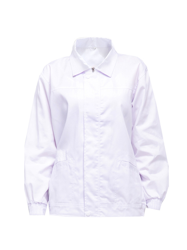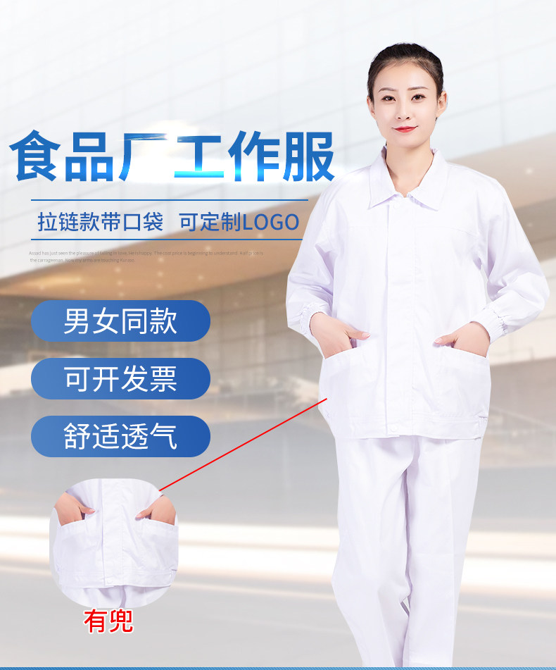 食品厂工作服白色翻领黏贴款春秋男女厂服生产车间专用工装可定制