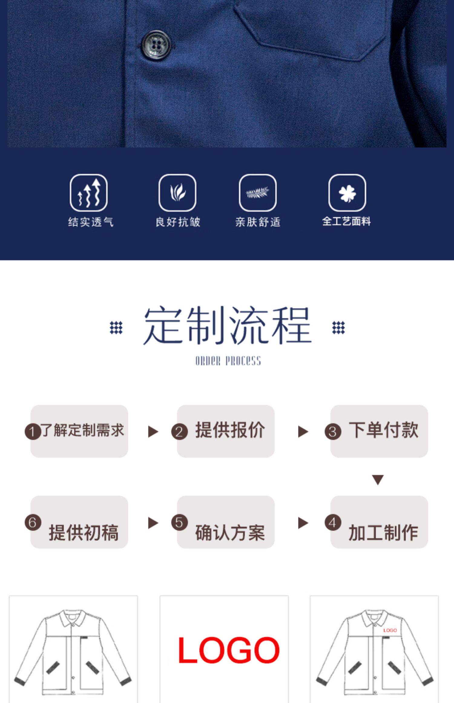 夏季长袖工作服套装男薄款舒适透气耐磨汽修车间工地定制工装上衣
