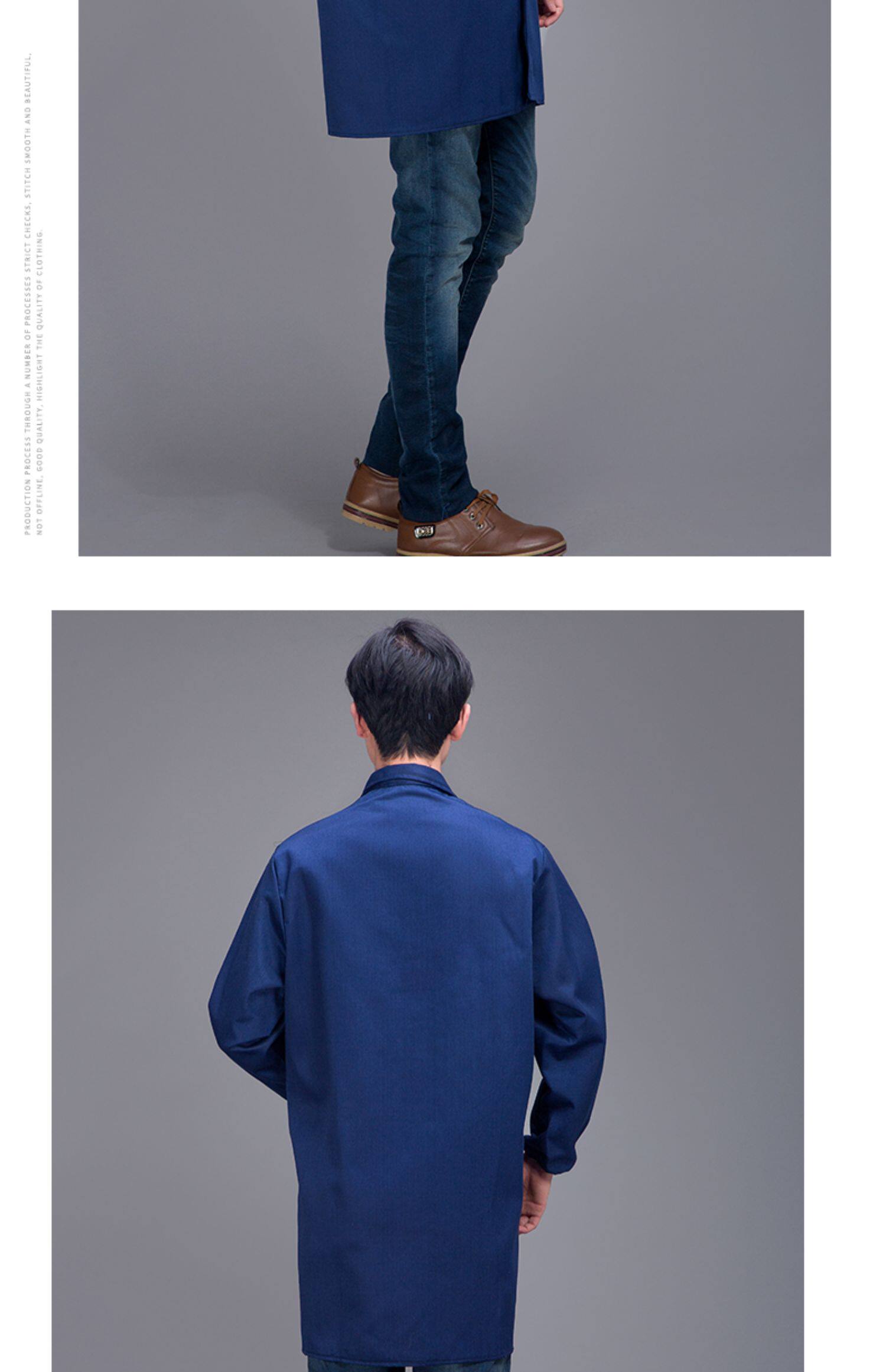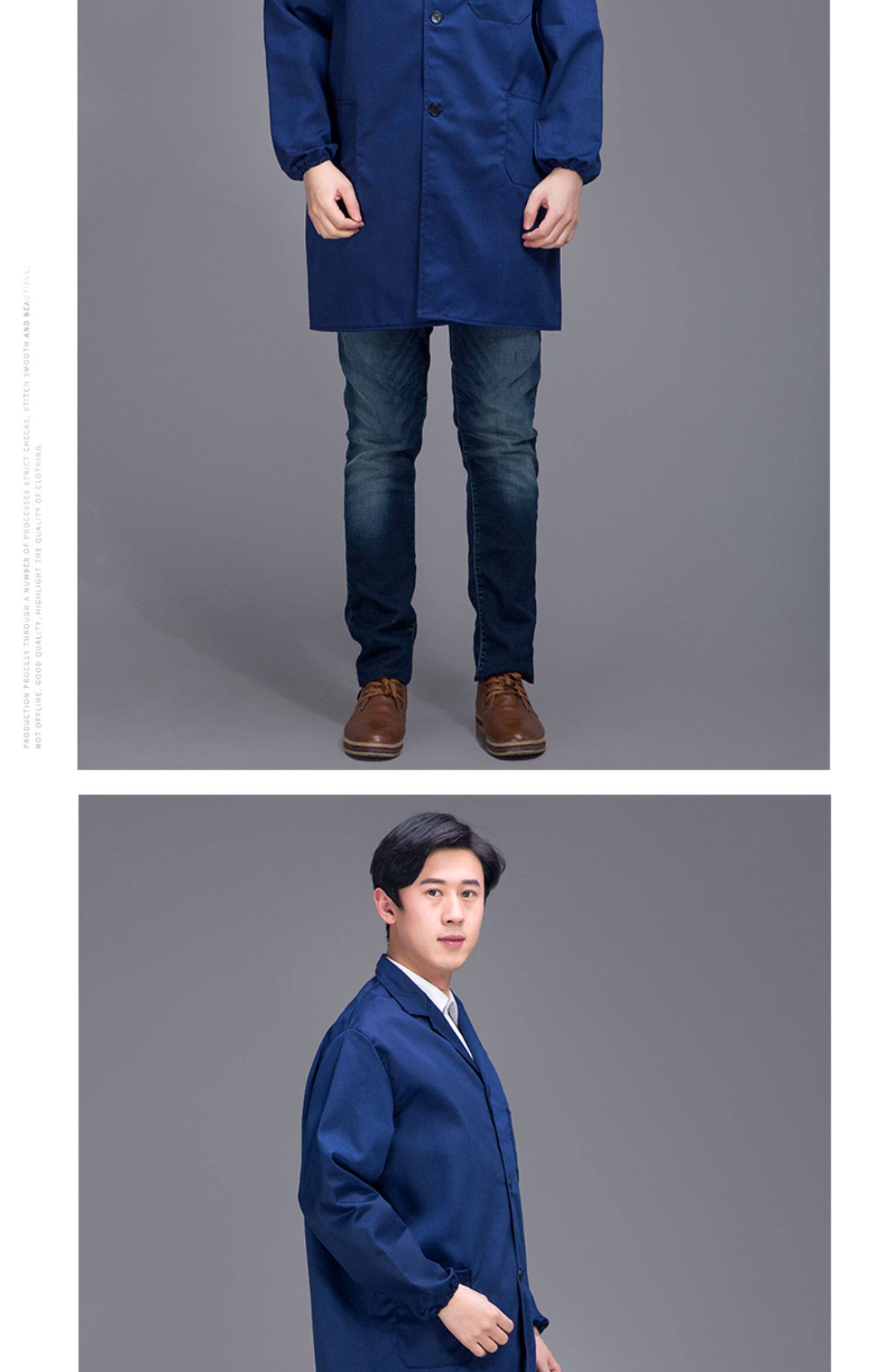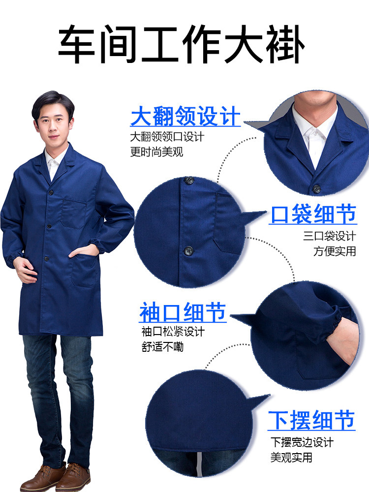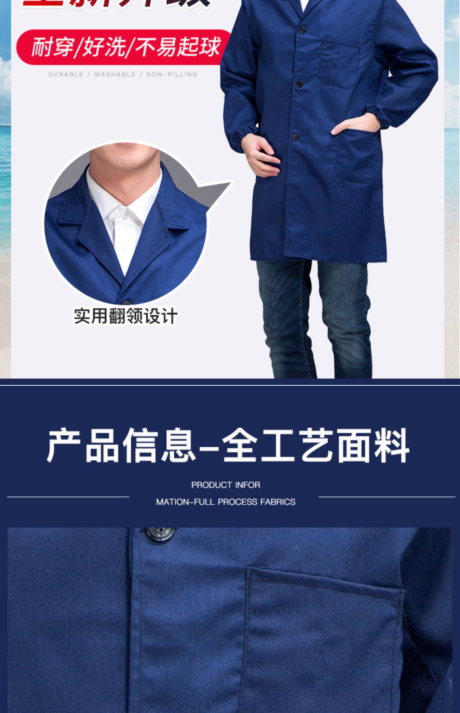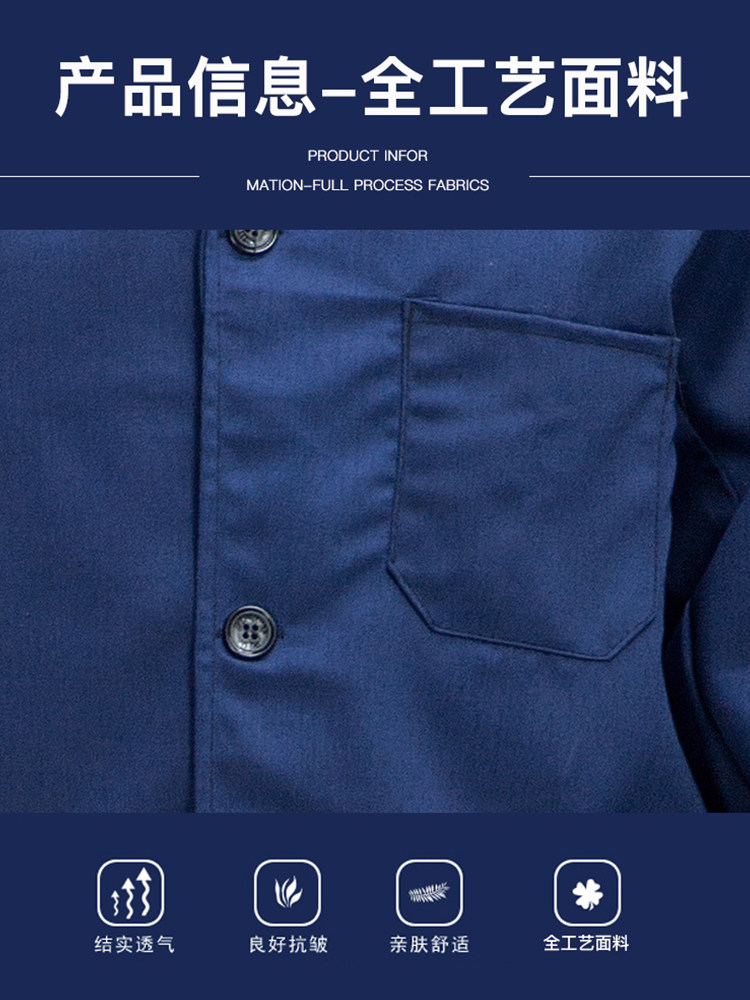 蓝色工装制服劳保工作服套装男女长袖纽扣加口袋耐磨工厂车间春秋