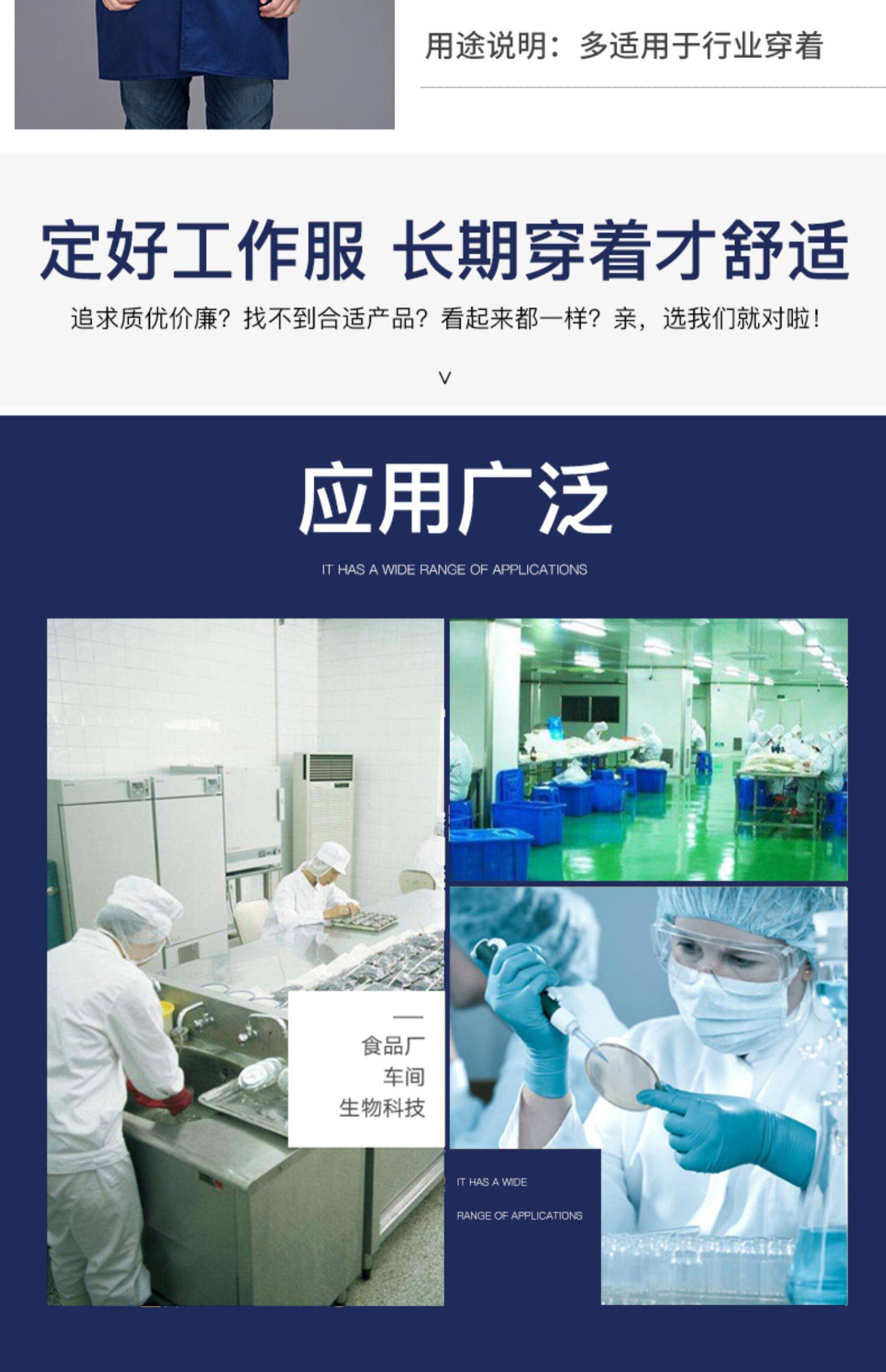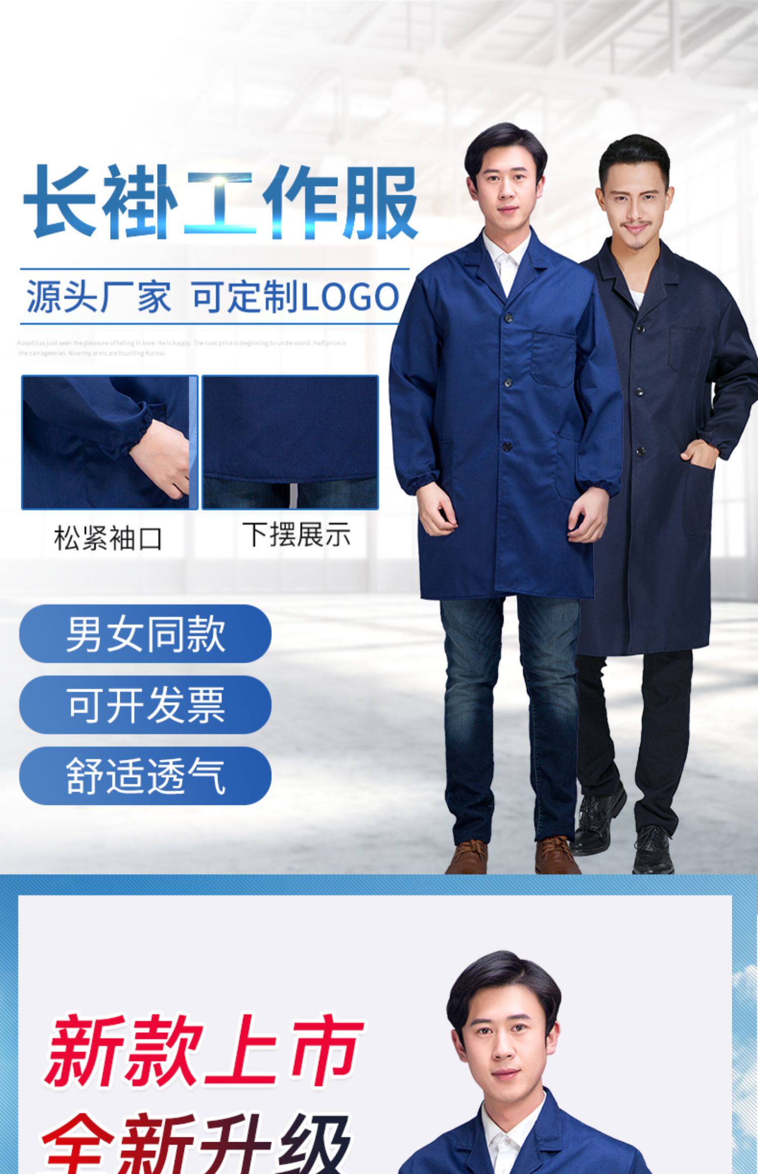 春秋季食品工作服定制套装劳保服装白色长袖工装耐磨蓝色工厂工衣