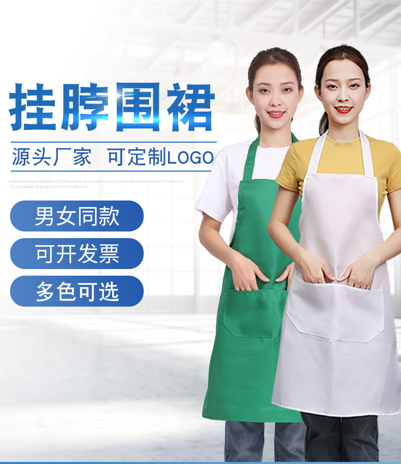挂脖围裙加长款厨房餐饮上班专用可定制logo印字食品车间工作服