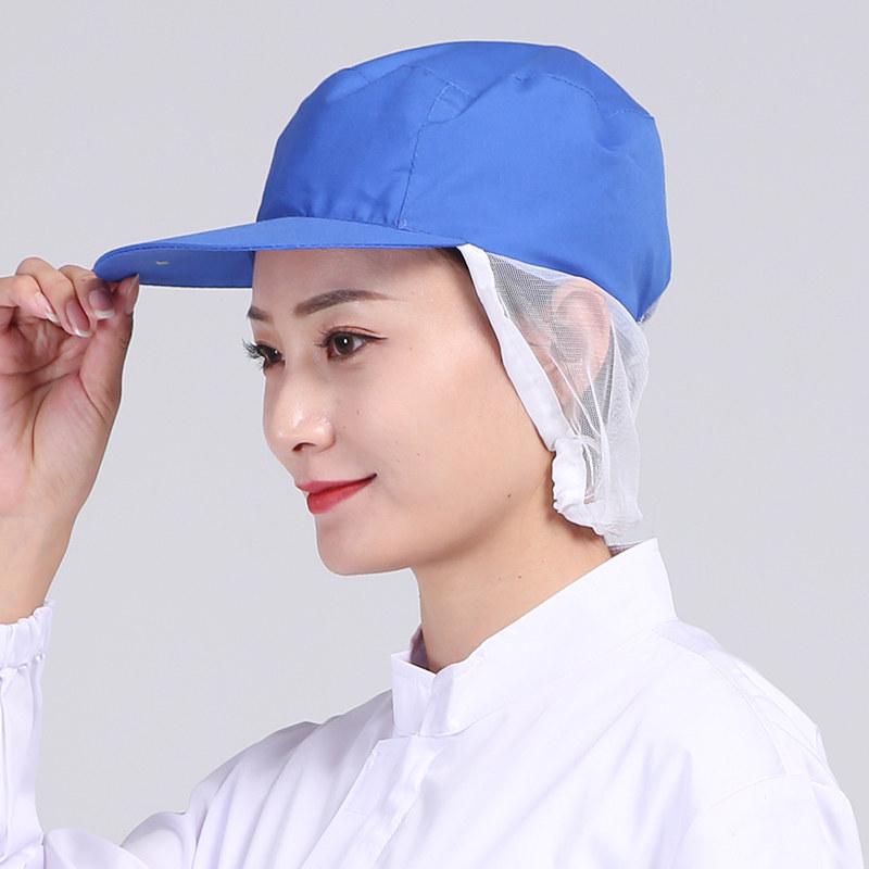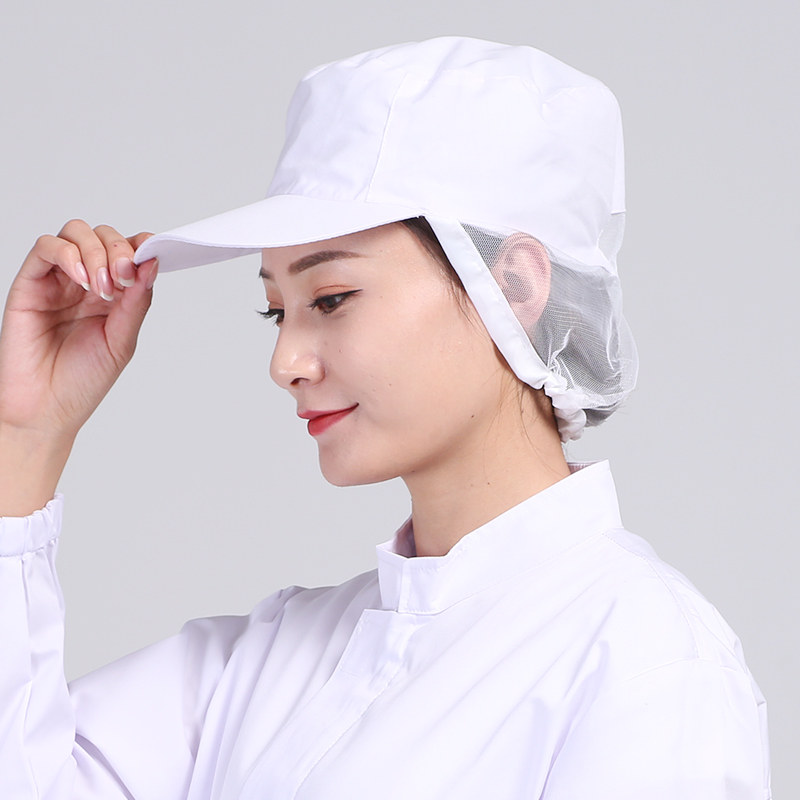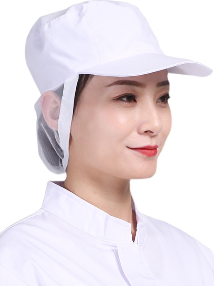 食品车间硬帽檐披肩帽男女通用卫生帽防护帽耳朵带网设计吸汗透气