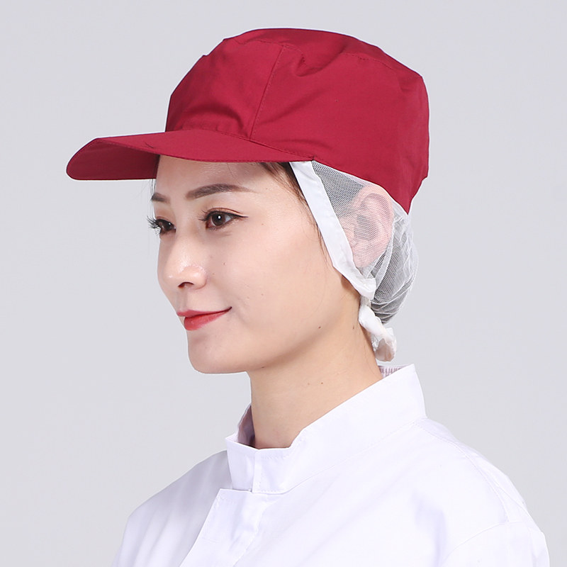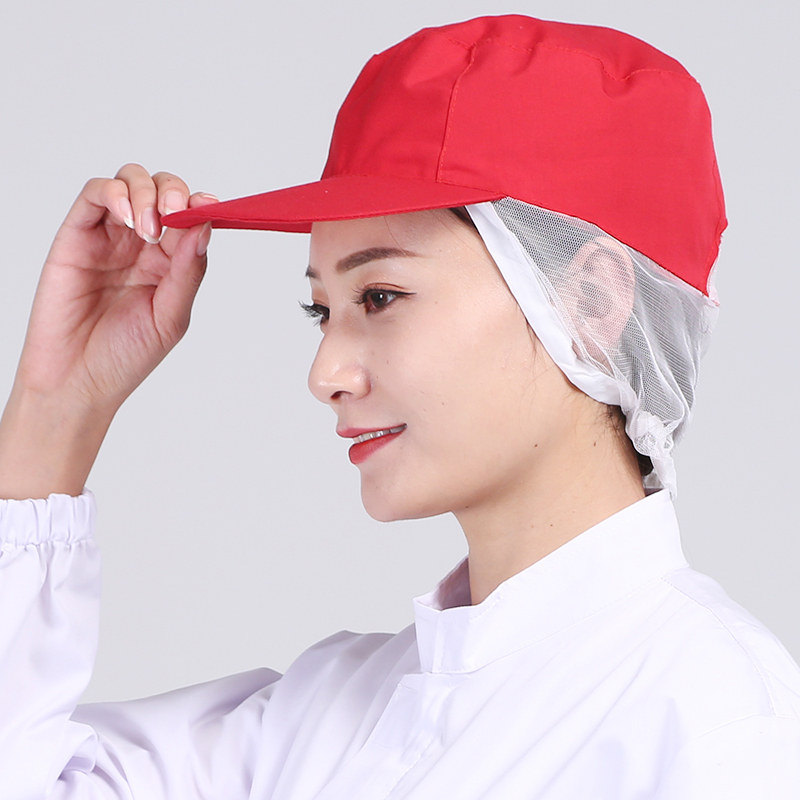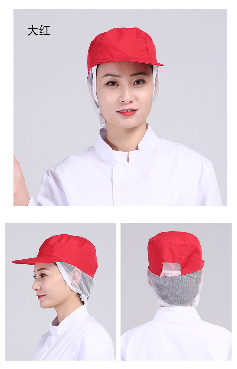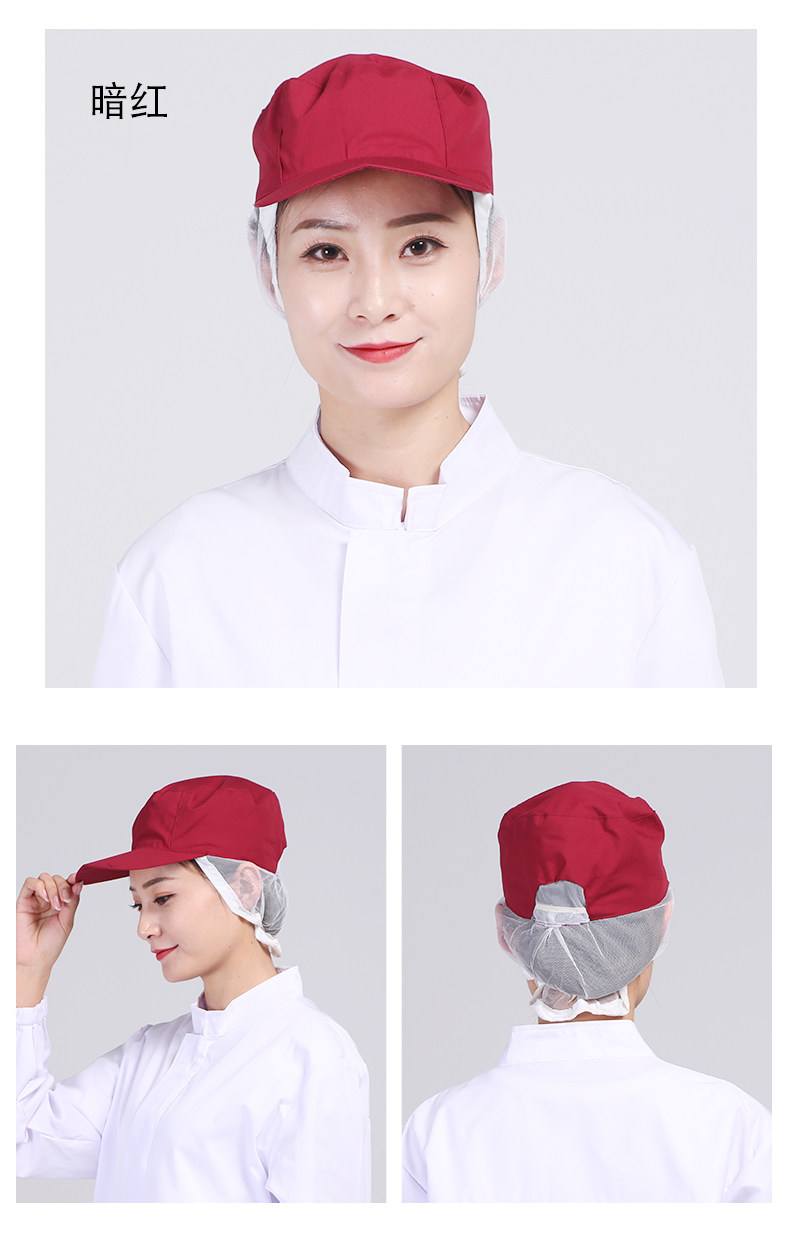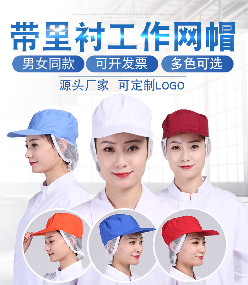 车间工作帽子男女鸭舌帽粉蓝红色食品帽防尘帽厂帽劳保白色网帽子