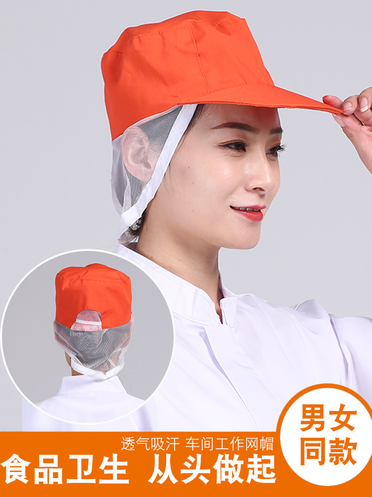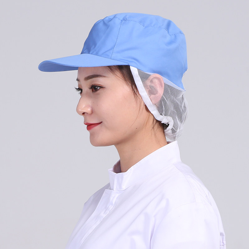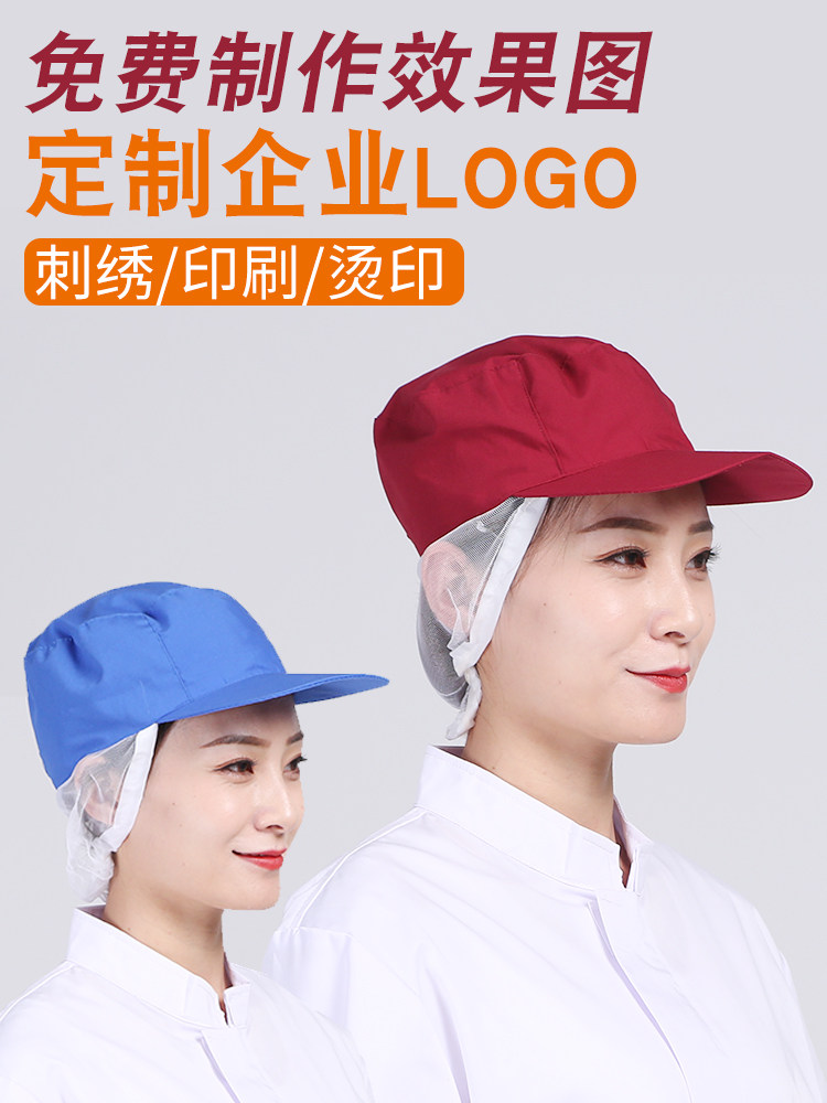 披肩帽工作帽食品帽耳朵带网男女厂帽环保卫生防尘易洗帽子车间帽