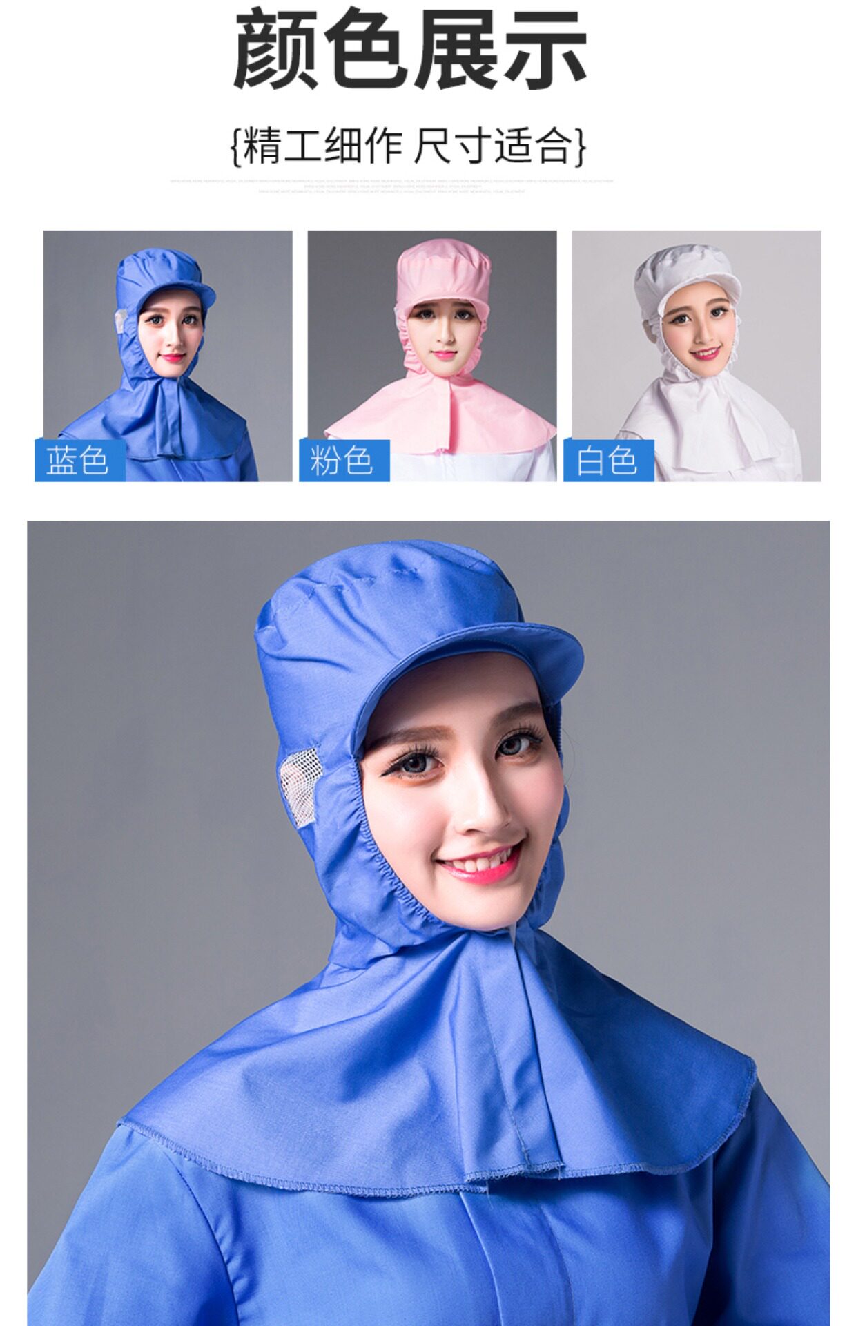 餐饮工作帽女防尘食品帽工厂车间透气网防静电防掉头发套头无尘帽