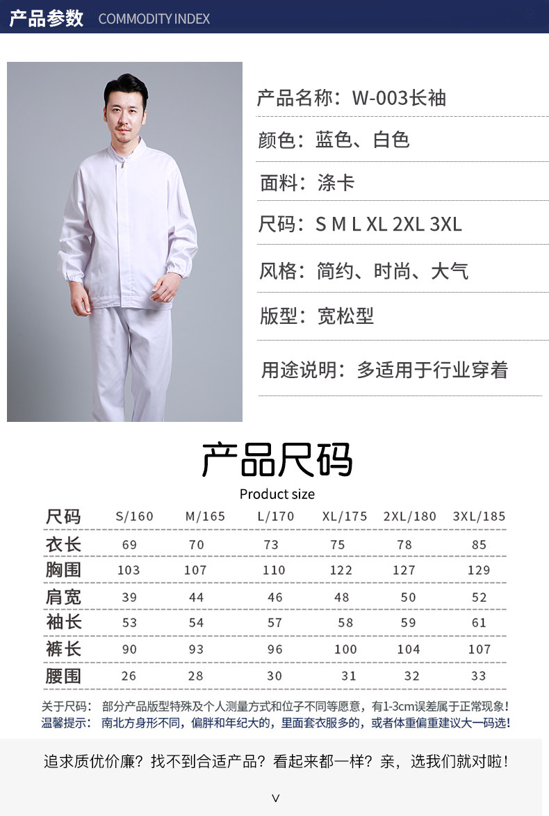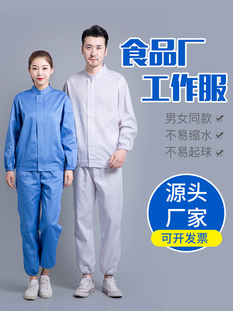 春秋季食品工作服定制套装劳保服装白色长袖工装耐磨蓝色工厂工衣