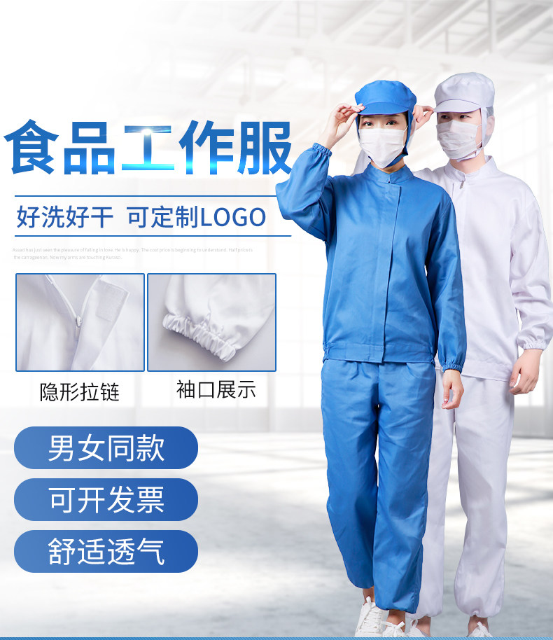 食品工作服工装制服男女套装隐形拉链斜插口袋车间劳保服春秋定制