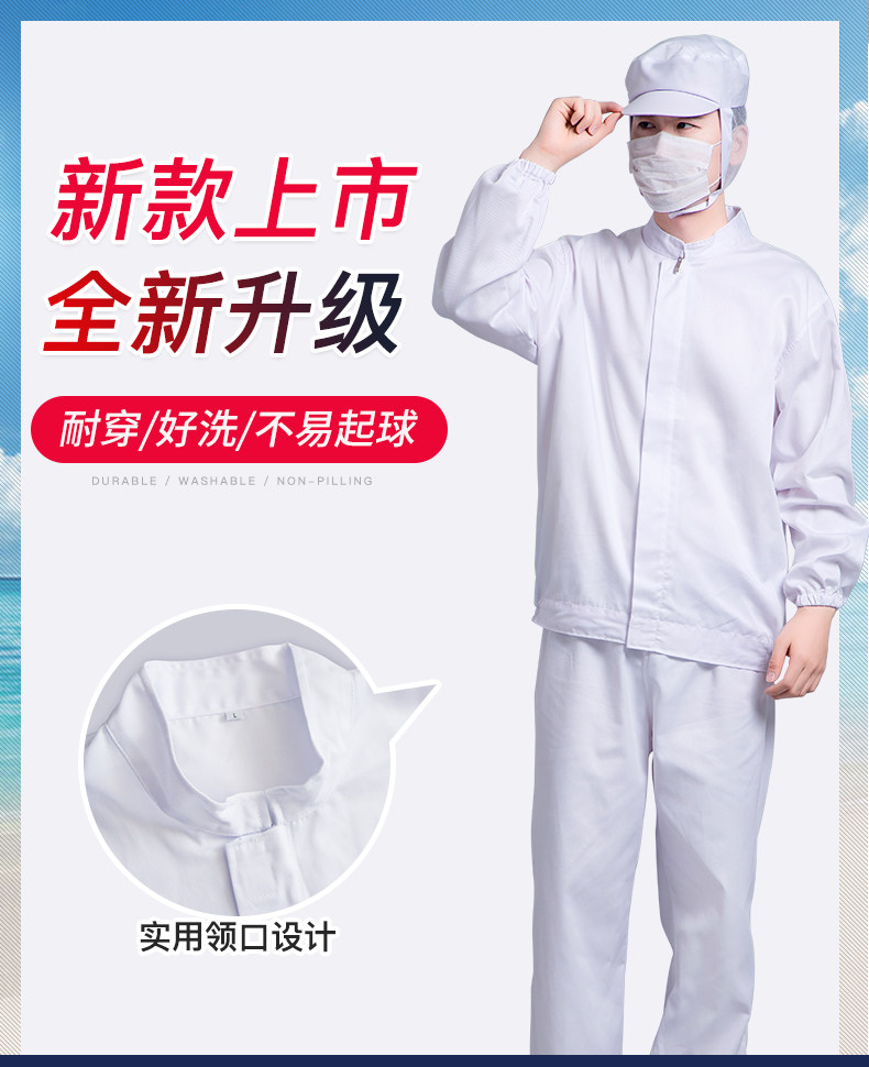 食品厂工作服白色翻领黏贴款春秋男女厂服生产车间专用工装可定制