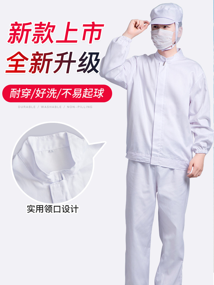 清仓处理!透气食品厂工作服套长袖生产车间白色劳保加工车间工装