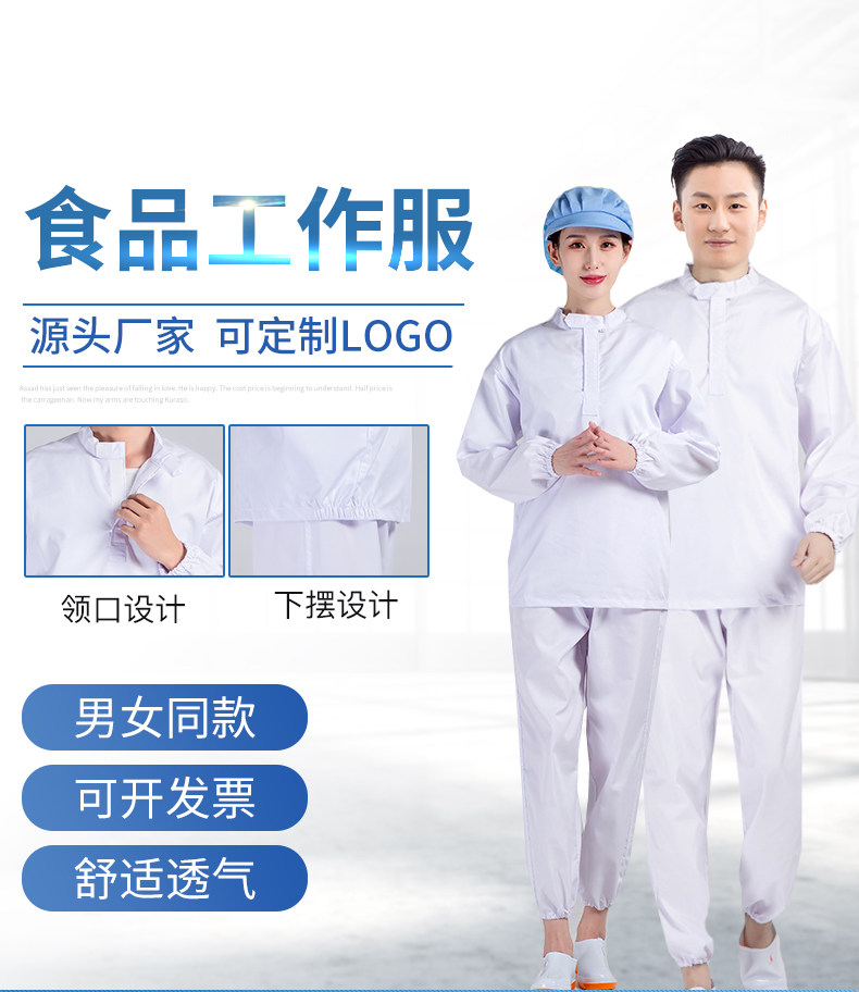 食品工作服工装制服男女套装隐形拉链斜插口袋车间劳保服春秋定制