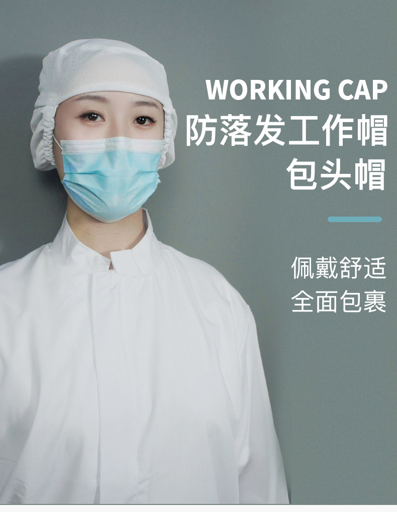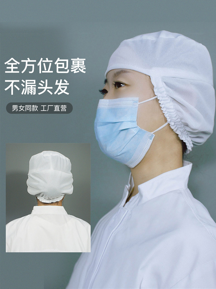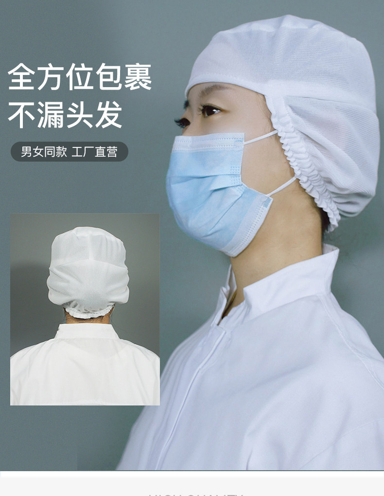 餐饮工作帽女防尘食品帽工厂车间透气网防静电防掉头发套头无尘帽