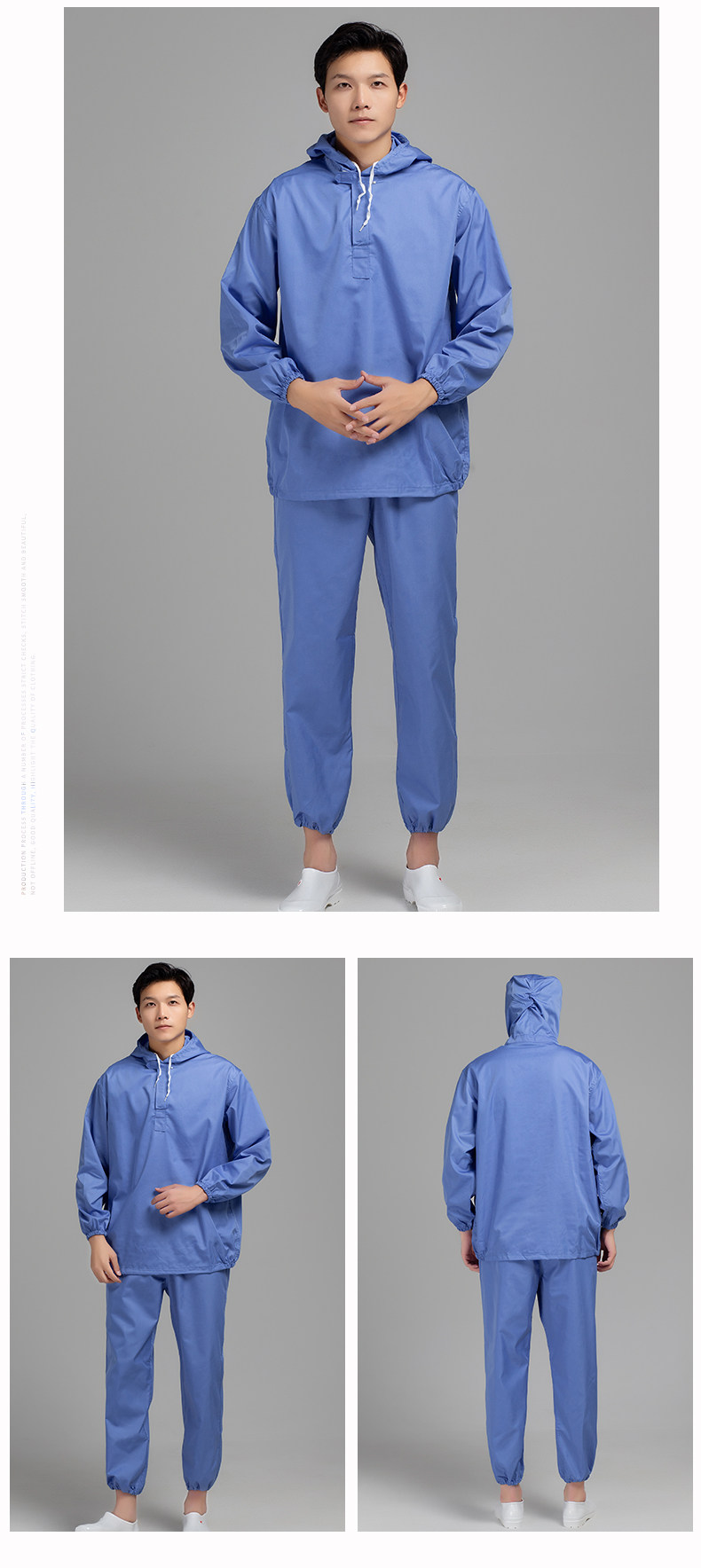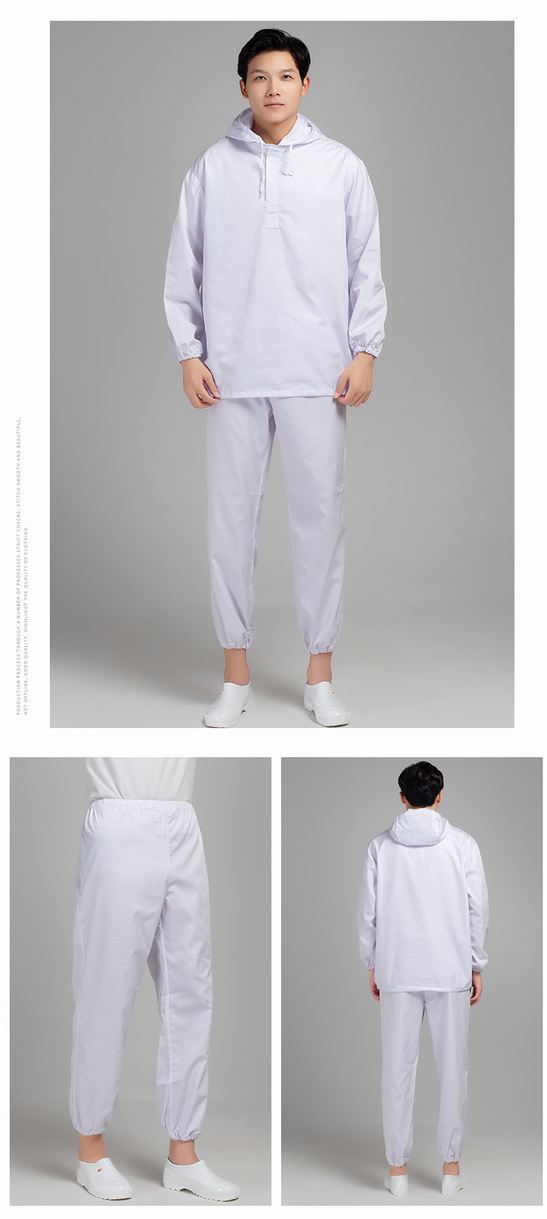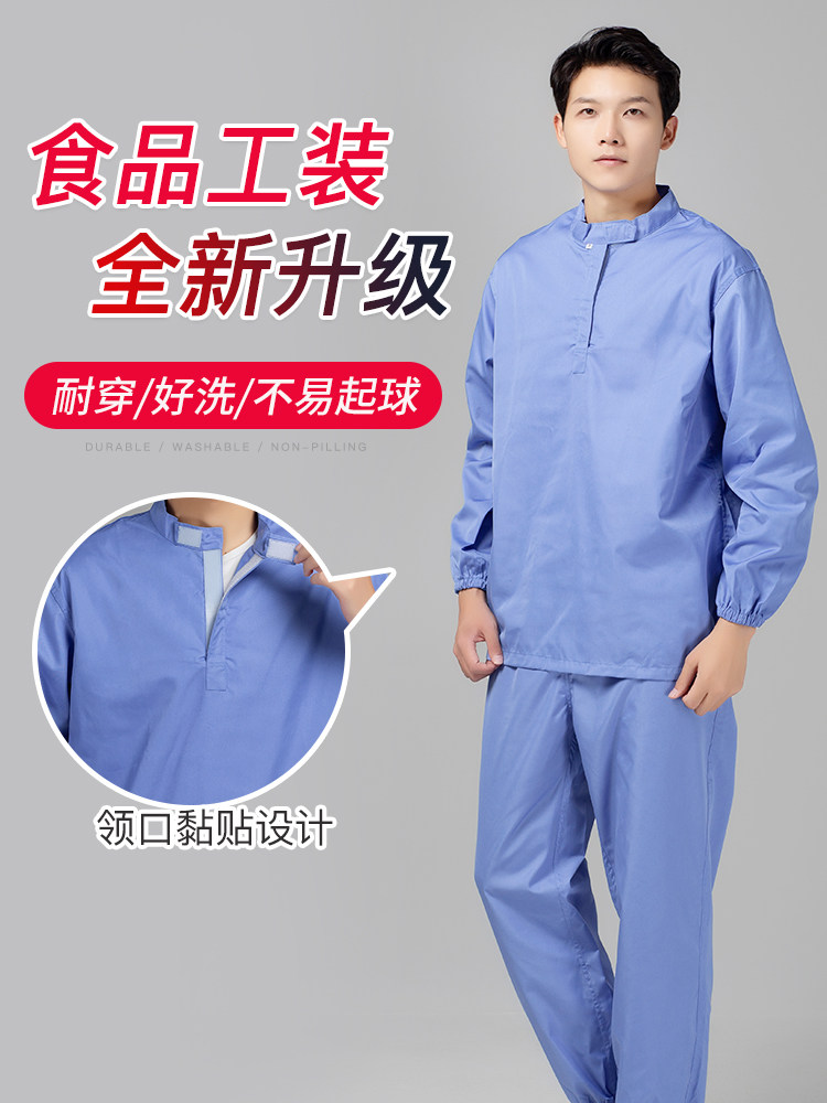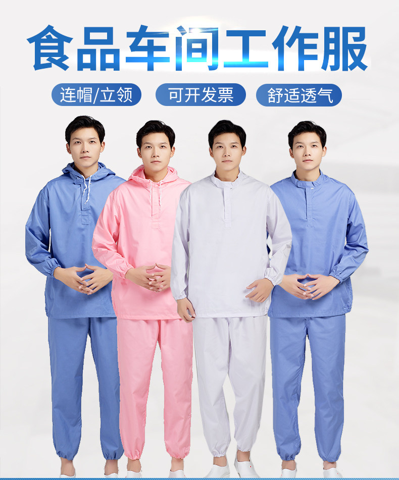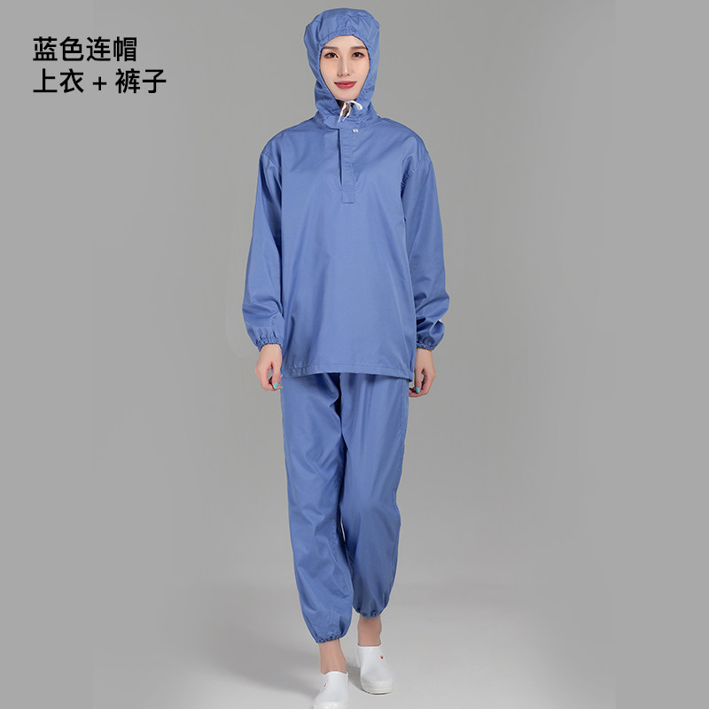 春秋防静电工作服涤棉透气防尘食品工厂车间连帽分体男女工装套装