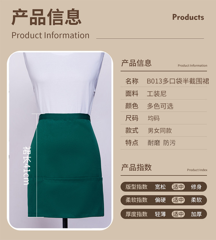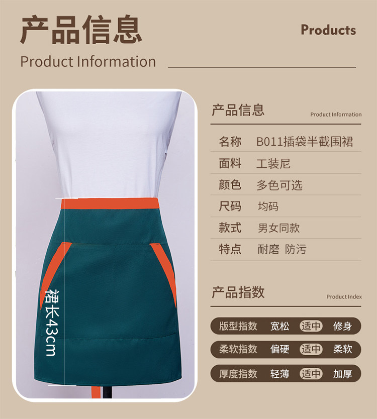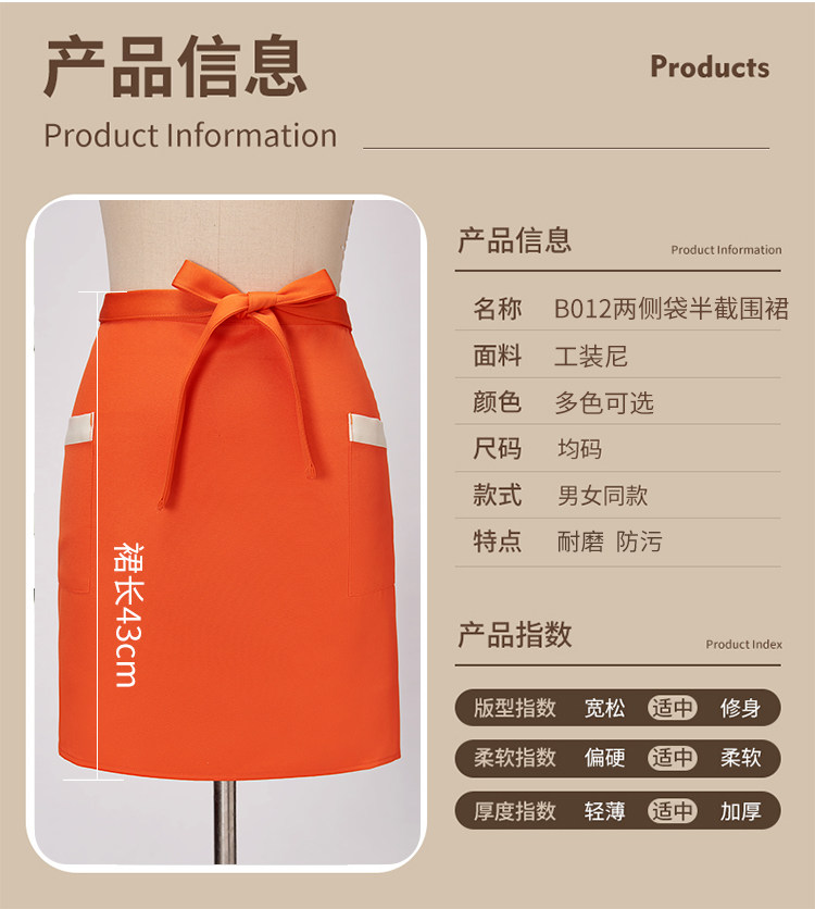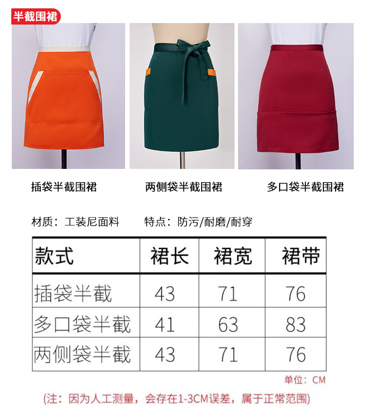 厨房半身短款围裙围腰餐厅咖啡奶茶店半截定制服务员工装帆布牛仔