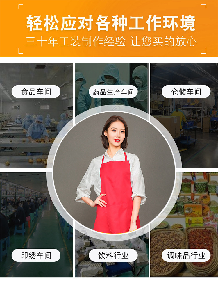 食品车间长袖围裙定制logo印字厨房餐饮专用新款反穿衣罩衣工作服