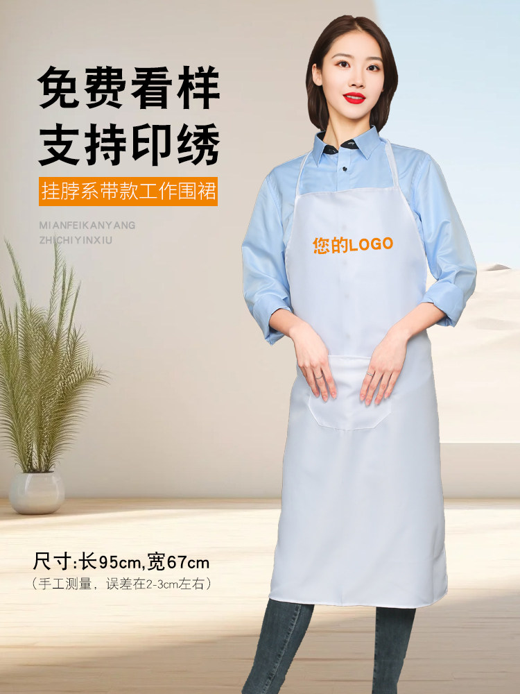 围裙定制logo印字挂脖款厨房围腰防水防油食品工作车间服务员工装