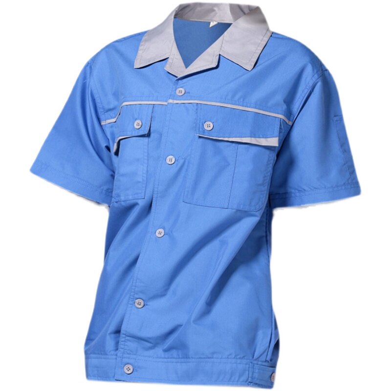 夏季薄款半袖建筑汽修厂工作服短袖套装仓储车间男女款劳保服上衣