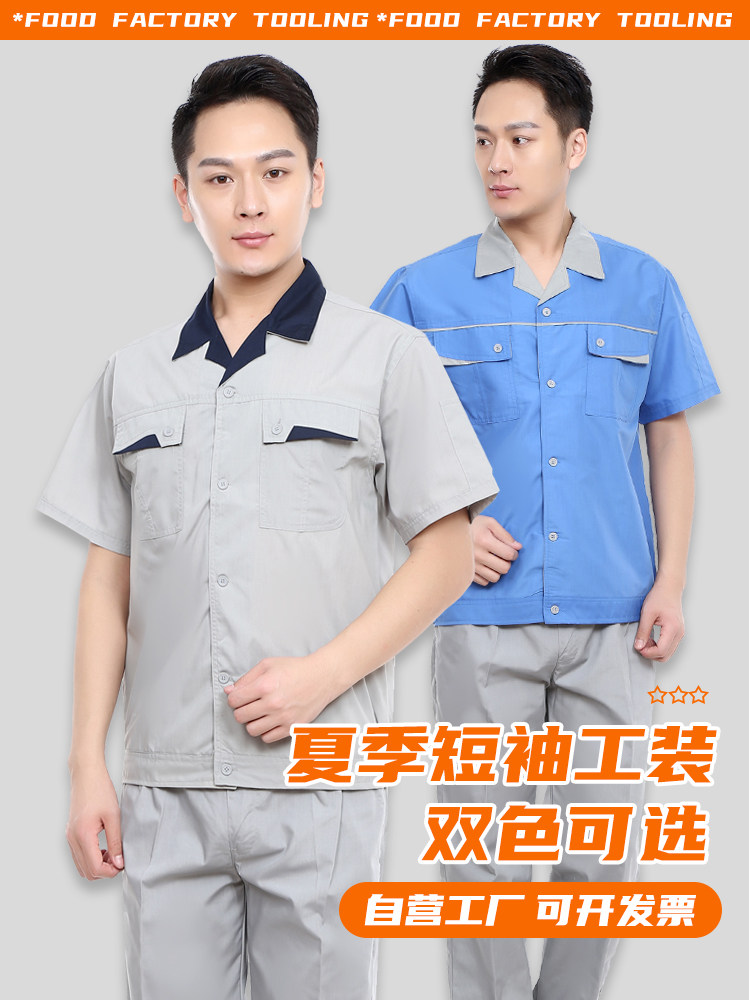 工作服套装男夏季工装上衣透气薄款短袖工程服工厂车间劳保服定制