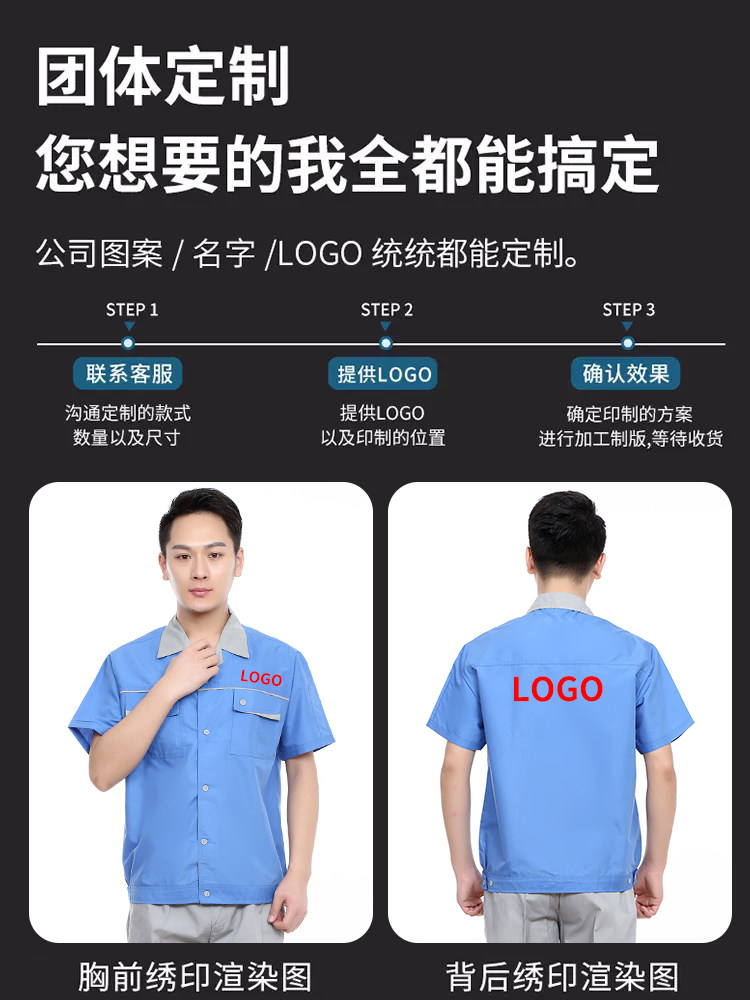工作服夏季套装短袖男工程服劳保服工服定制男女车间工地汽修上衣