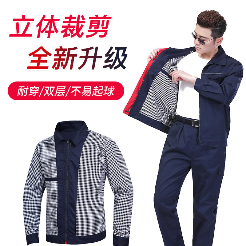 秋冬季长袖工作服套装男女装耐磨加厚双层工厂车间劳保服定制上衣