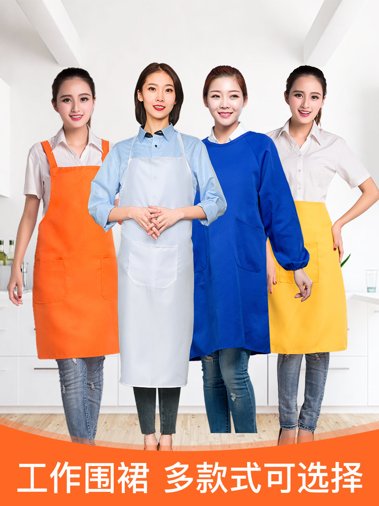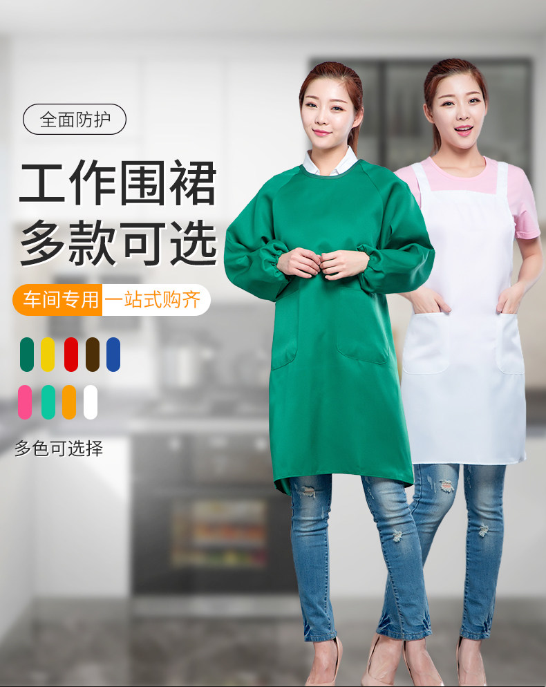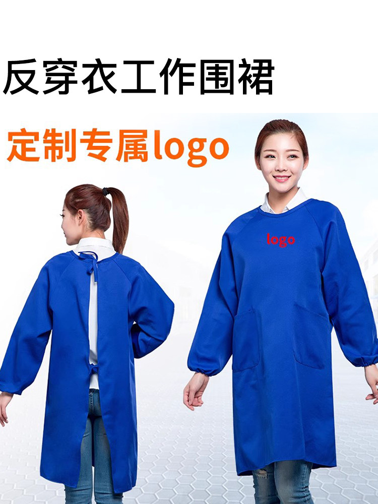 食品车间长袖围裙定制logo印字厨房餐饮专用新款反穿衣罩衣工作服