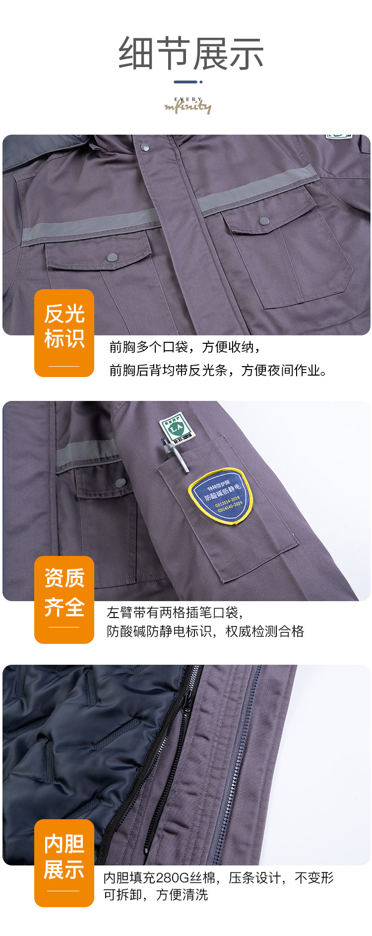 棉服冬季新款男女同款加厚防寒工程服汽修工地劳保棉袄可拆卸定制