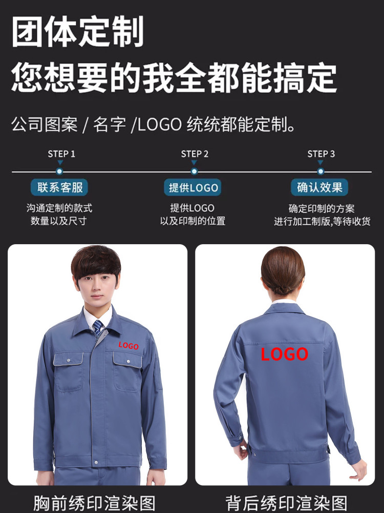 春秋款长袖耐磨工作服套装男工厂车间厂服维修汽修劳保服工装定制