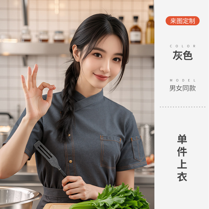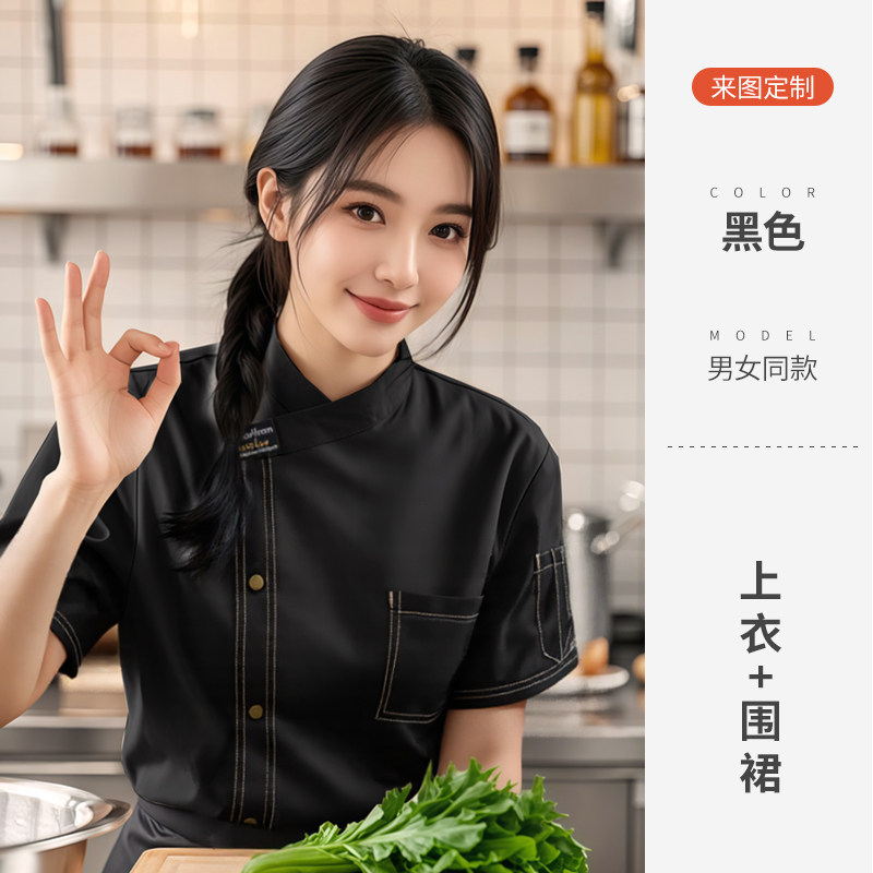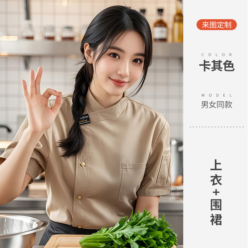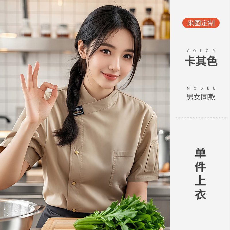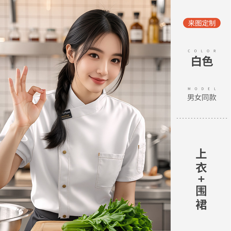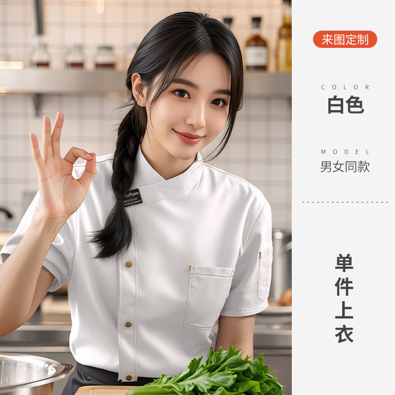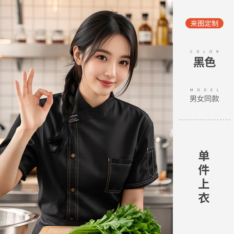餐饮厨师工作服装定制印logo星级酒店西餐厅后厨房烘焙短袖夏季女