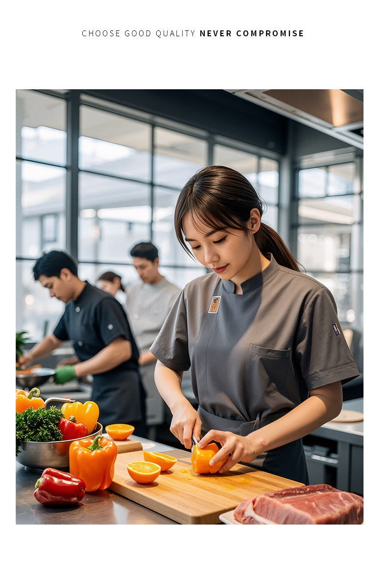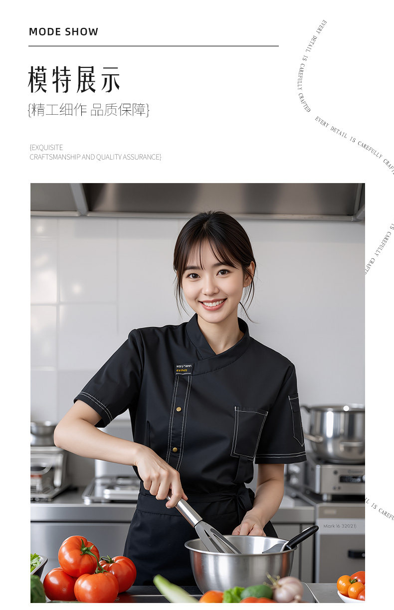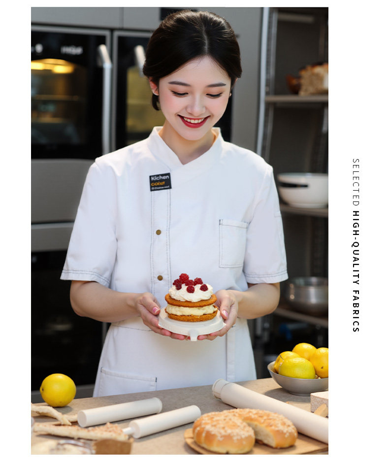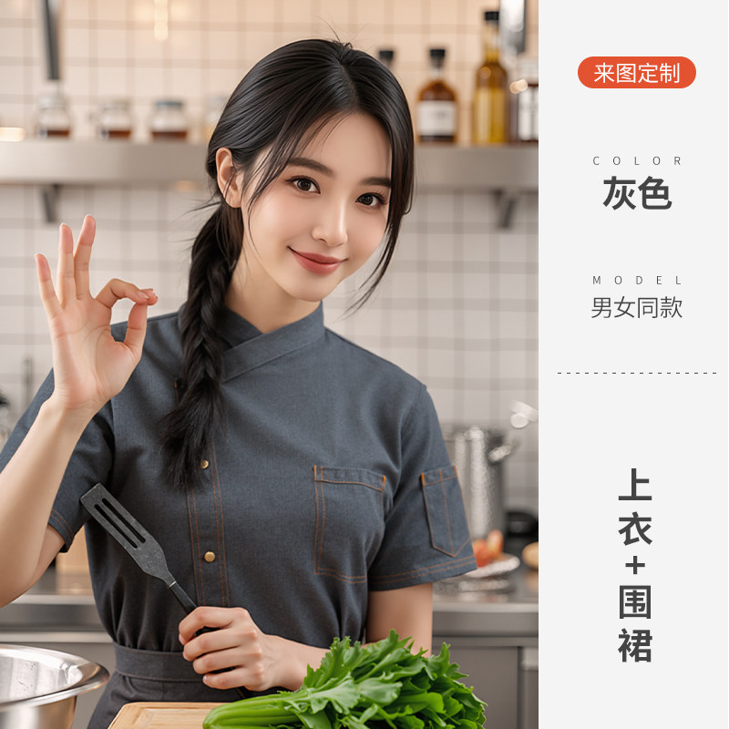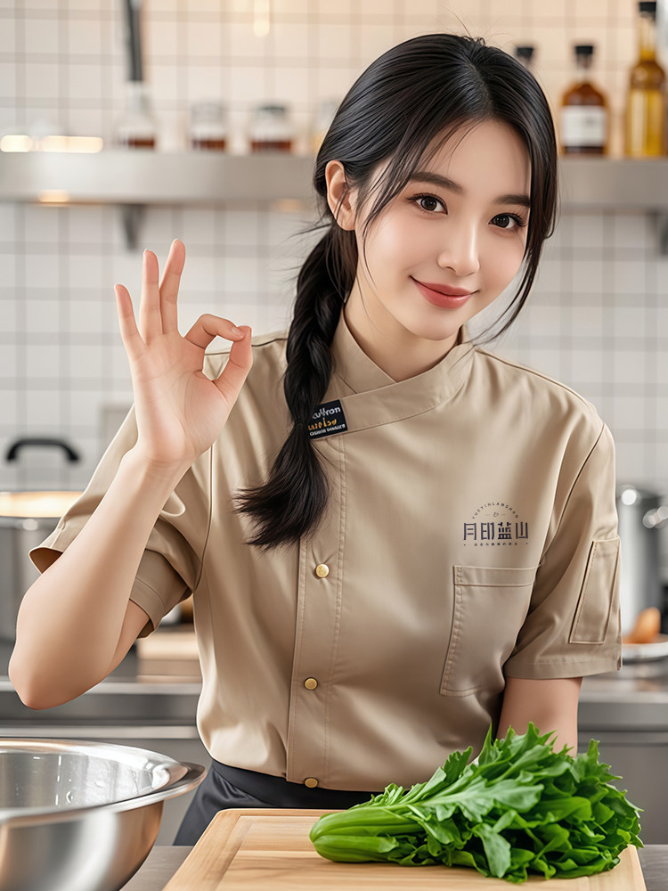 餐饮厨师工作服装定制印logo星级酒店西餐厅后厨房烘焙短袖夏季女