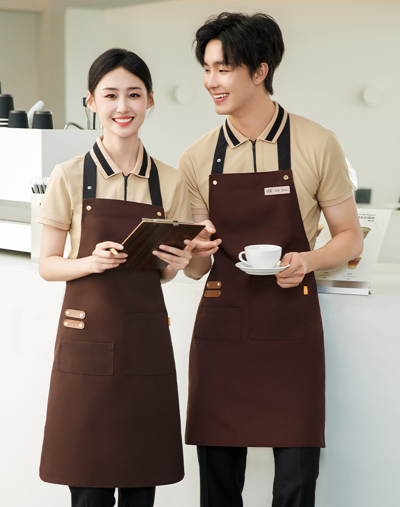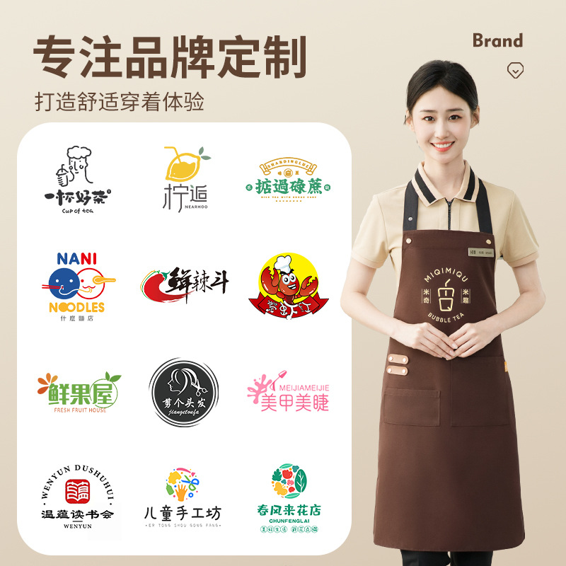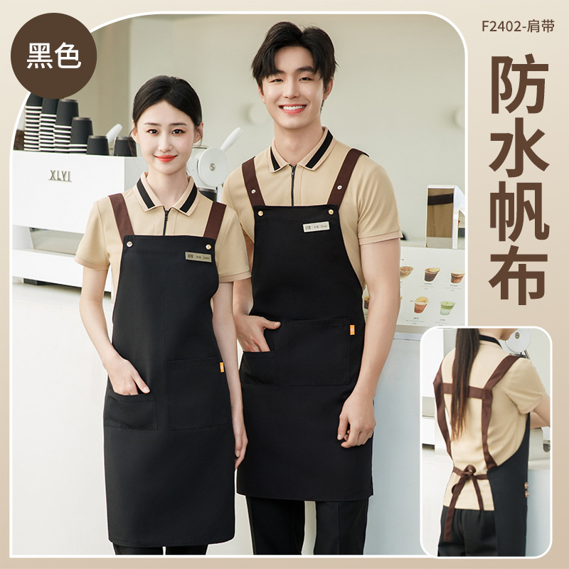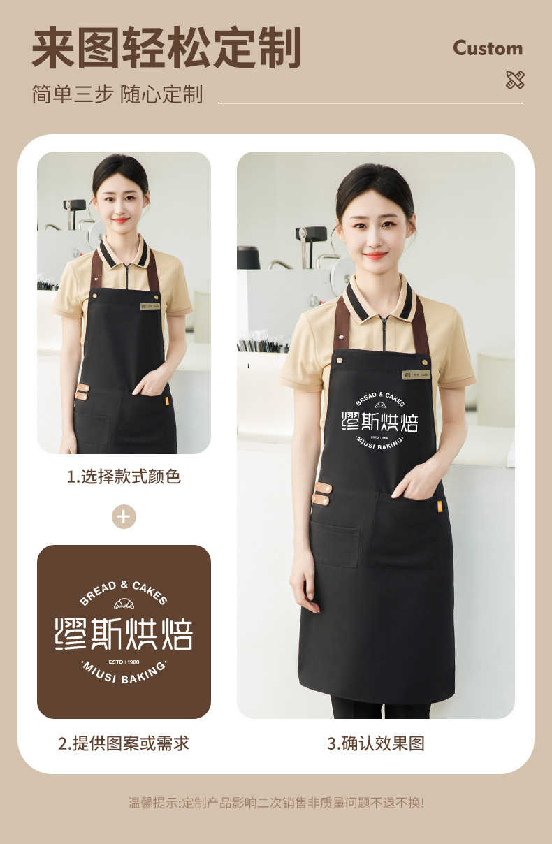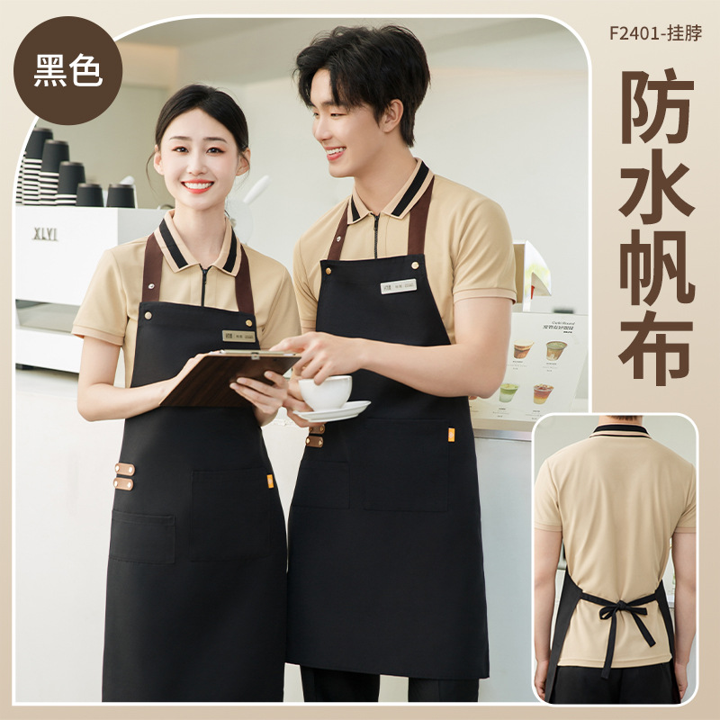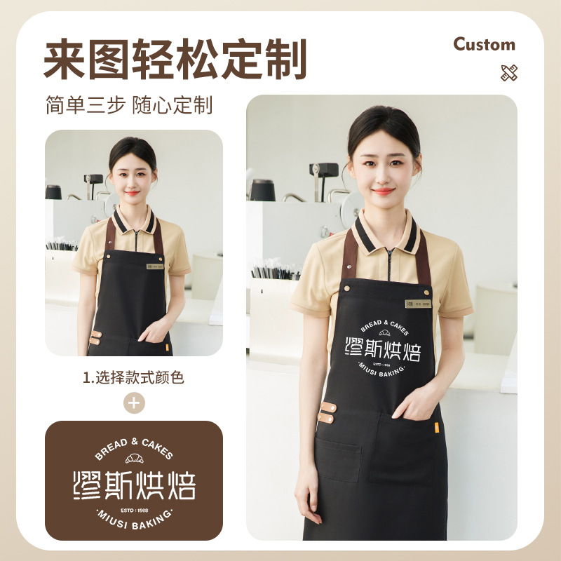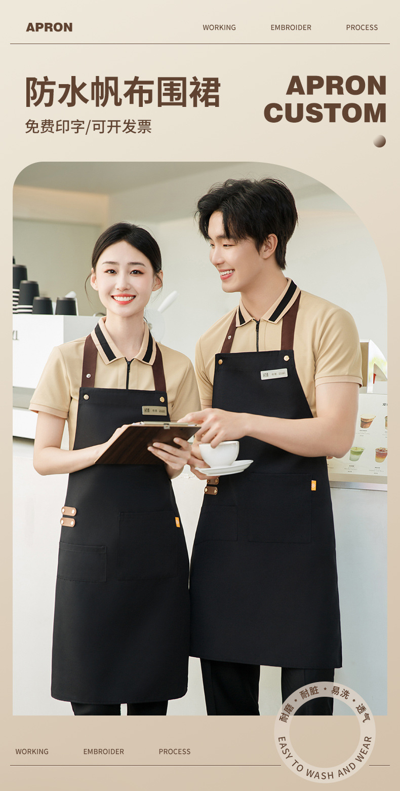 拼接帆布围裙定制 咖啡师厨房餐厅理发工作围裙批发印制logo