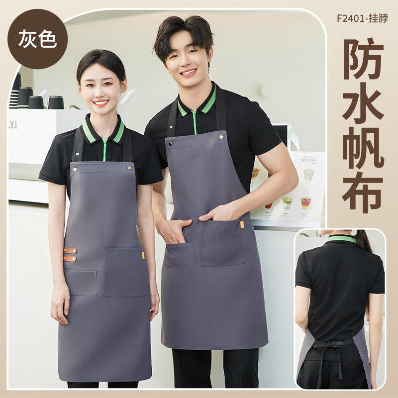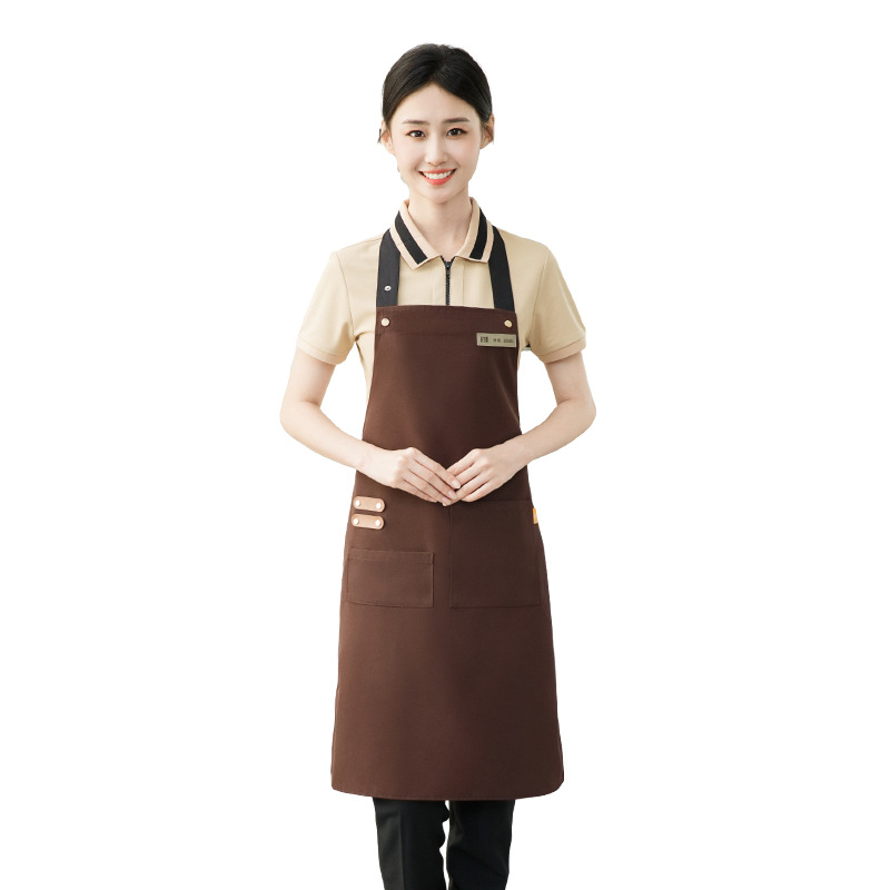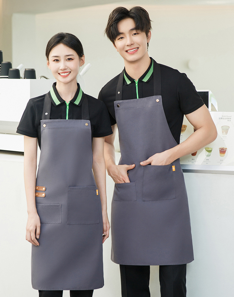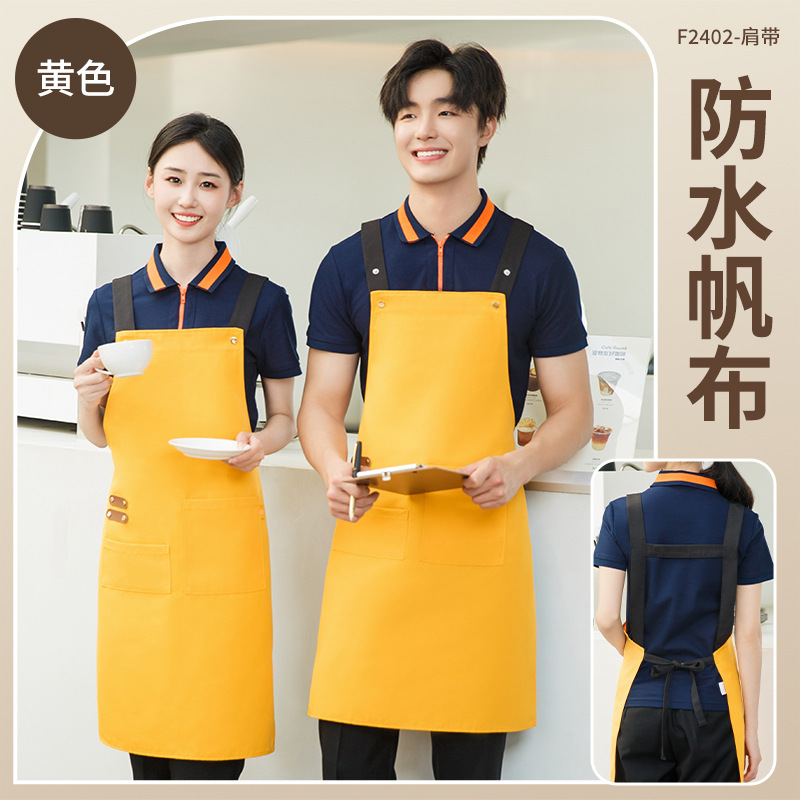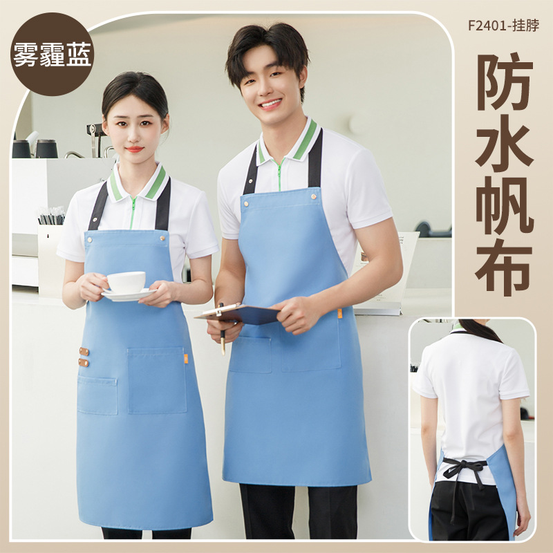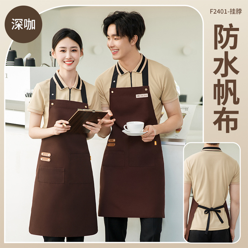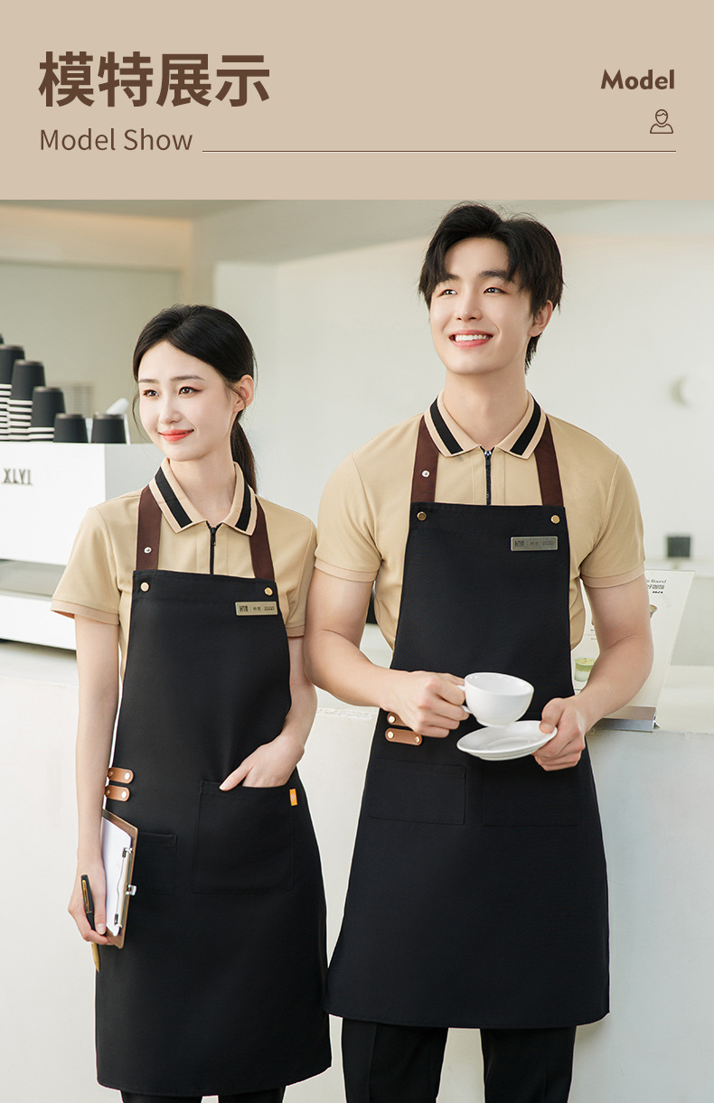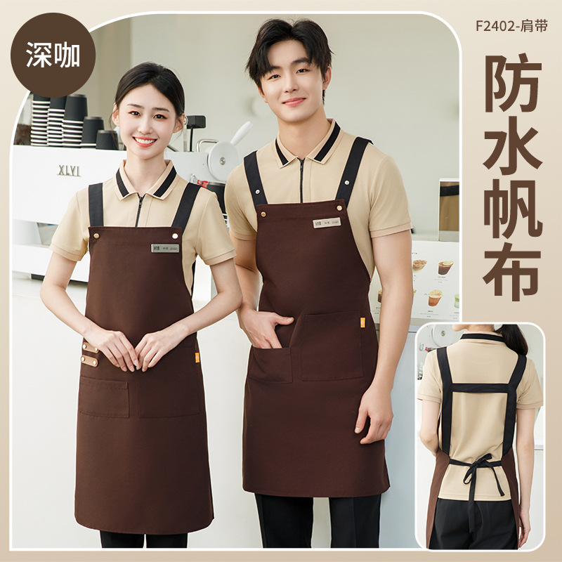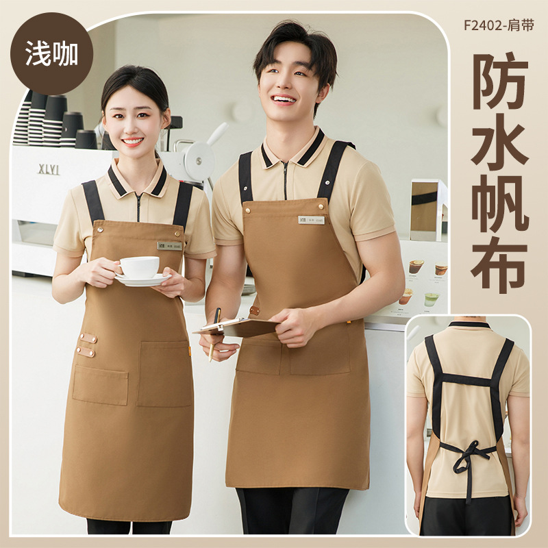 拼接帆布围裙定制 咖啡师厨房餐厅理发工作围裙批发印制logo