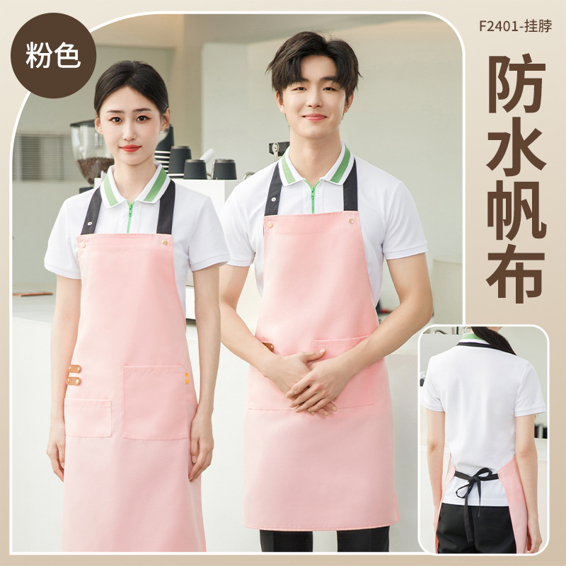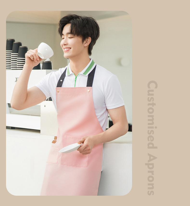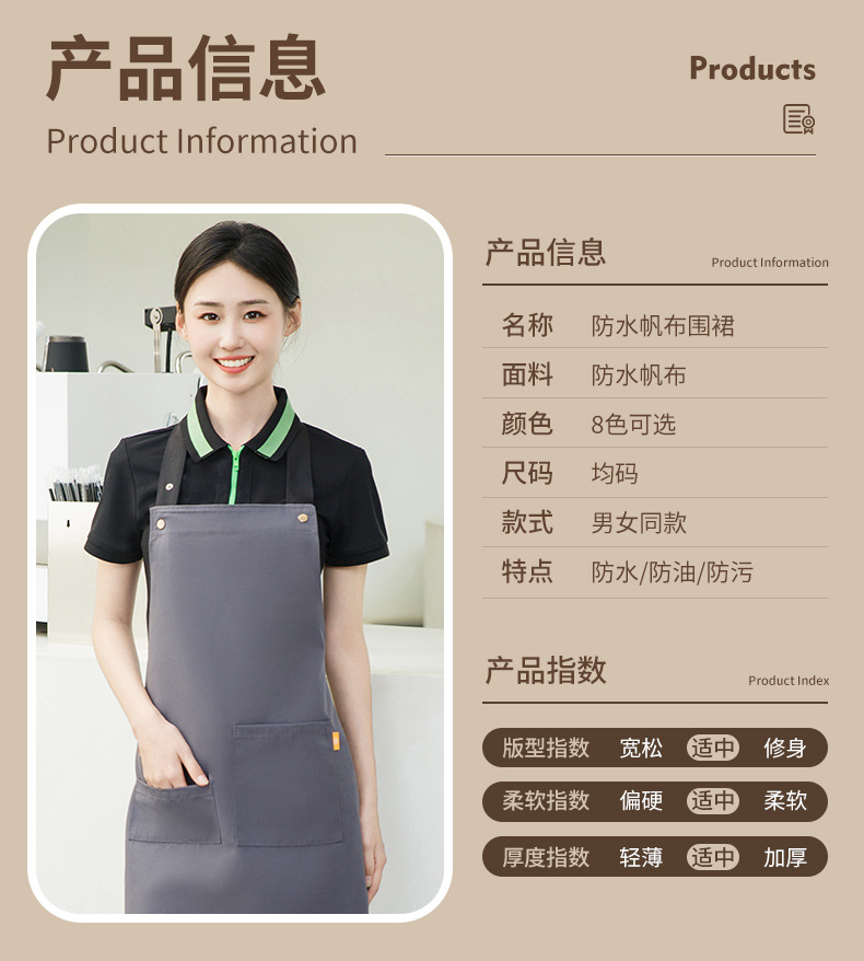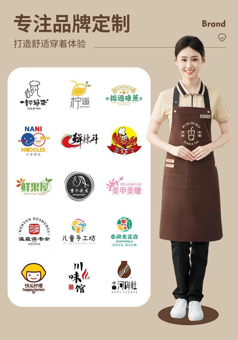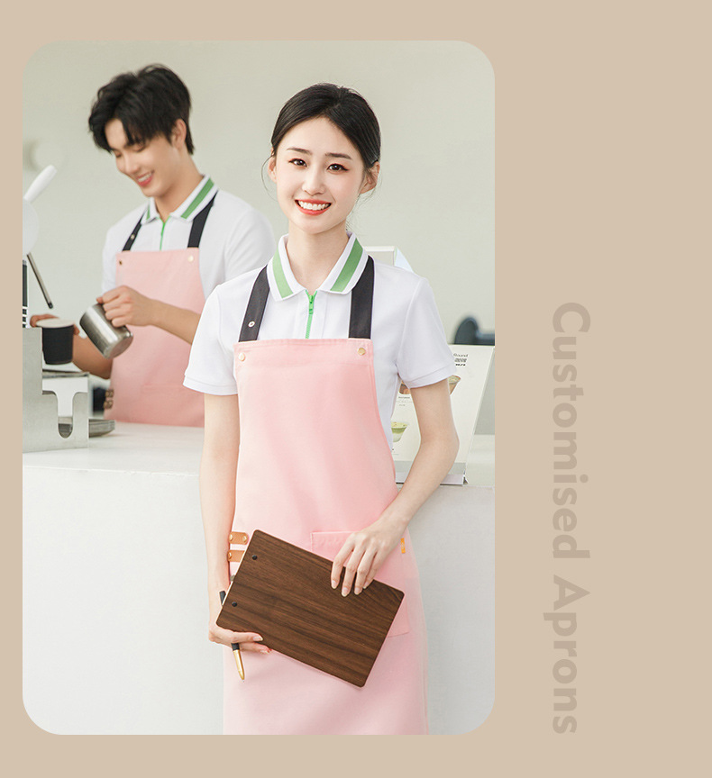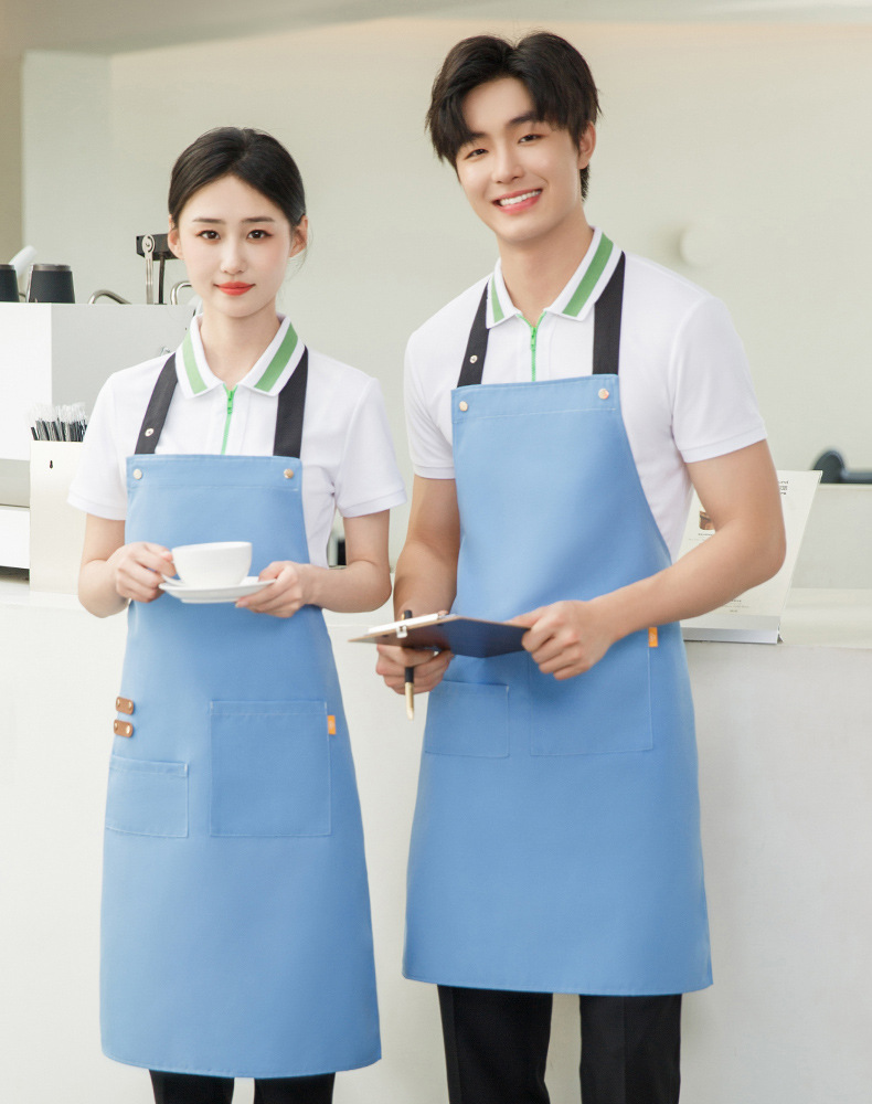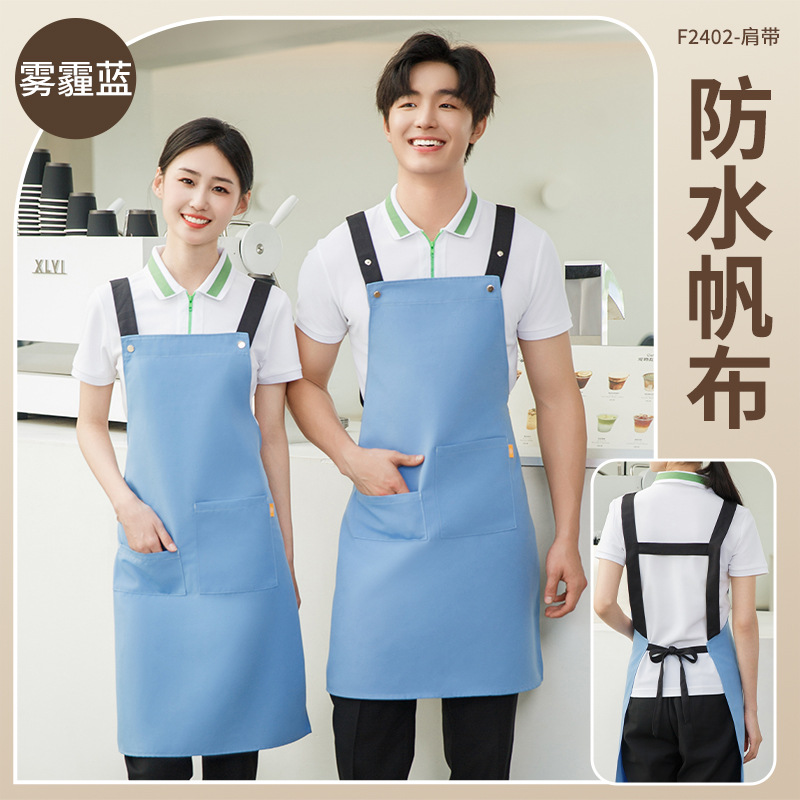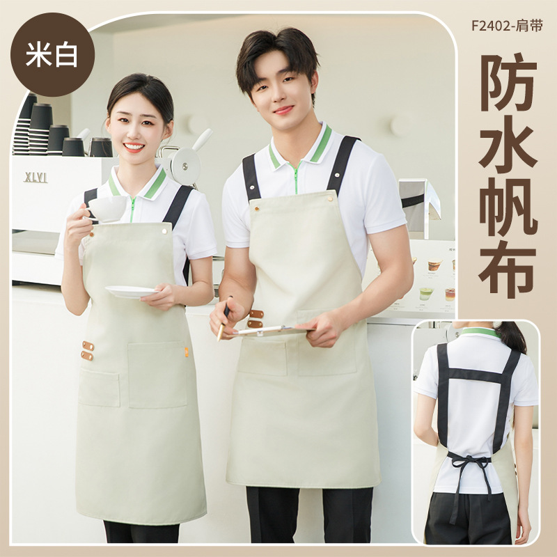拼接帆布围裙定制 咖啡师厨房餐厅理发工作围裙批发印制logo