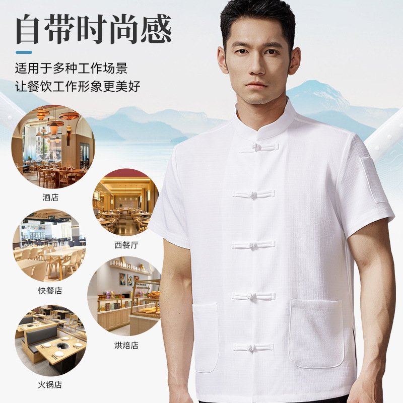 厨师工作服男长袖春夏款高端饭店餐饮烘焙西餐餐厅后厨厨师服短袖