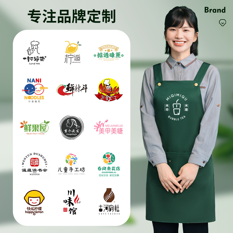 防水围裙logo印字现货餐饮专用超市餐厅服务员厨房套装工作服男女