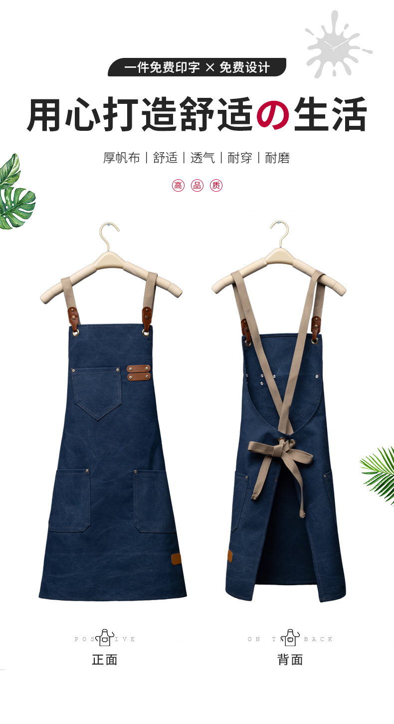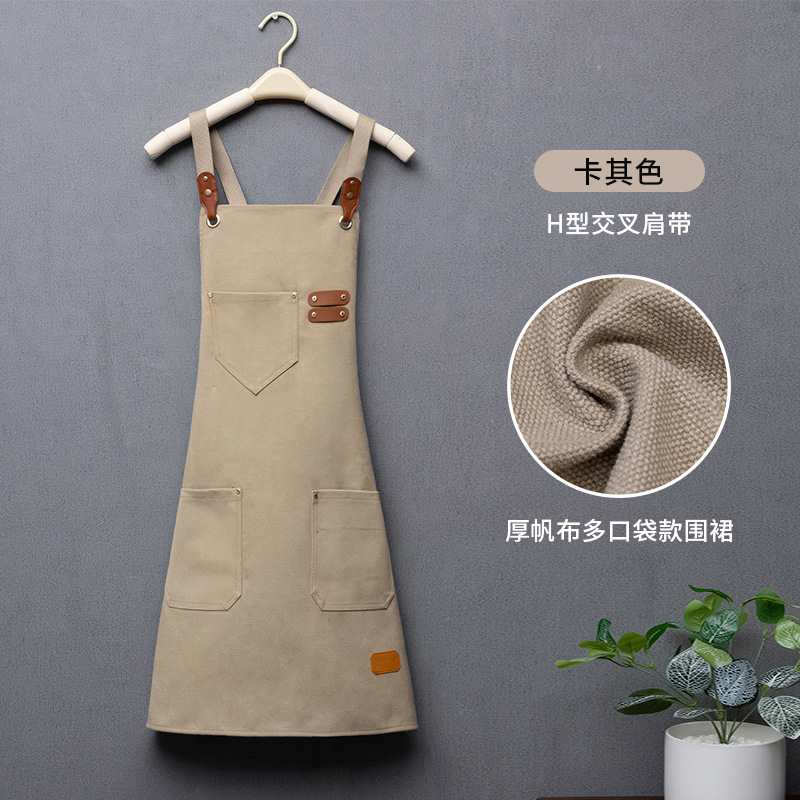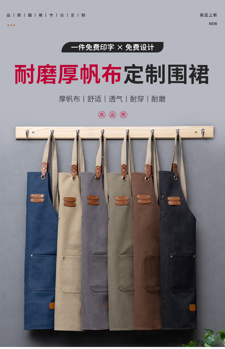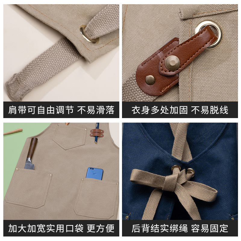 帆布围裙定制秋冬多口袋加厚工作服厨房家务防水防污罩衣围裙定做