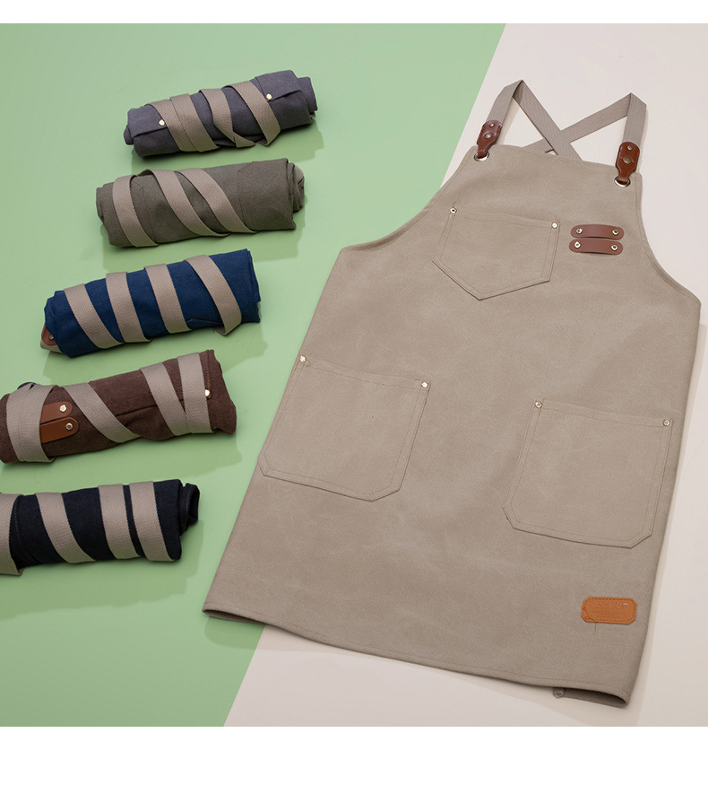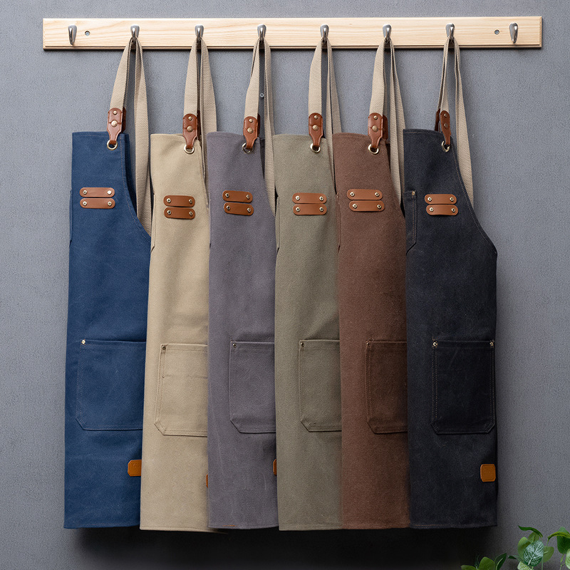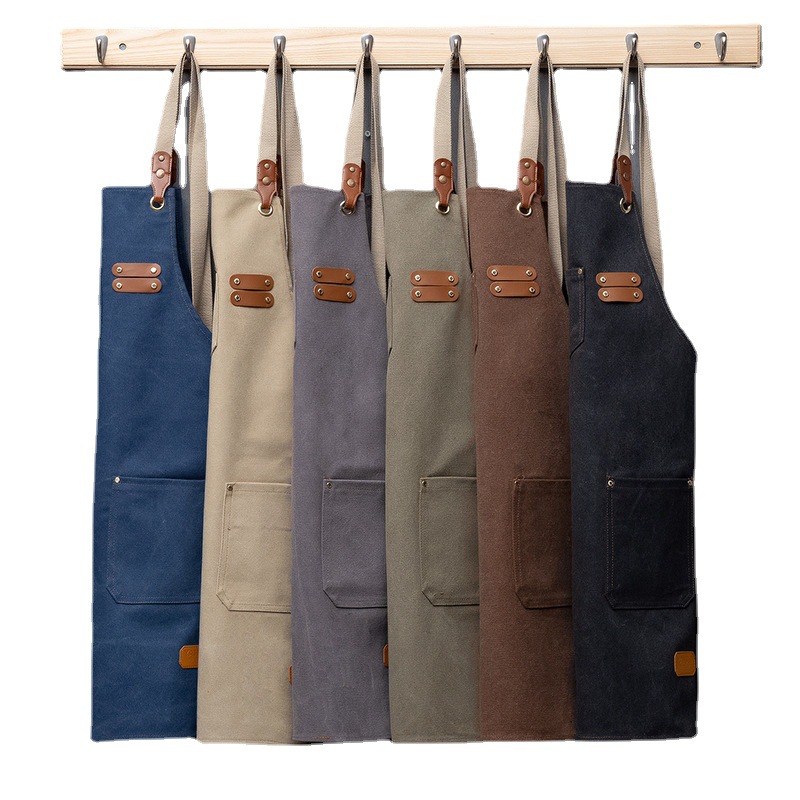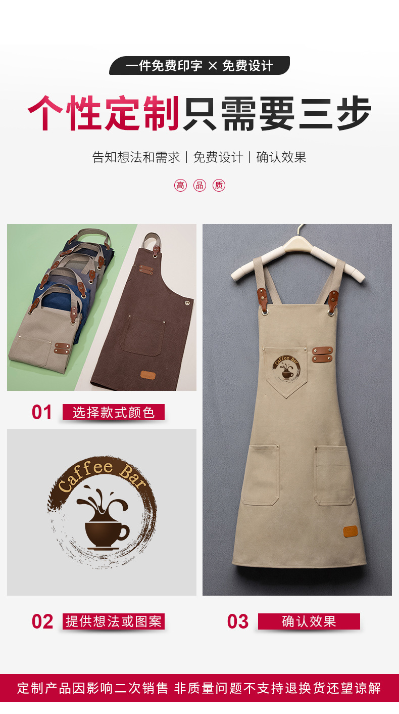 帆布围裙定制秋冬多口袋加厚工作服厨房家务防水防污罩衣围裙定做
