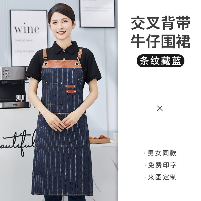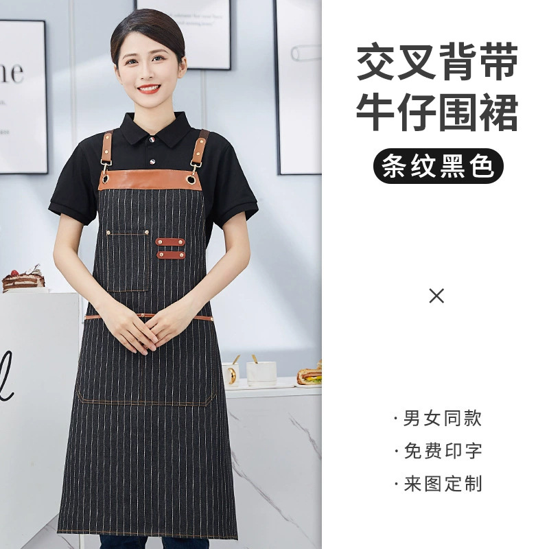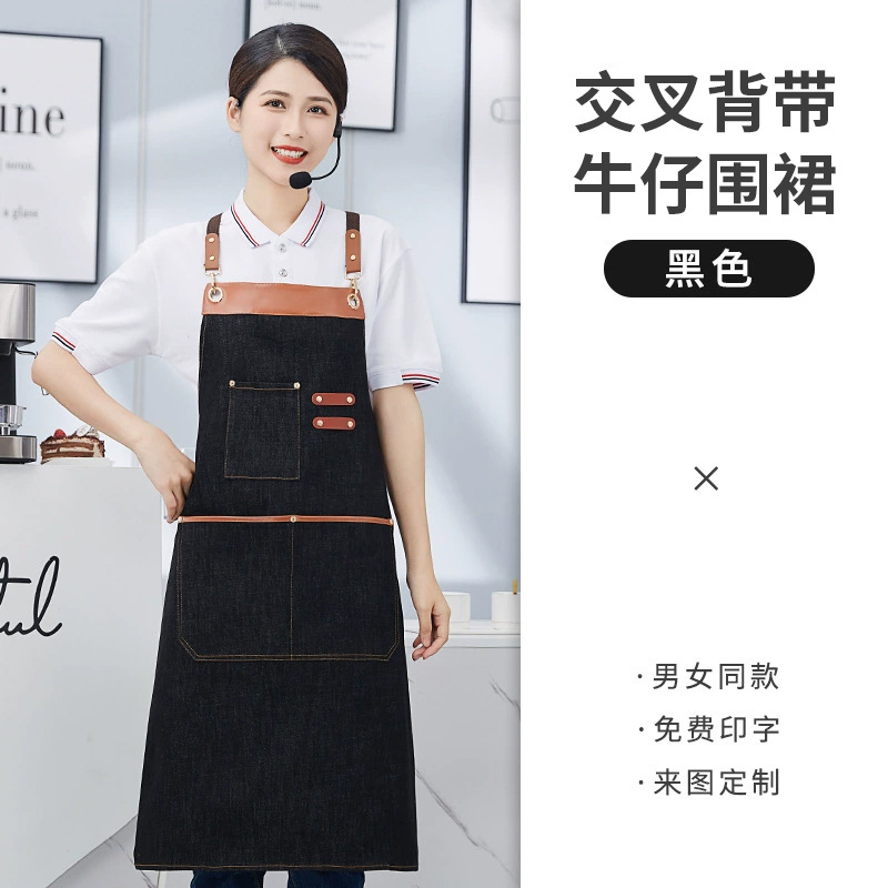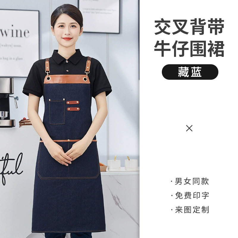 围裙定制 加厚交叉背带帆布围裙印字印LOGO餐饮火锅店广告围裙