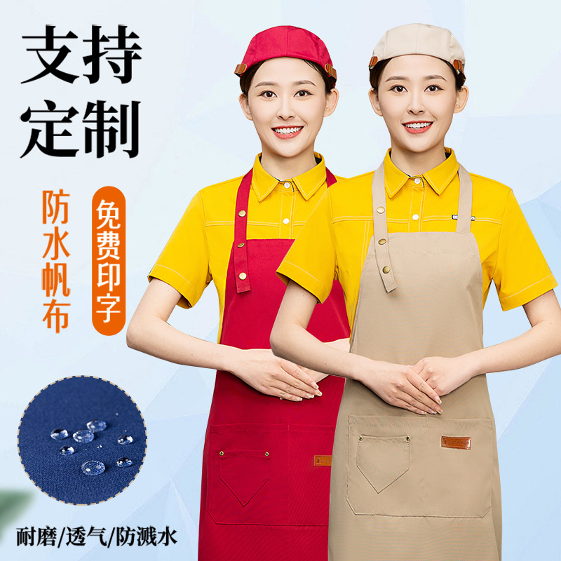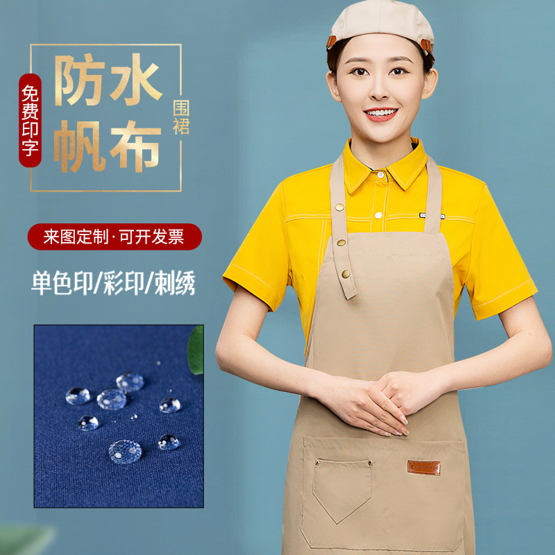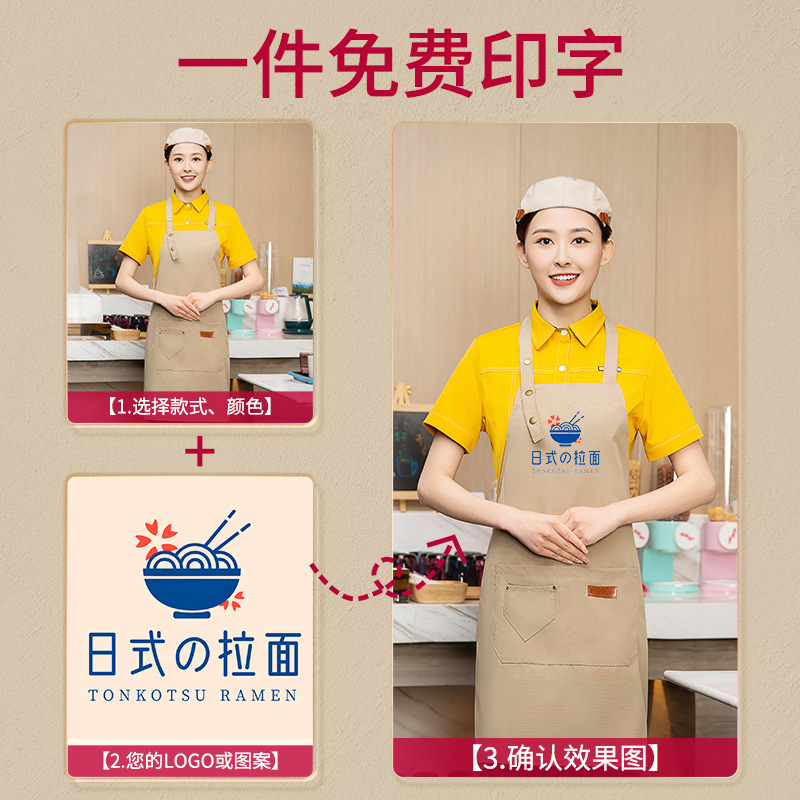网红围裙印制logo印字餐饮专用防水防油时尚工作服女家用厨房男士