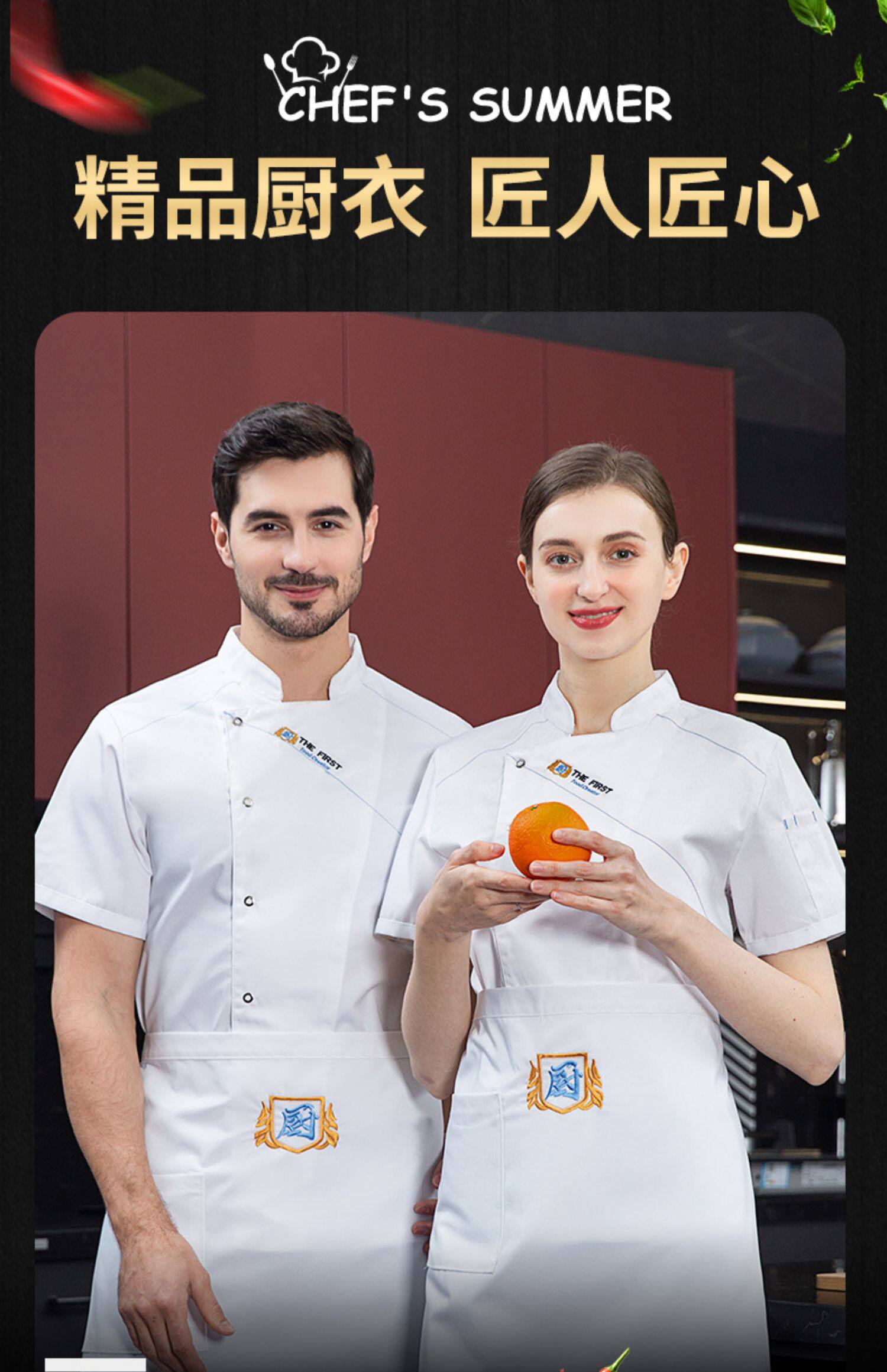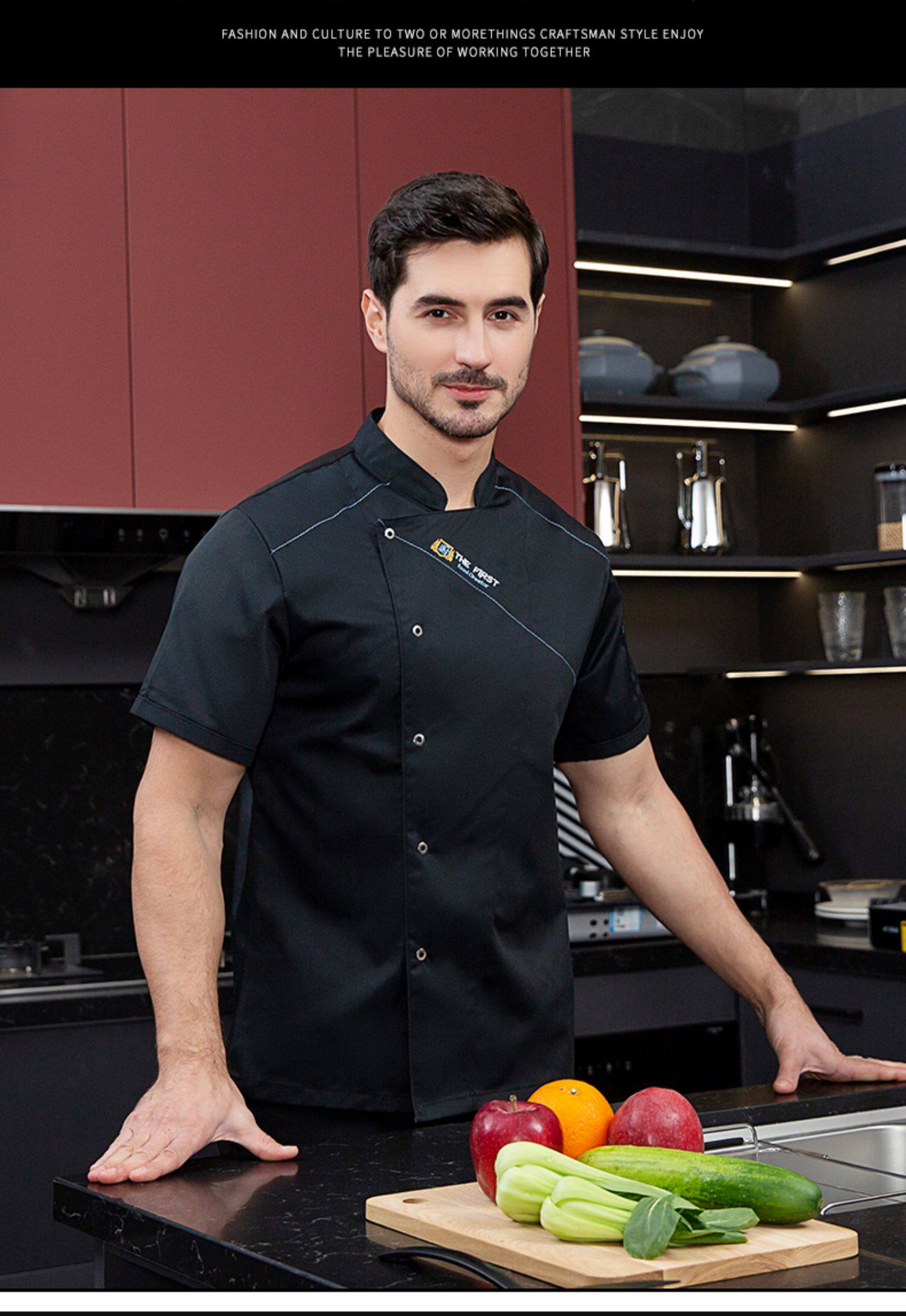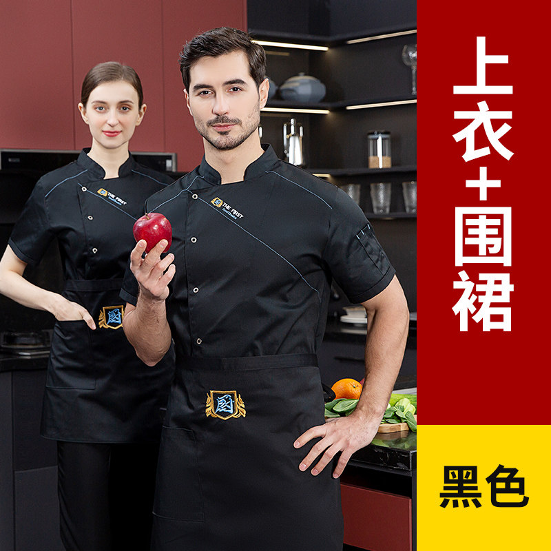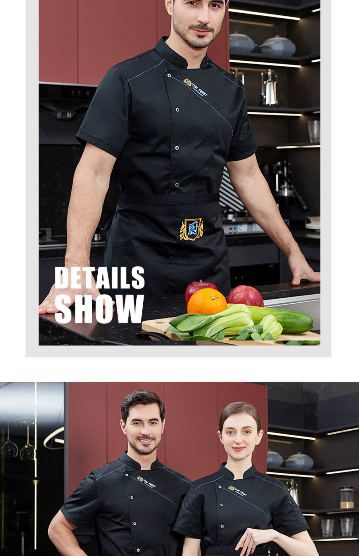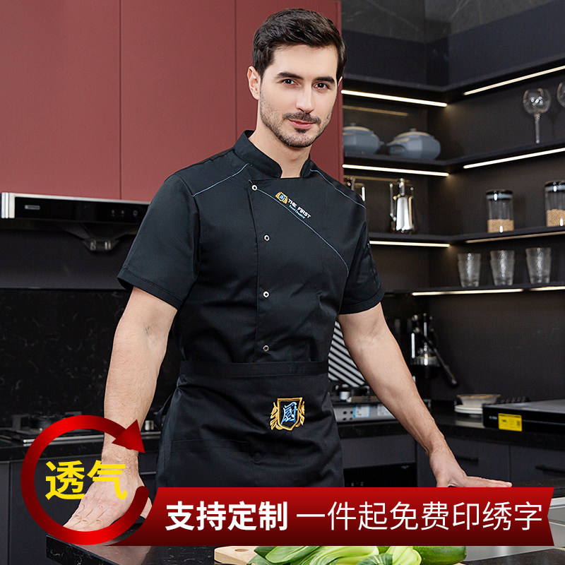 酒店厨师工作服短袖夏季透气薄款定制餐饮餐厅饭店后厨房专用服装