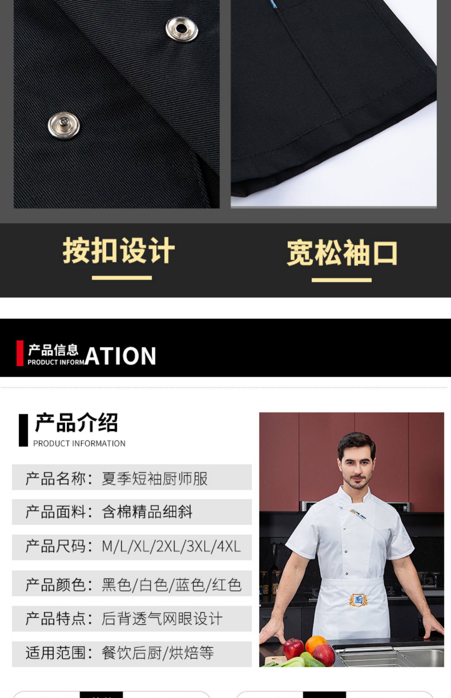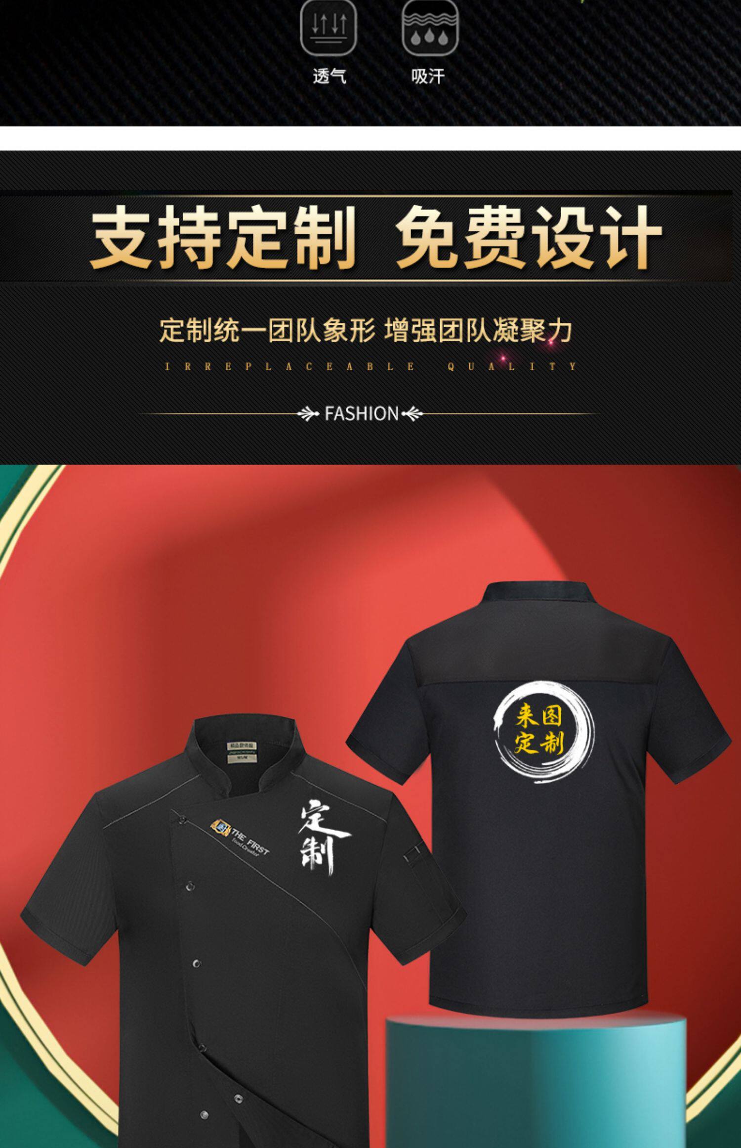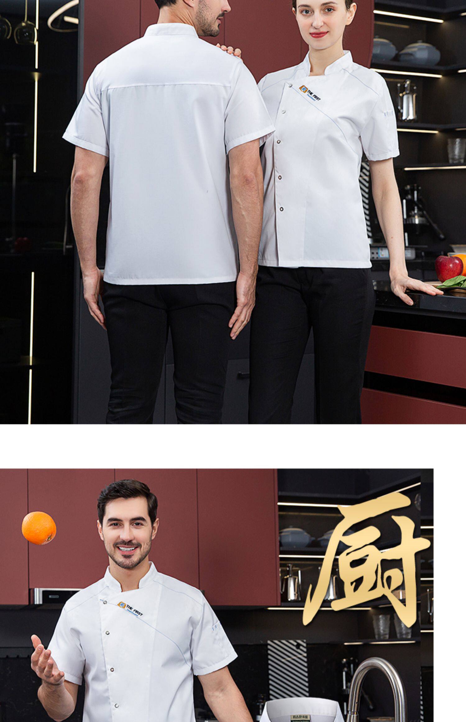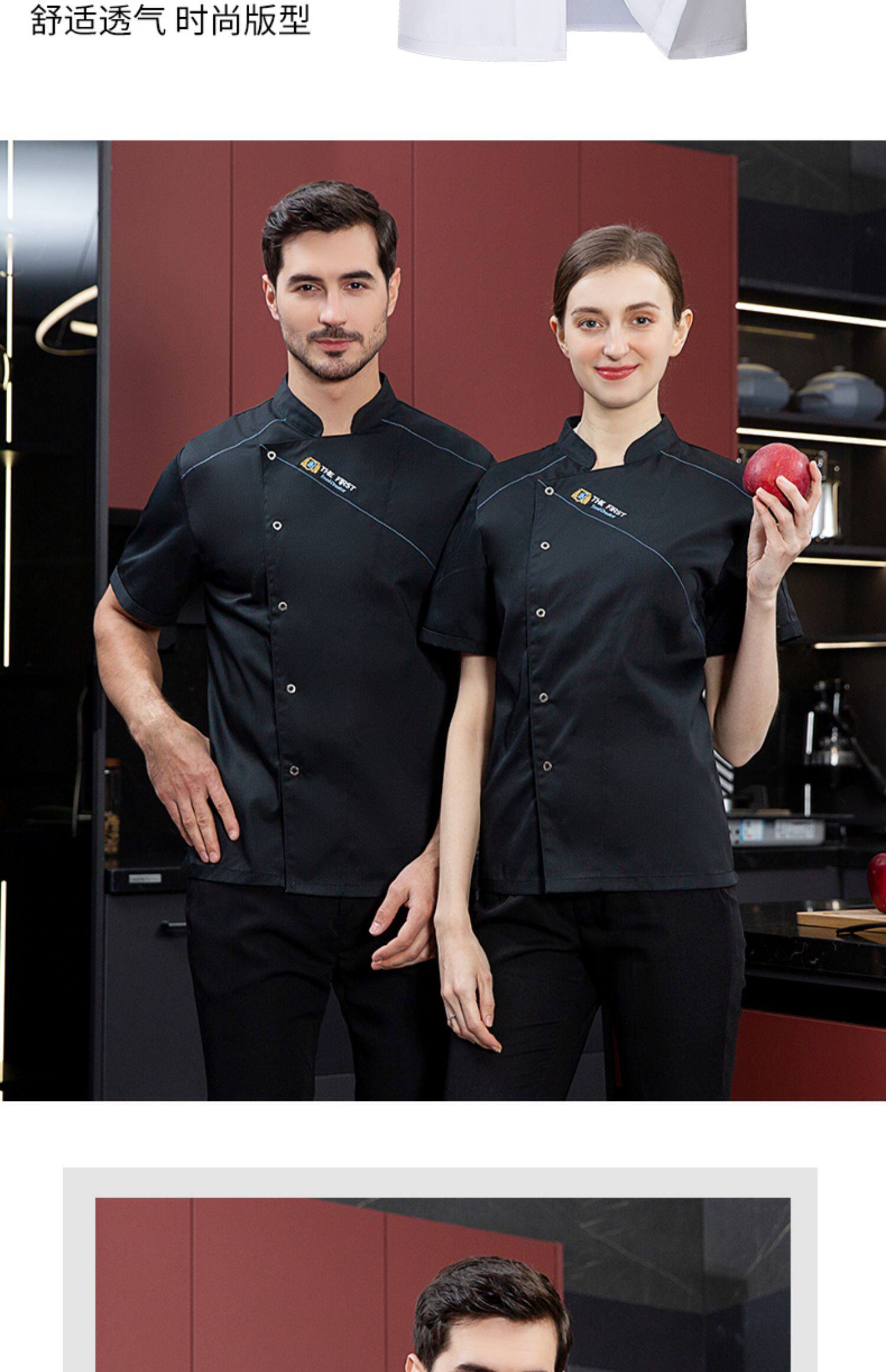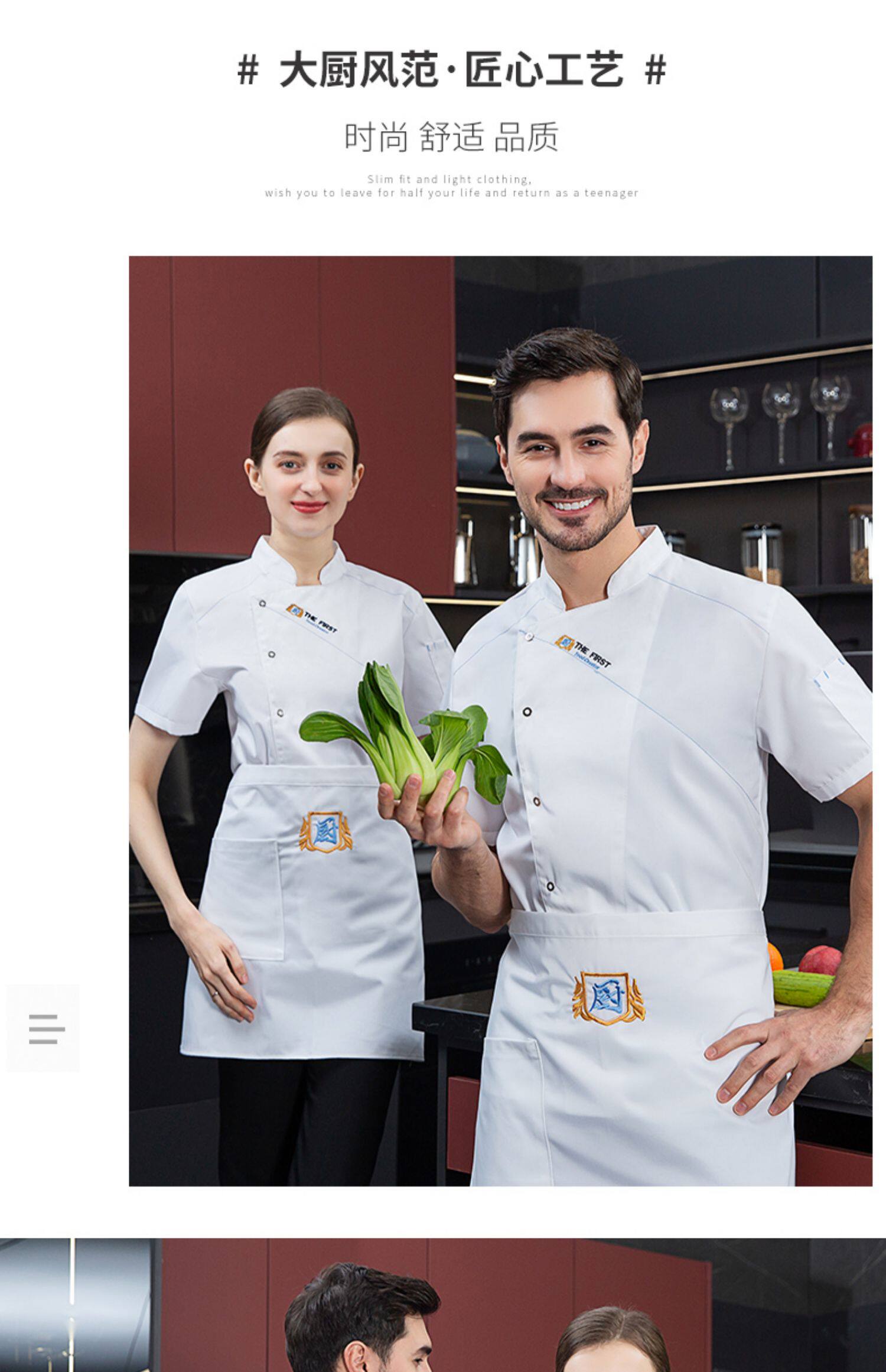 酒店厨师工作服短袖夏季透气薄款定制餐饮餐厅饭店后厨房专用服装