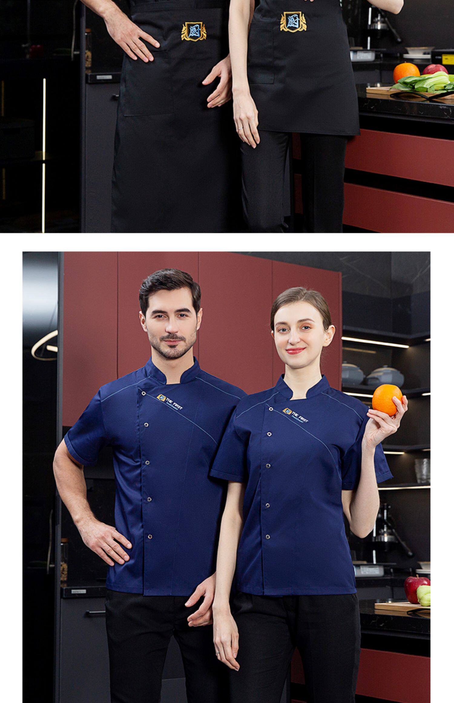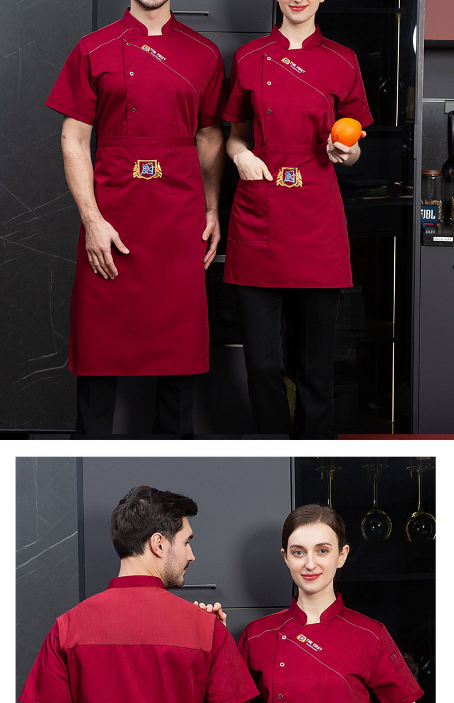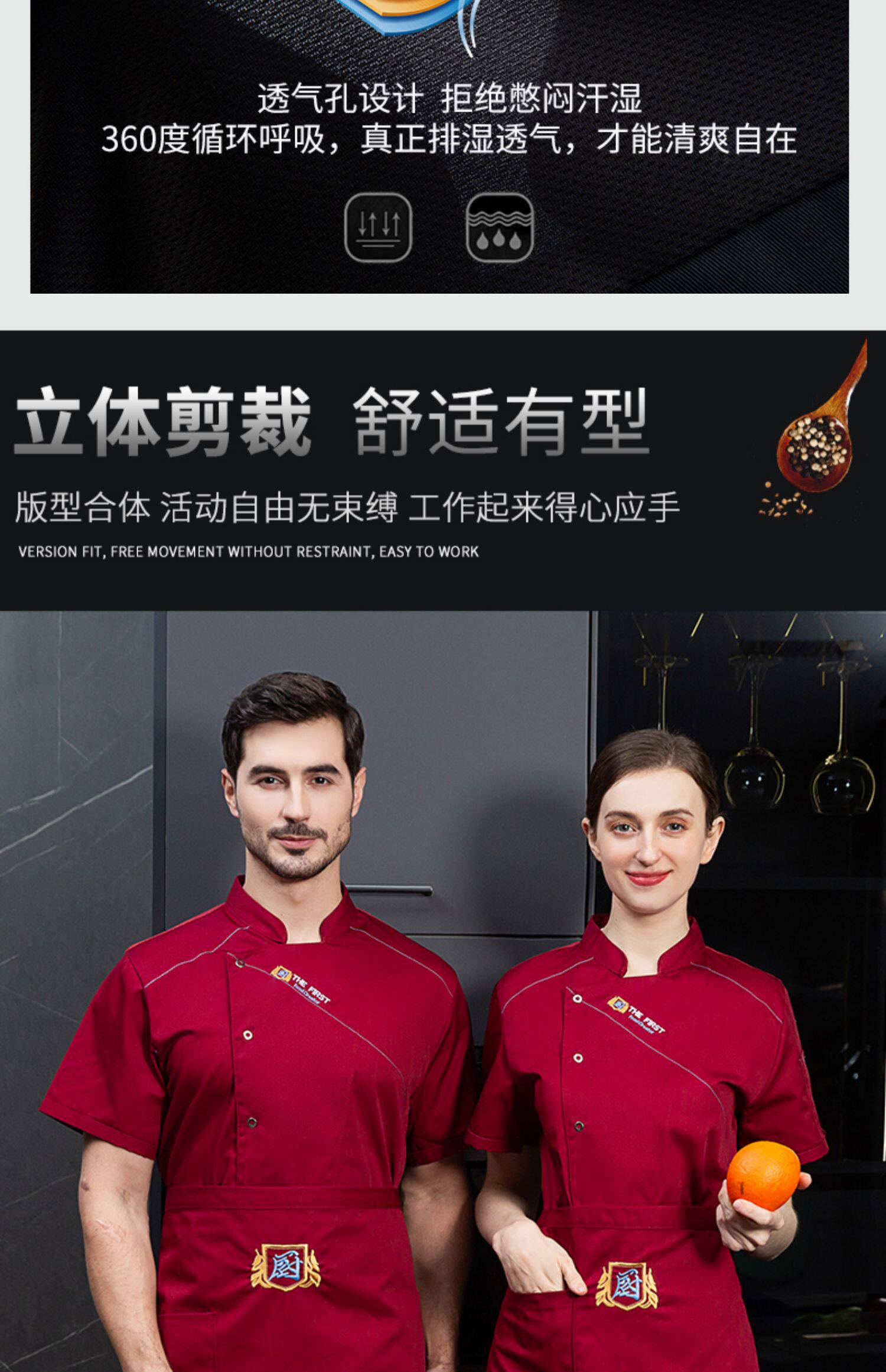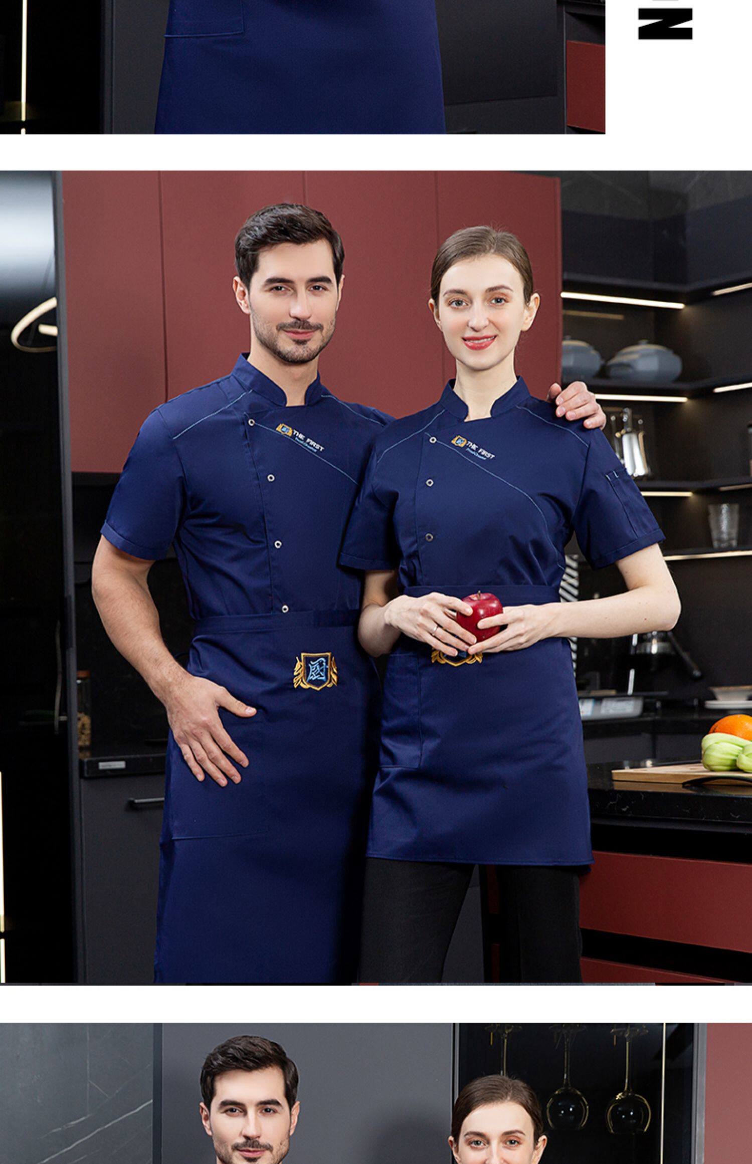 酒店厨师工作服短袖夏季透气薄款定制餐饮餐厅饭店后厨房专用服装