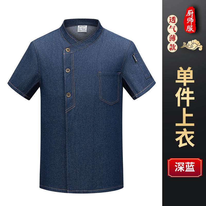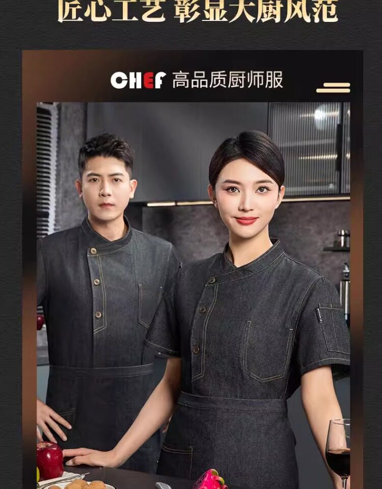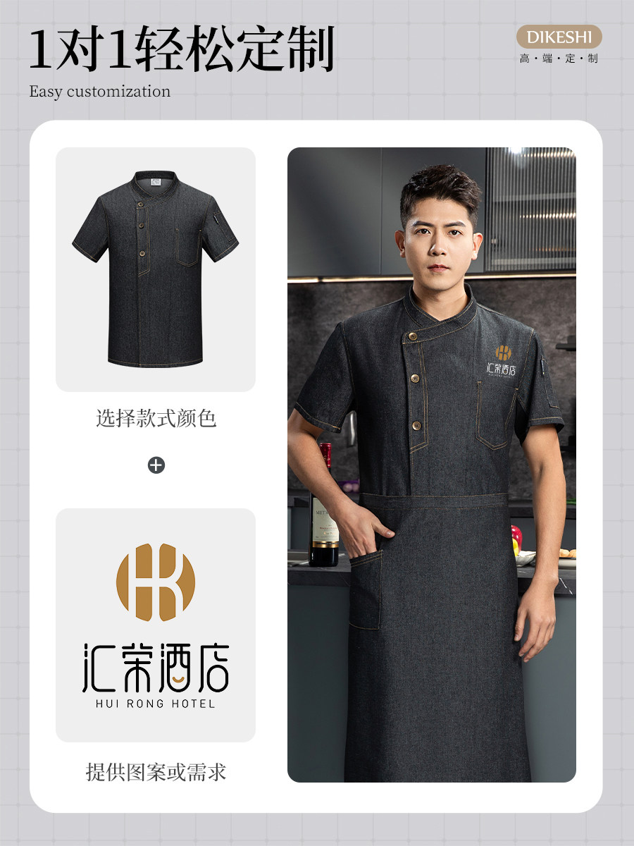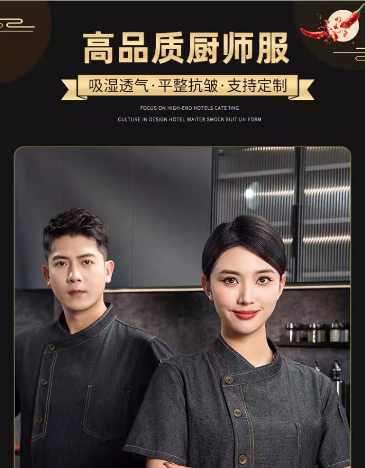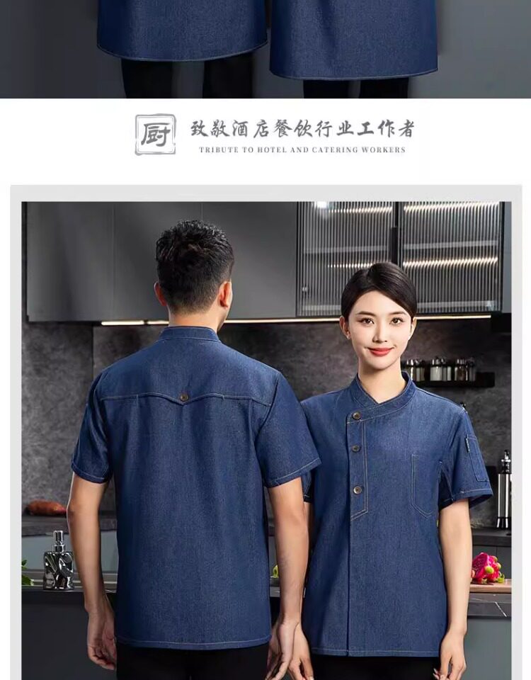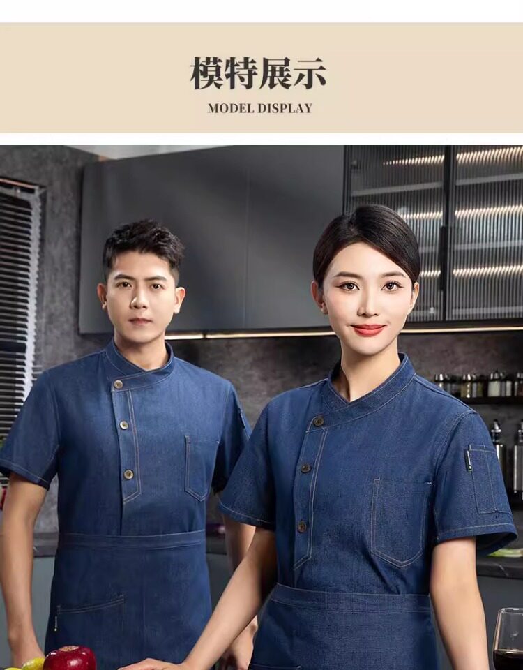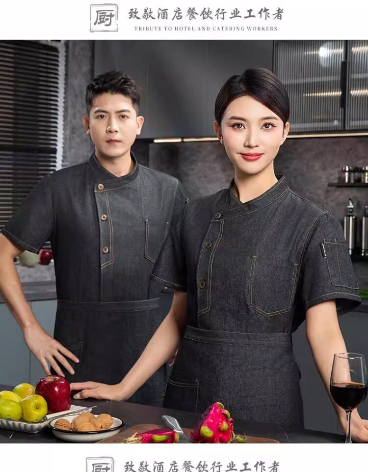 高端牛仔厨师工作服西餐厅饭店酒店后厨房餐饮专用短袖工装制服男