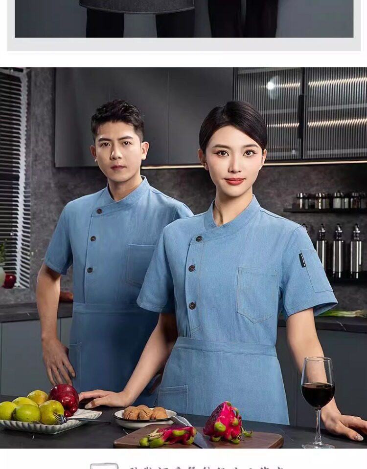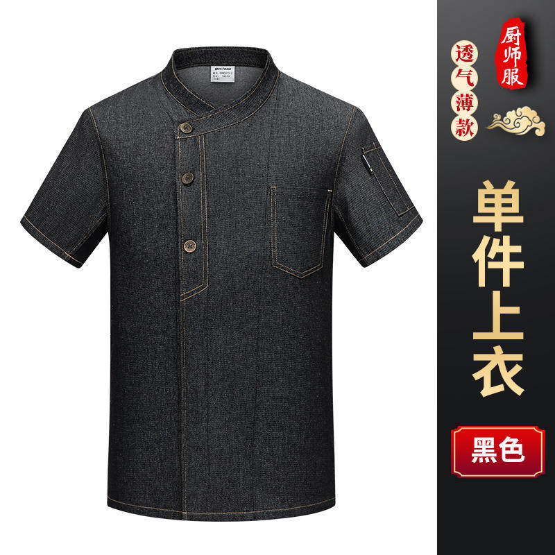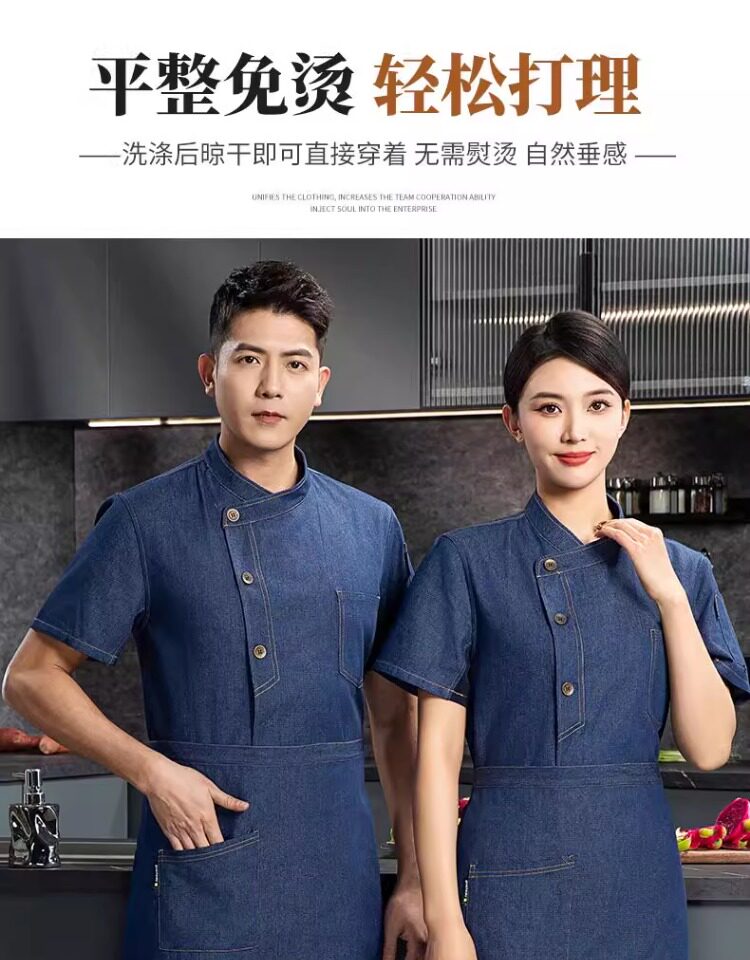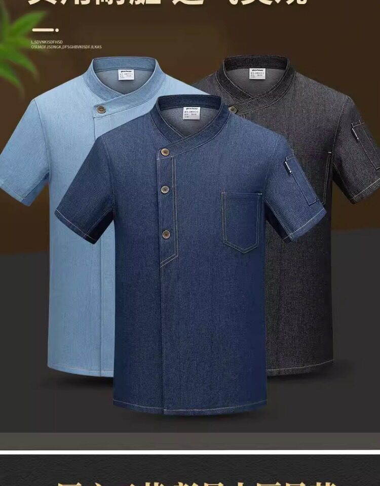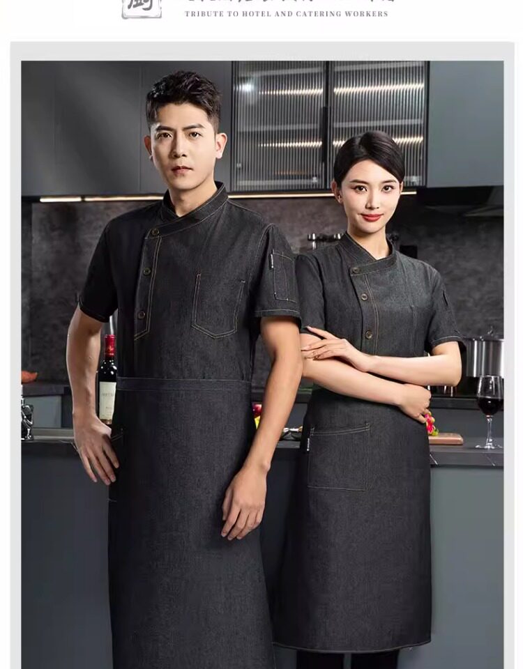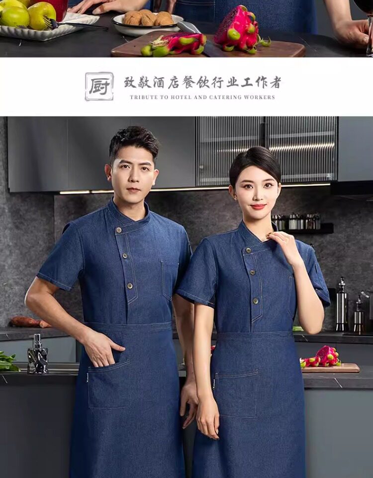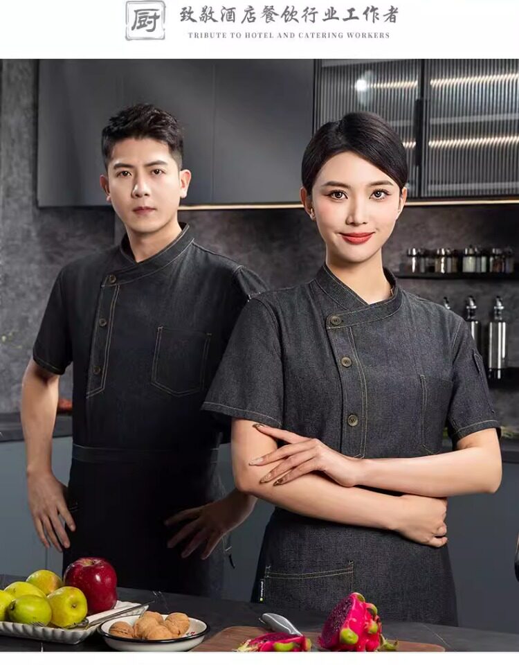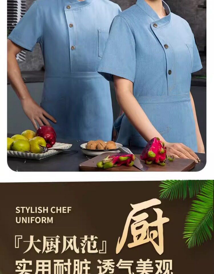 高端牛仔厨师工作服西餐厅饭店酒店后厨房餐饮专用短袖工装制服男